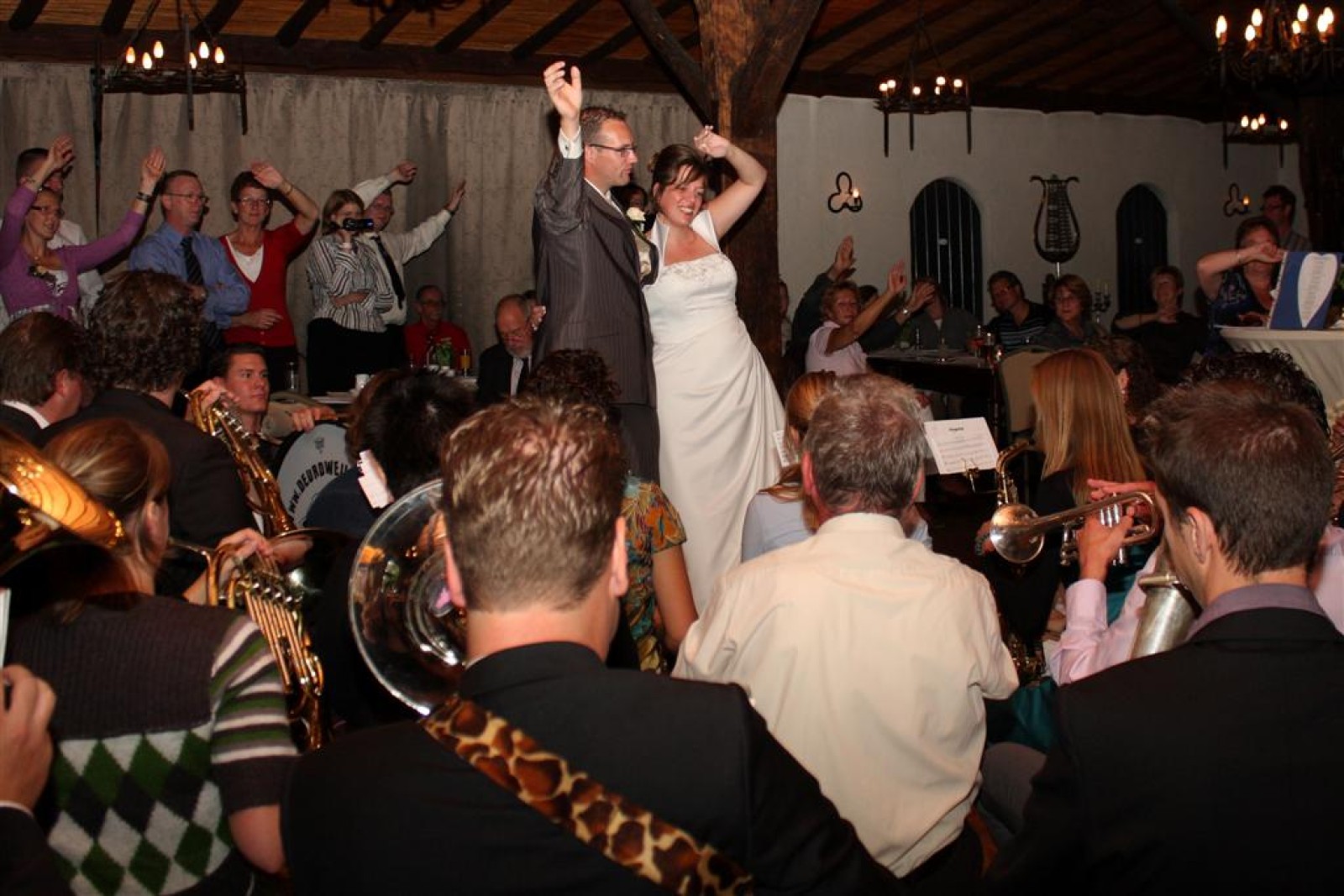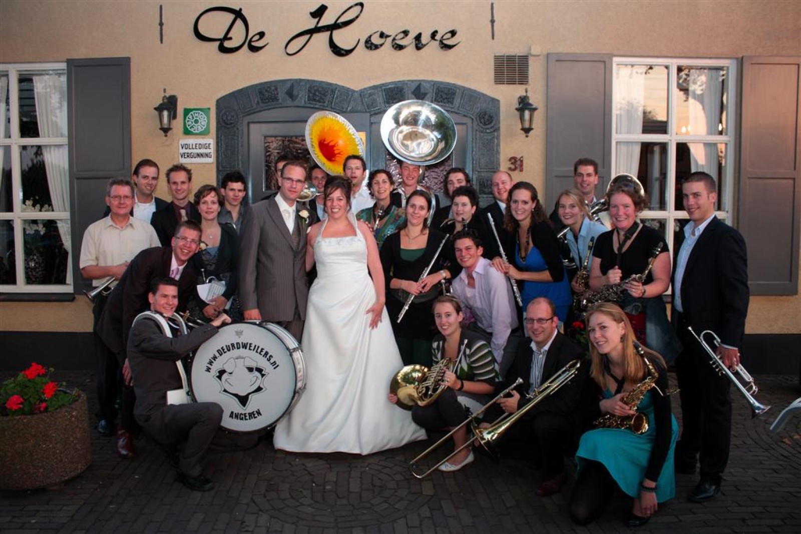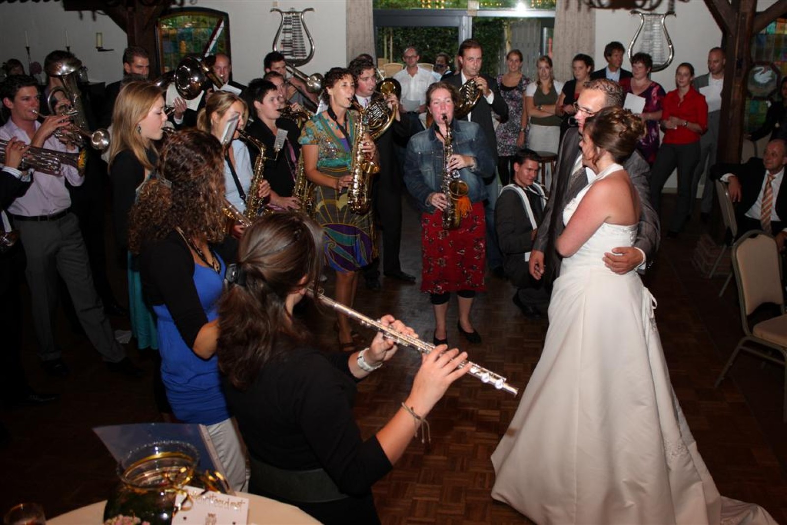 Natuurlijk hebben we voor het bruidspaar nog een setje gespeeld met daarbij een lied op de melodie ‘Daarbij de waterkant’. Evelyn en Vincent: Gefeliciteerd!