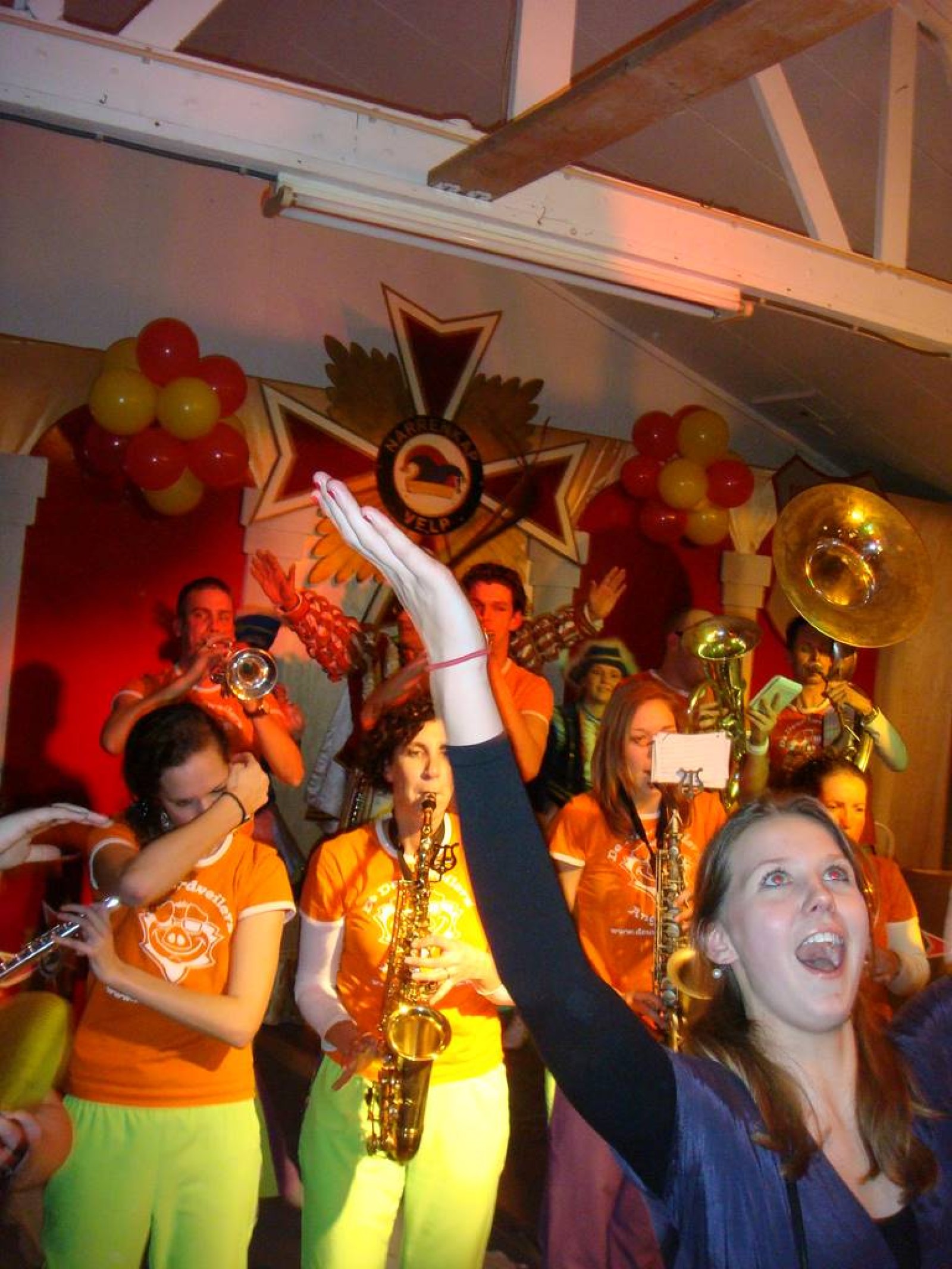 Het optreden vond twee keer plaats in hetzelfde gebouw. Een om 16.30 en een om 22.30. Wat doe je dan in de tussentijd? Gezellig met (bijna) z’n allen gaan eten in Arnhem en daarna lekker loungen en slechte grappen vertellen in de Habana op de korenmarkt. De vrolijke stemming werd gewoon lekker voortgezet op het podium in Velp.