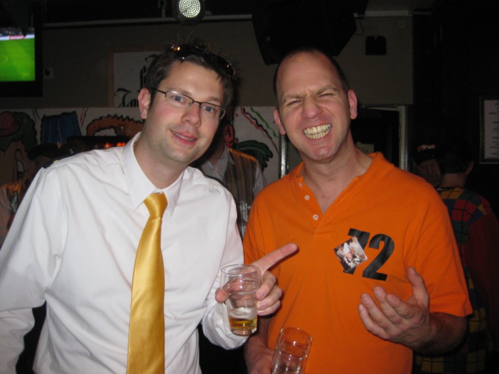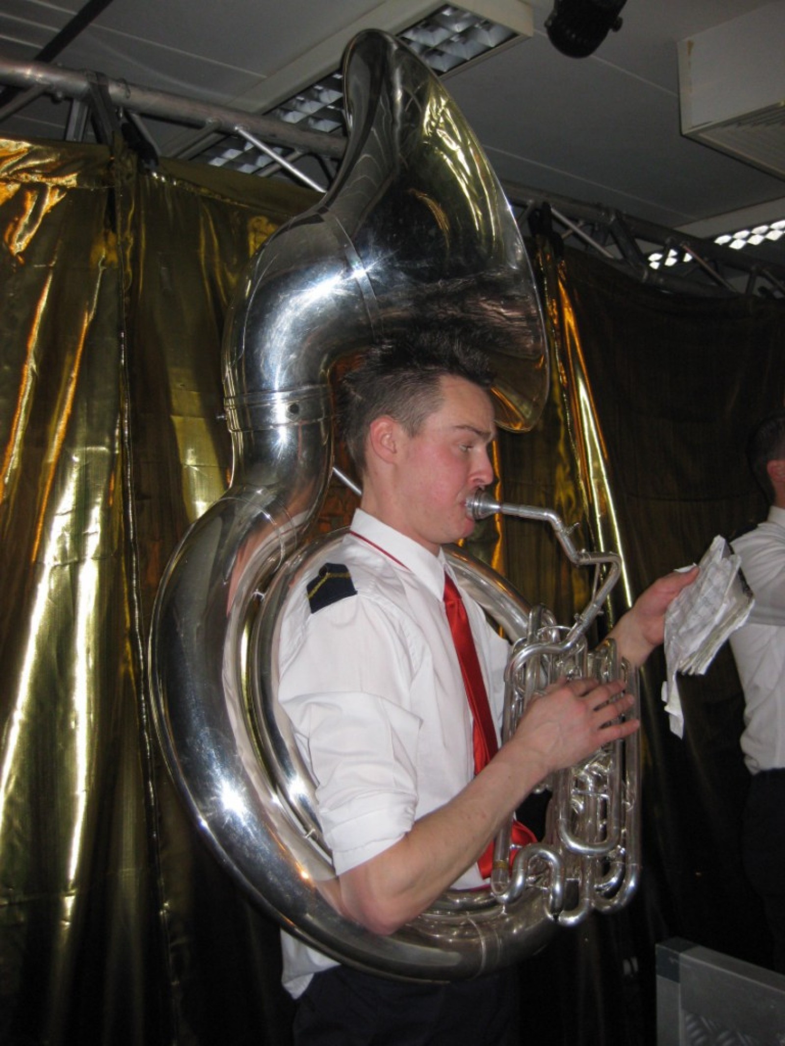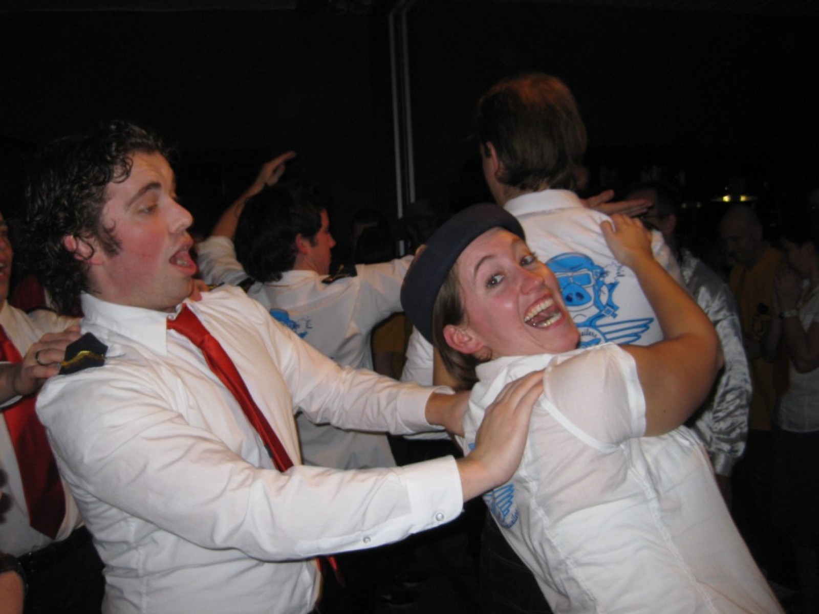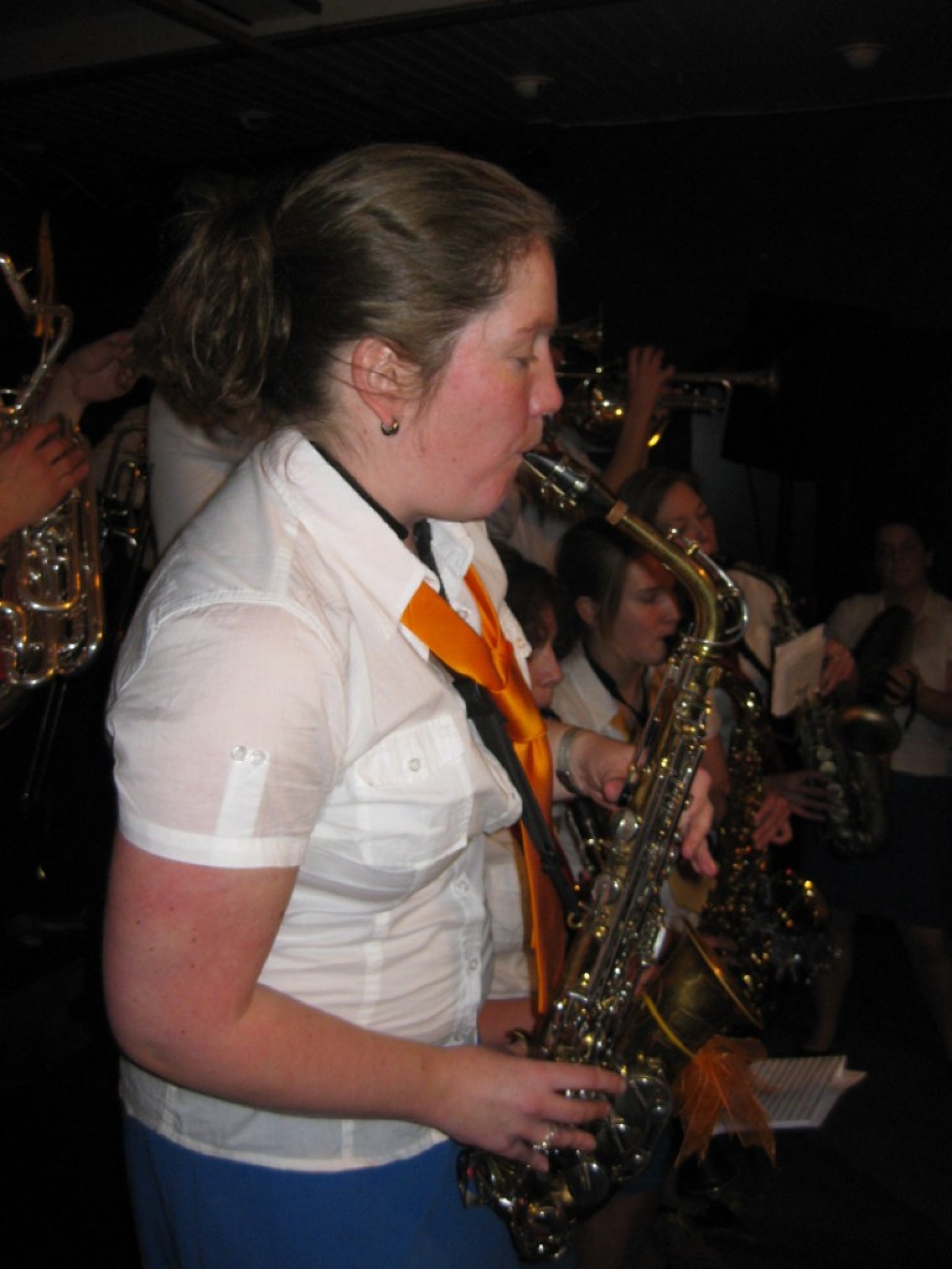 Op de jaarvergadering kwam ter sprake dat we eigenlijk de vliegshow weer eens moesten doen. Zo gezegd, zo gedaan. De kleding hebben we anderhalf jaar niet meer aangehad, maar er was er maar eentje bij die niet meer in zijn broek paste. Mooie vraag voor het fanclubblad wie! We moesten ons optreden heel even rekken omdat Evelyn en Lisette nog onderweg waren vanwege werk en een concert met Volharding, maar toen vlogen we over het podium. Erg leuk om weer eens te spelen.
