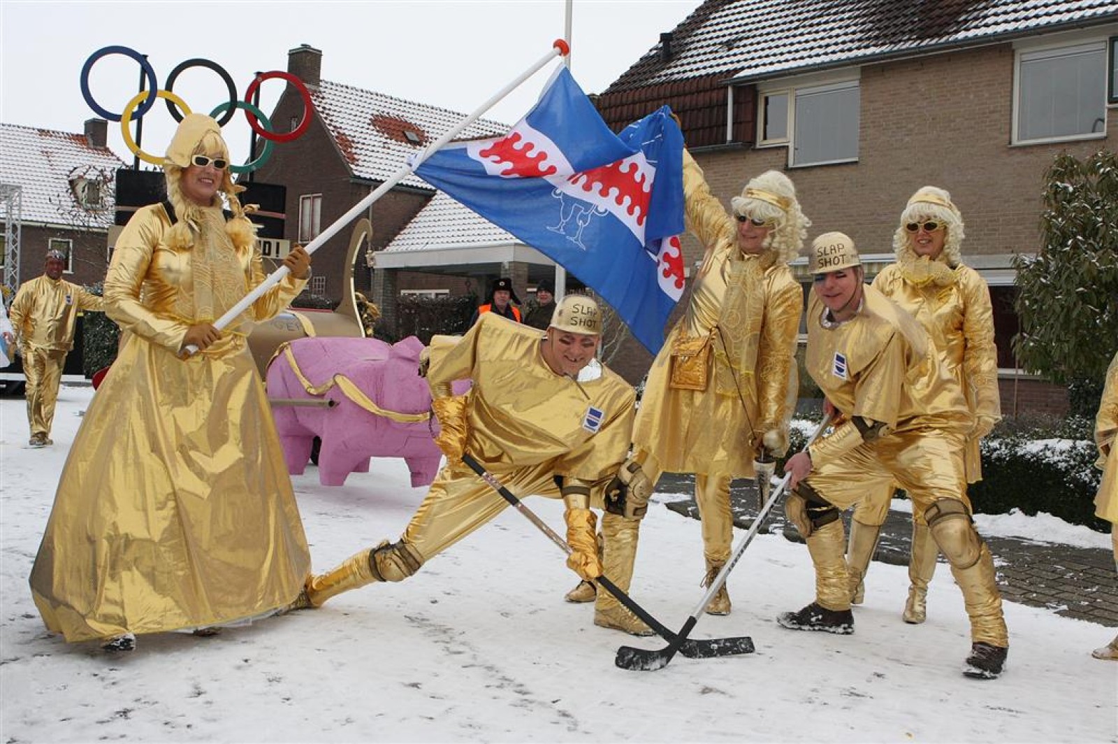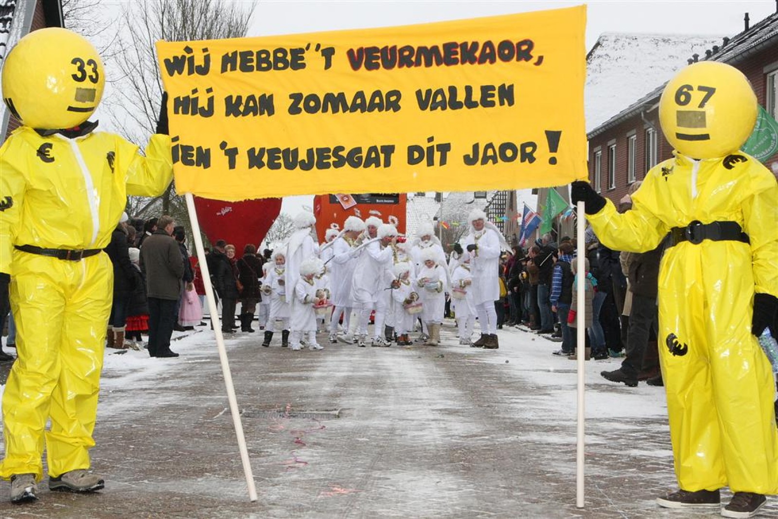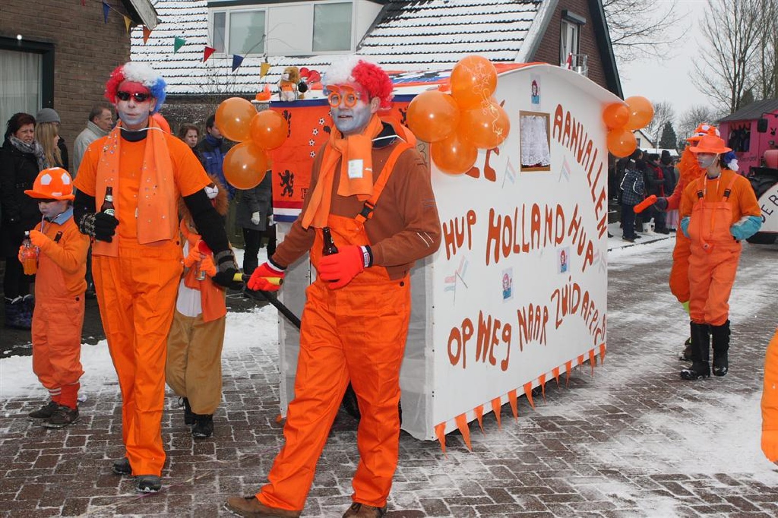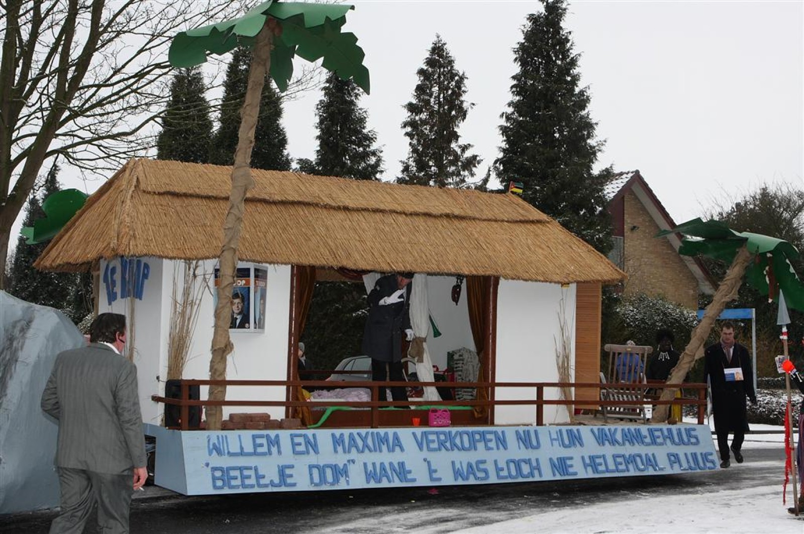 Met een enorme draak en tijger vierden de Feestneuzen het begin van het Chinees Nieuwjaar. De Struukduukers refereerden nog even naar het vakantiehuisje van WimLex en Maxima voorafgegaan door een enorme neushoorn.