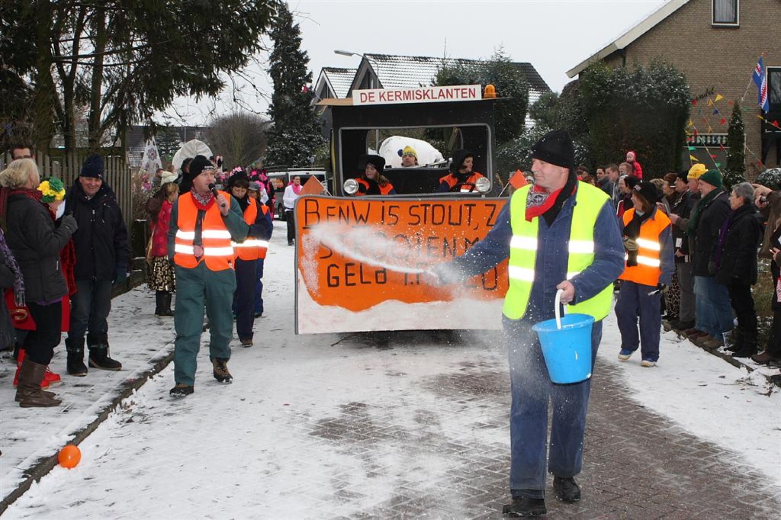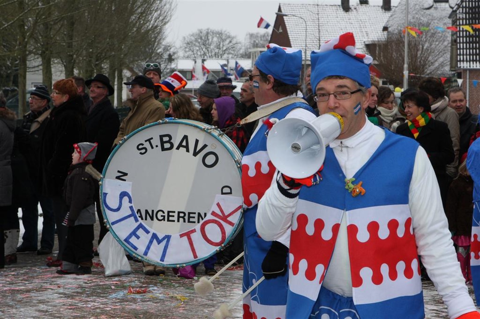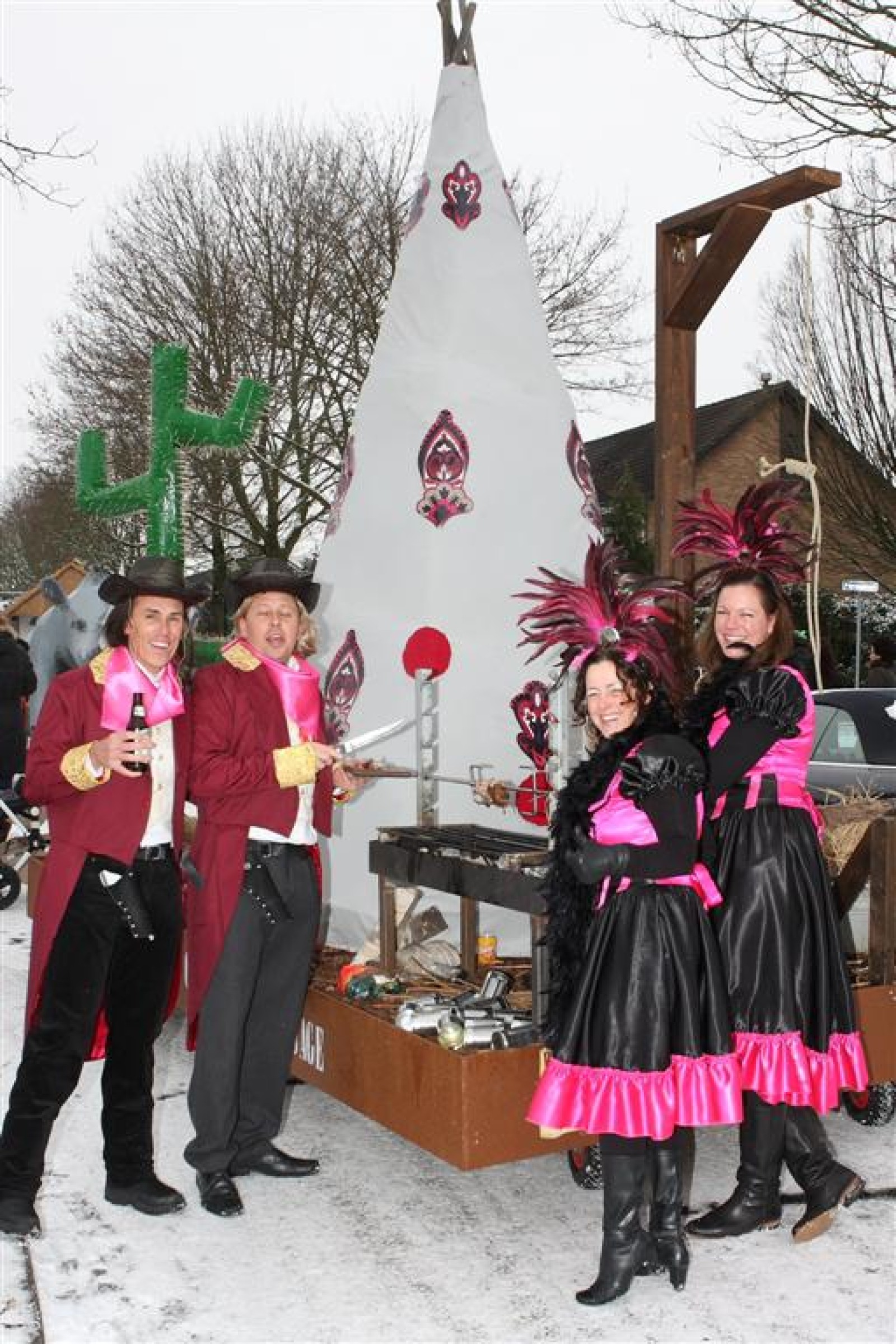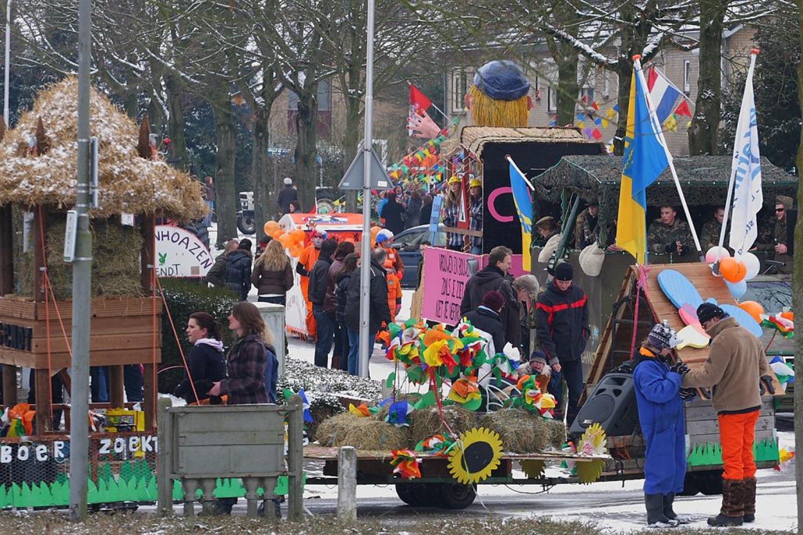 Met een enorme draak en tijger vierden de Feestneuzen het begin van het Chinees Nieuwjaar. De Struukduukers refereerden nog even naar het vakantiehuisje van WimLex en Maxima voorafgegaan door een enorme neushoorn.