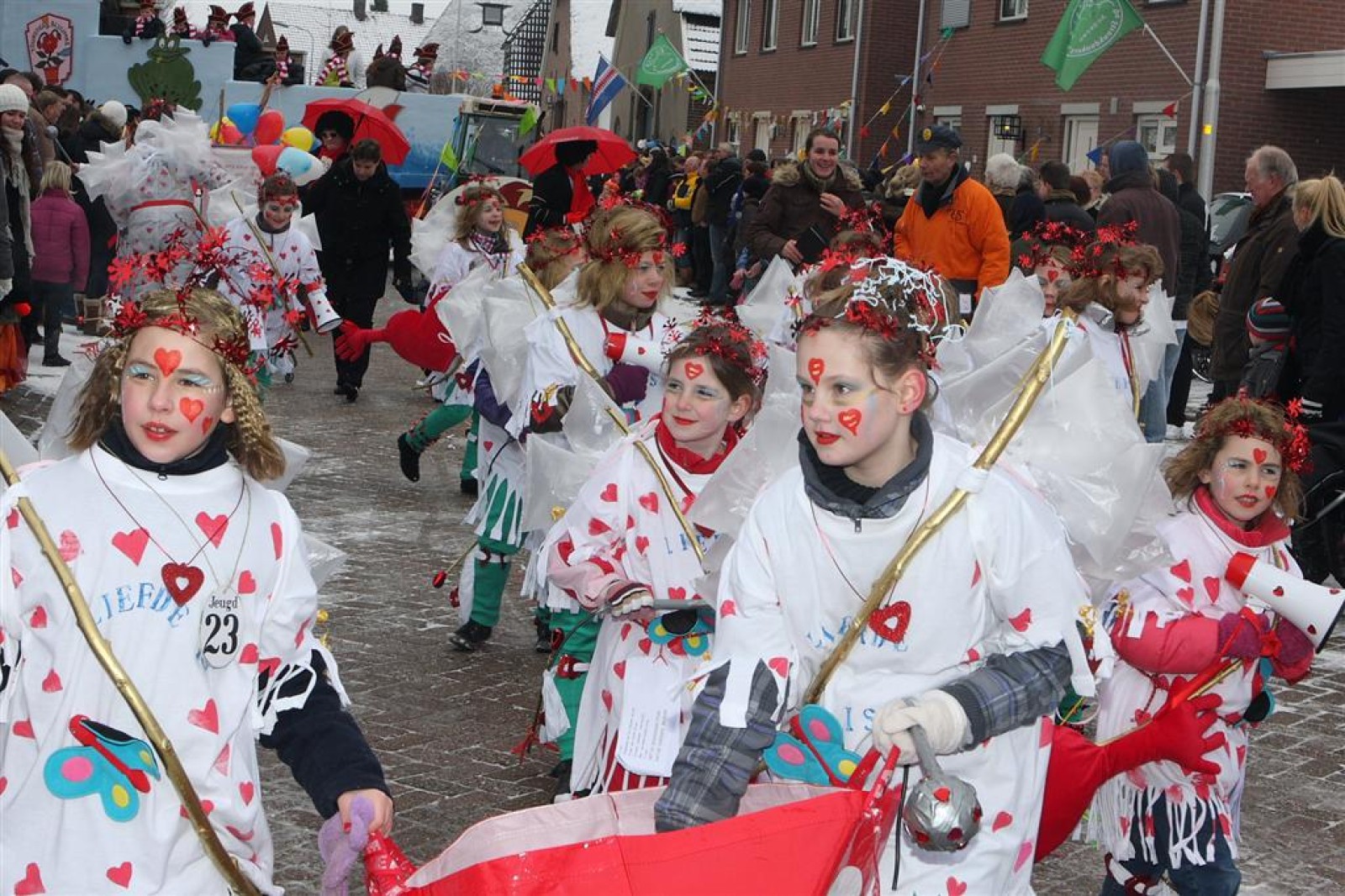 Ook bij de loopgroepen waren er weer vele mooie en leuke thema’s te zien. De Nachtbrakers (zeker geen onbekenden van de DD :-)) liepen als nachtbus door Angeren. Valentijn kon natuurlijk ook niet ontbreken op deze 14e februari. En ook de ‘walking fridge’ was erg goed. De bijbedandjes wonnen uiteindelijk de 1e prijs met hun loopgroep.