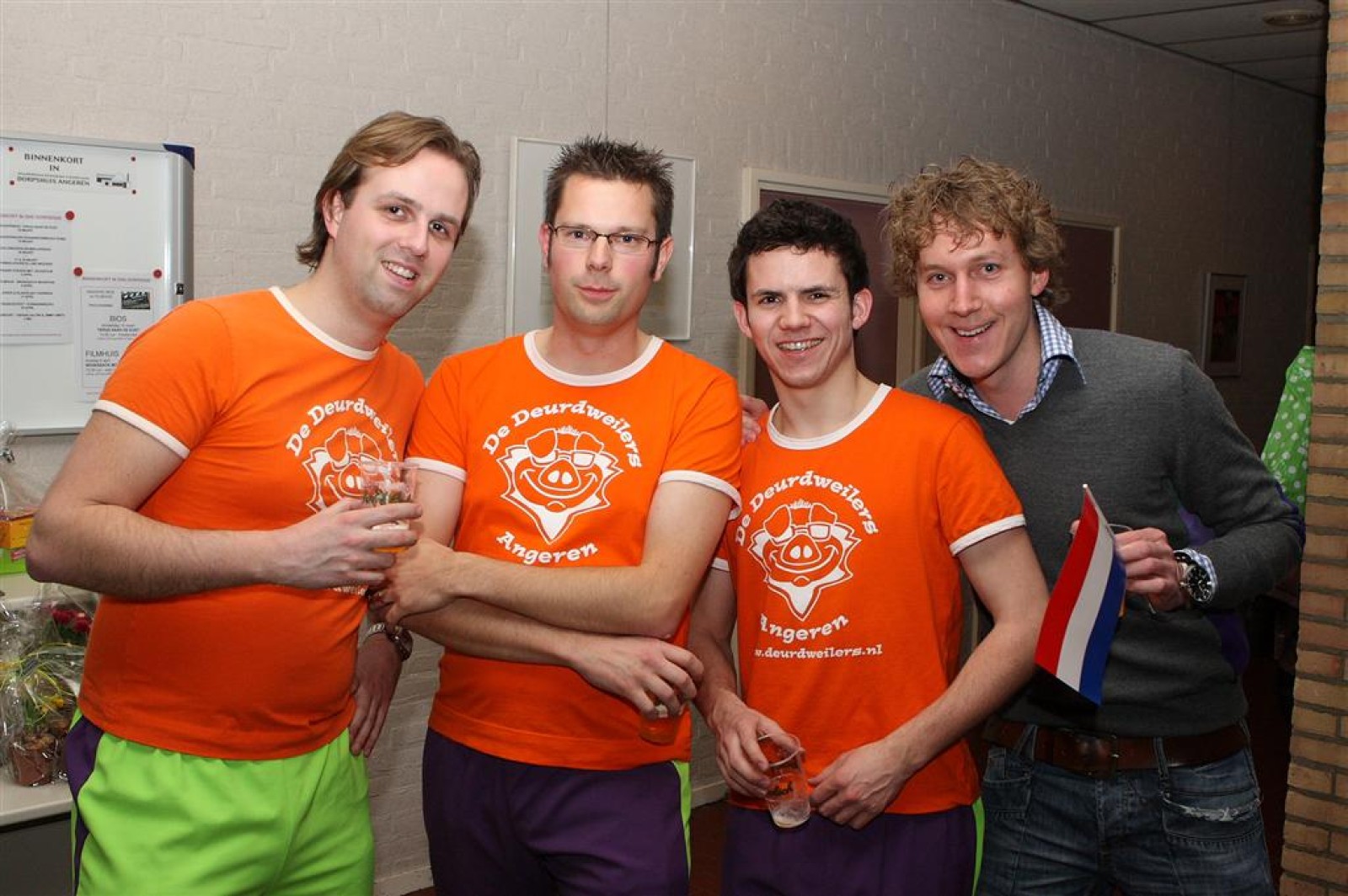 De stemming zat er vanaf het begin af aan al goed in. De Deurdweilers openden met de tune van het bekende tv-programma voorzien van videobeelden en uitspraken van vele Angerenaren waarna het spel kon starten. Presentator Johan Wagener wist de teamcaptains Geert Bouwman en André Rasing nog net in het gareel te houden en ook het aanwezige publiek werd steeds fanatieker. Naast geschiedenisvragen als "noem minstens 8 Angerse kruidenierszaken uit de jaren 60" waren er ook vragen als "Hoeveel oud papier haalt de schutterij jaarlijks op in Angeren?" en moesten er woorden uit het Angers dialect gespeld worden.