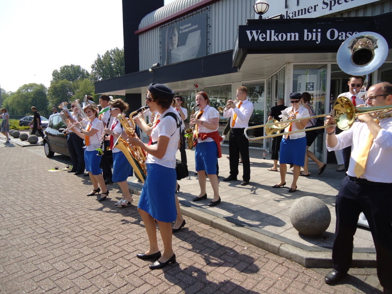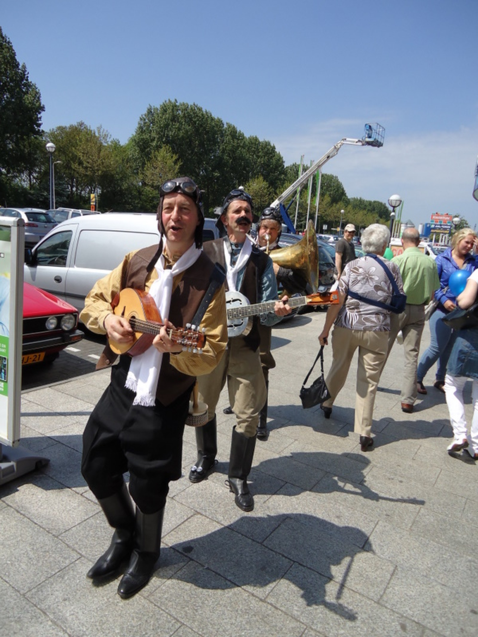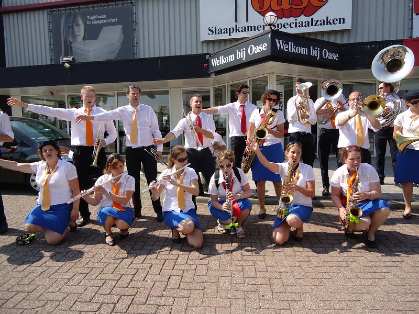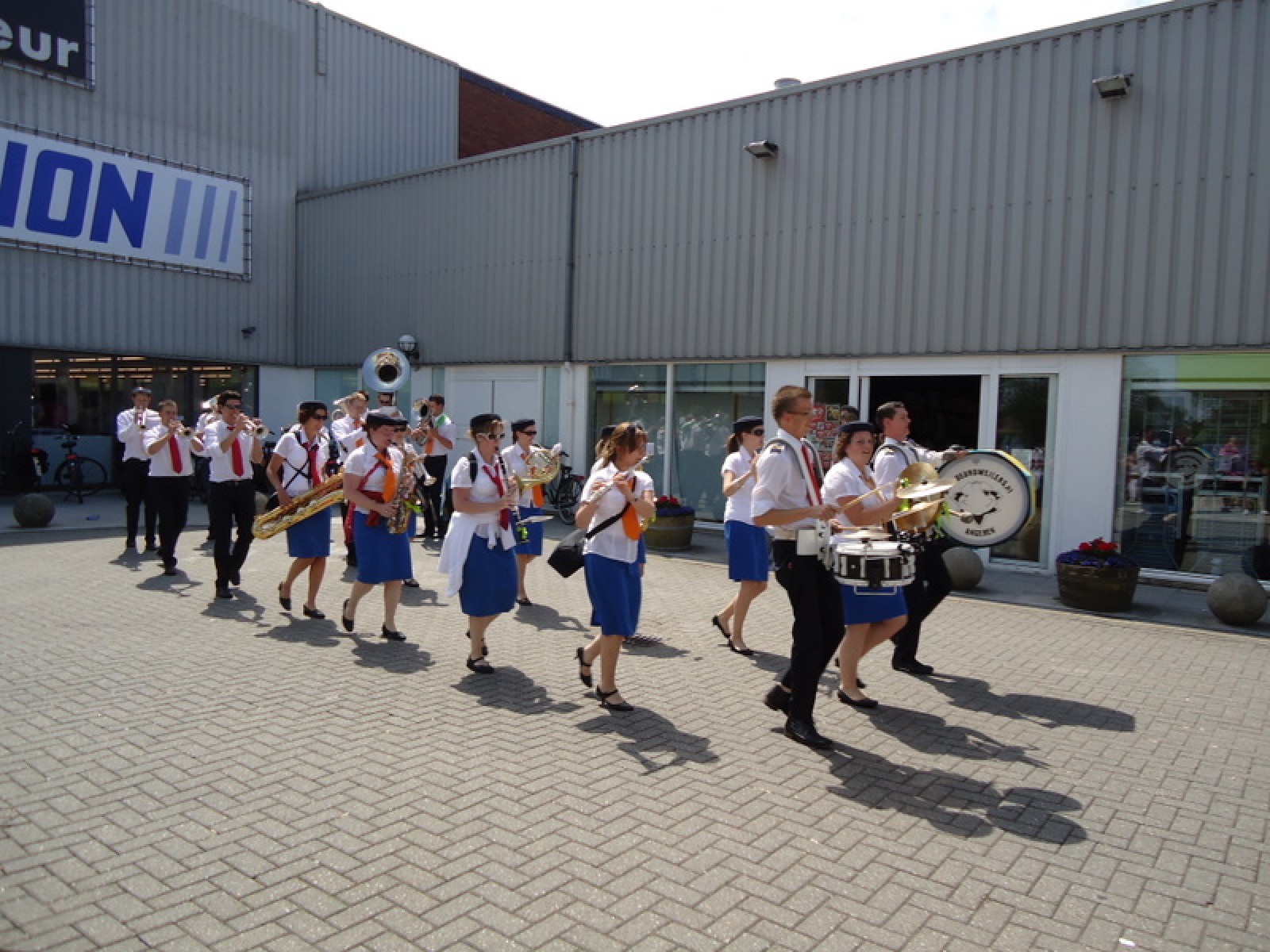 Op iedere hoek van de boulevard – waar we even geen inparkerende auto’s in de weg stonden – lekker een paar nummertjes gespeeld. Uiteraard de vliegshow, maar ook nummers uit onze nieuwe set. De catering was ook prima verzorgd en dat was maar goed ook, want na het spelen, springen en dansen in de brandende zon was een lekker pakje Wicky wel welkom.