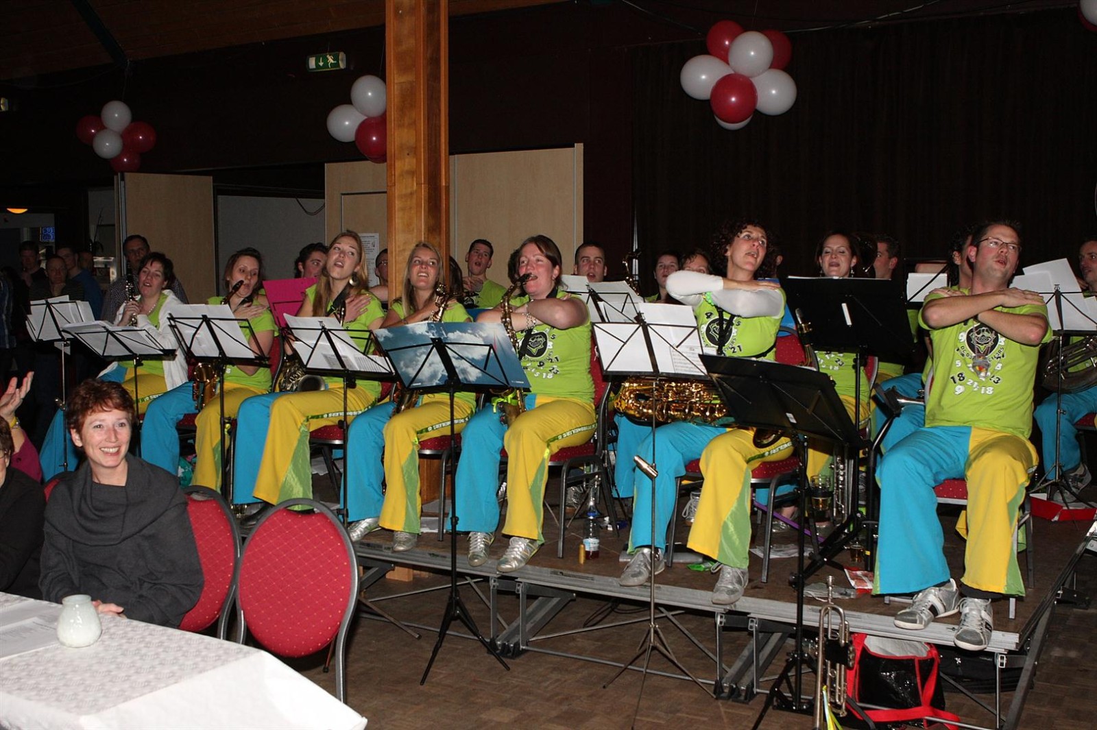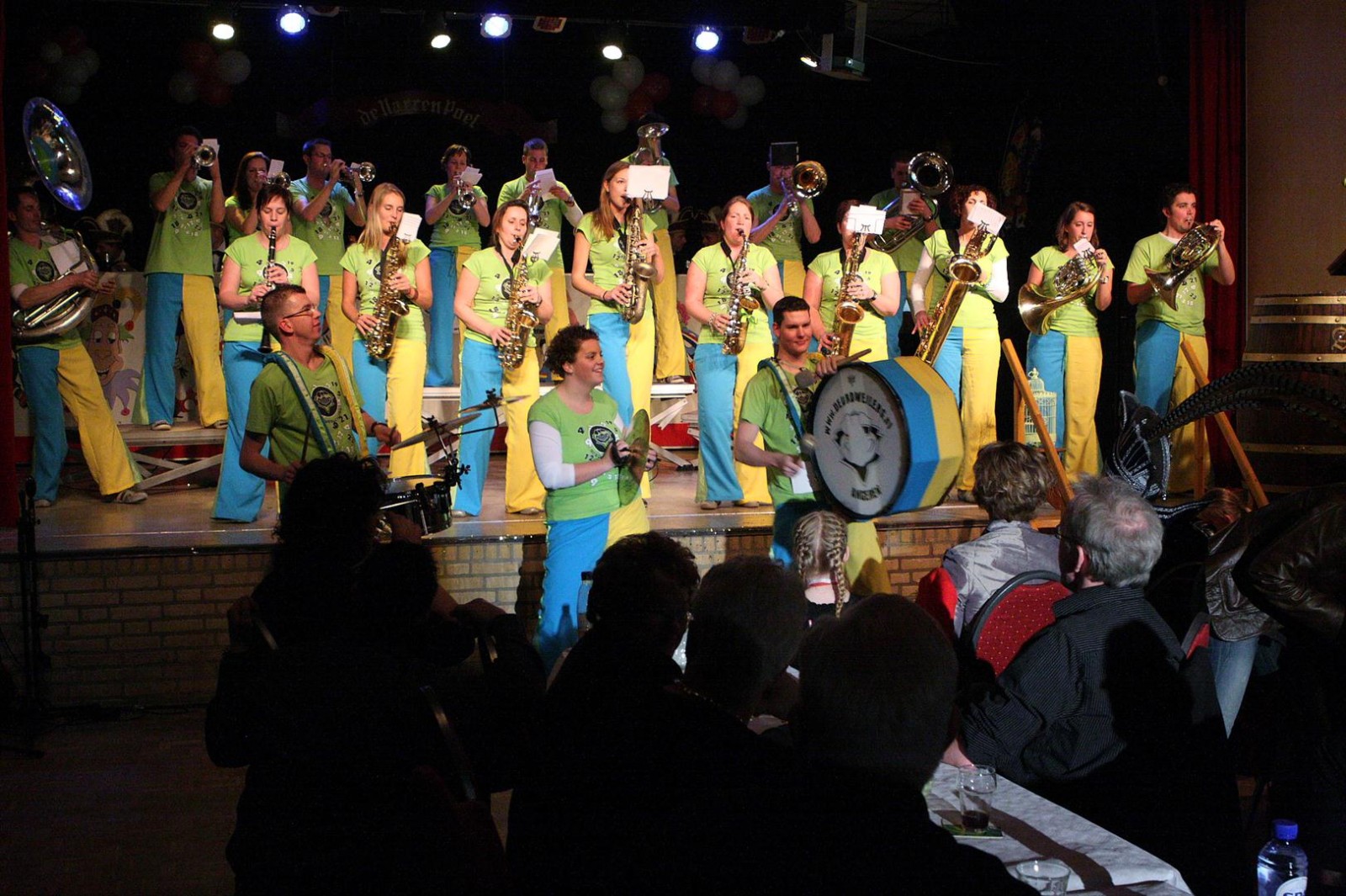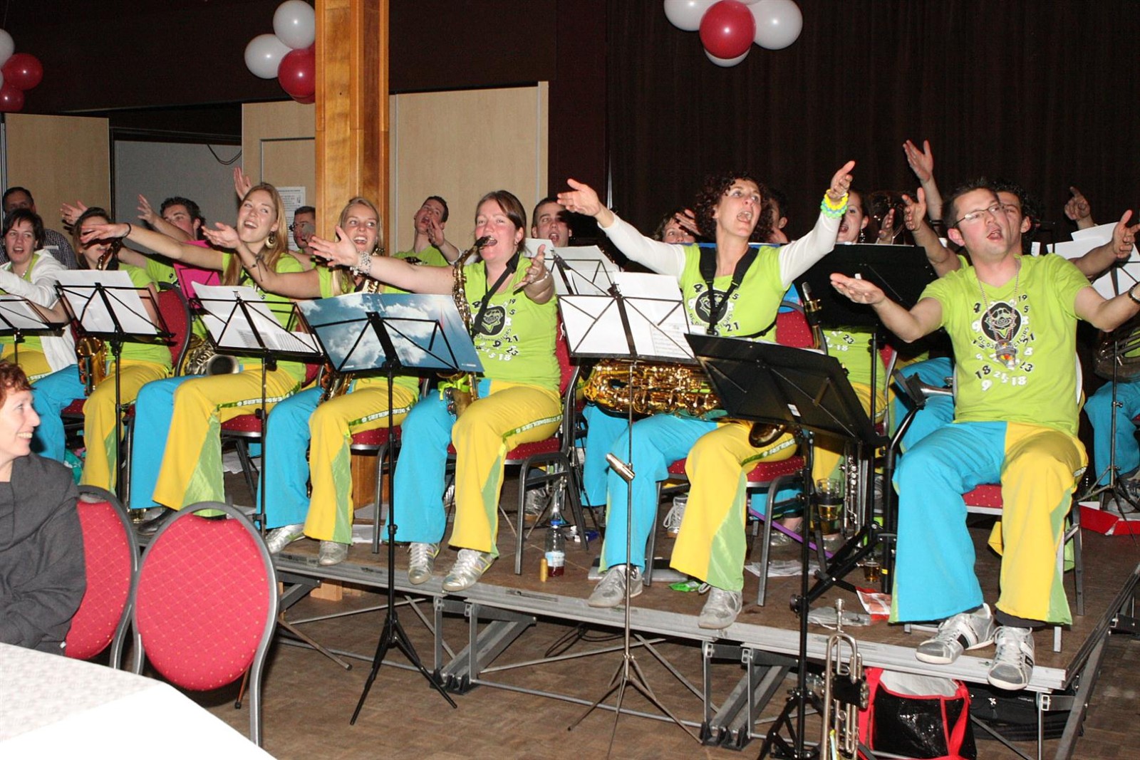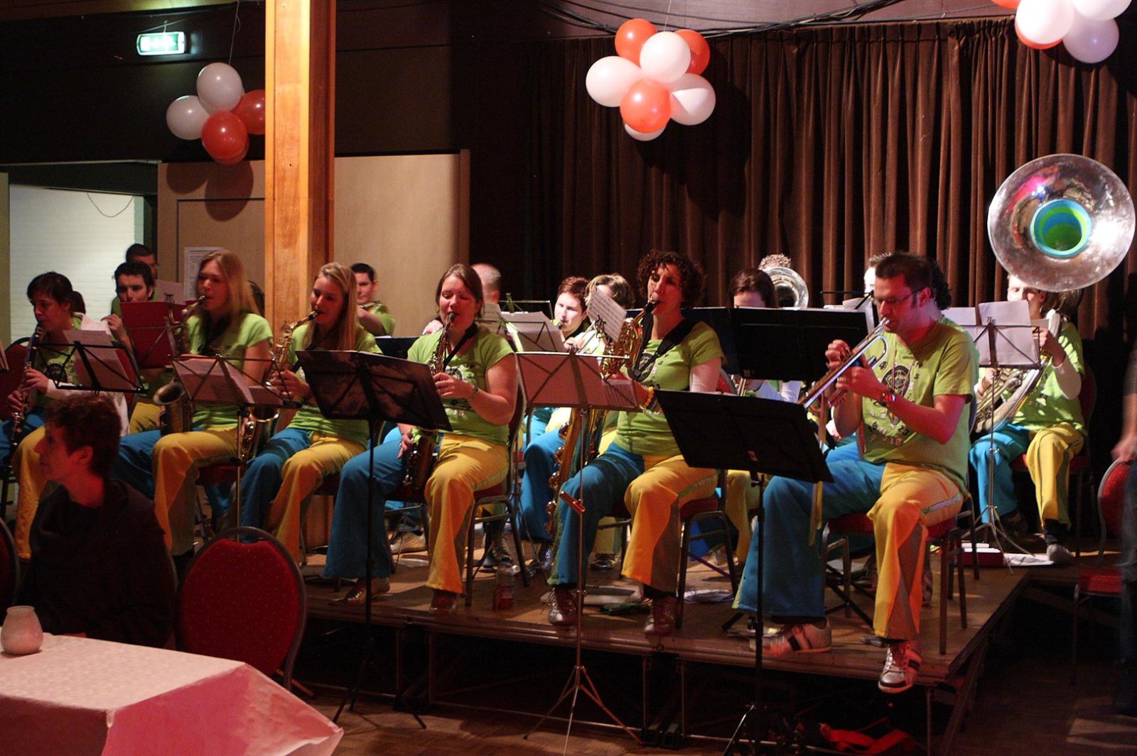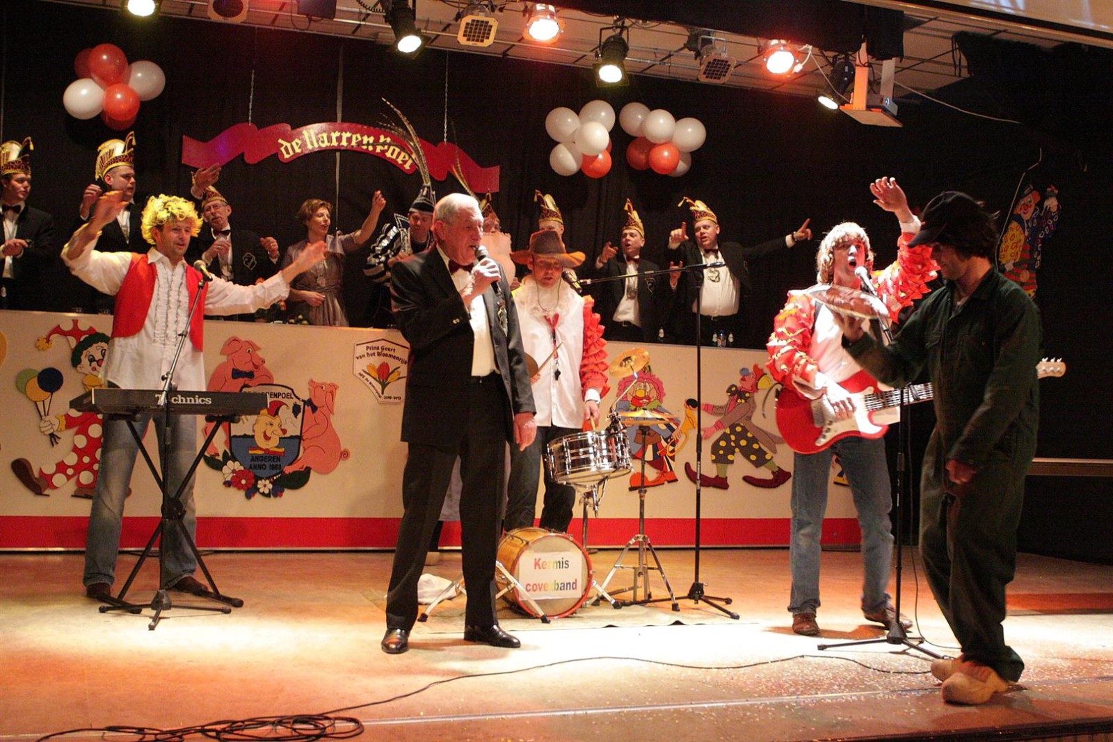 Ons eigen optreden was trouwens ook niet slecht. Een compleet nieuw repertoire, dus altijd wel een beetje spannend. Maar volgens mij sloegen de nummers goed aan. En het is waarschijnlijk nooit te voorkomen, dus met Paloma Blanca weer dwars door de zaal terug naar ons podium in de zaal. Nadat de Kermis Cover Band de grootste hits van de New Four, de Spitfires, You & Me en natuurlijk het doedelzaknummer van Summerland (officieel van John Farnham overigens) voorbij liet komen en de zaal de (kermis)tent afbrak was het tijd om af te sluiten met het Angerse Volkslied.