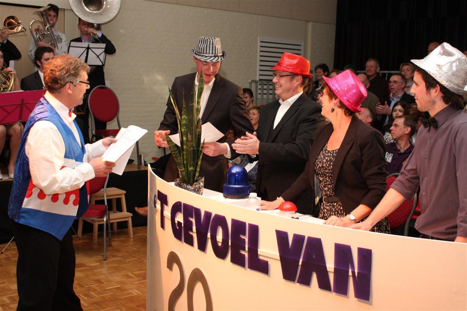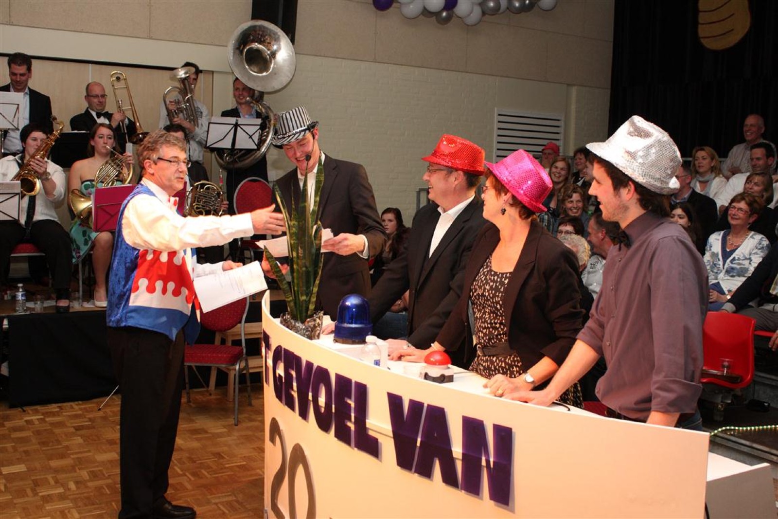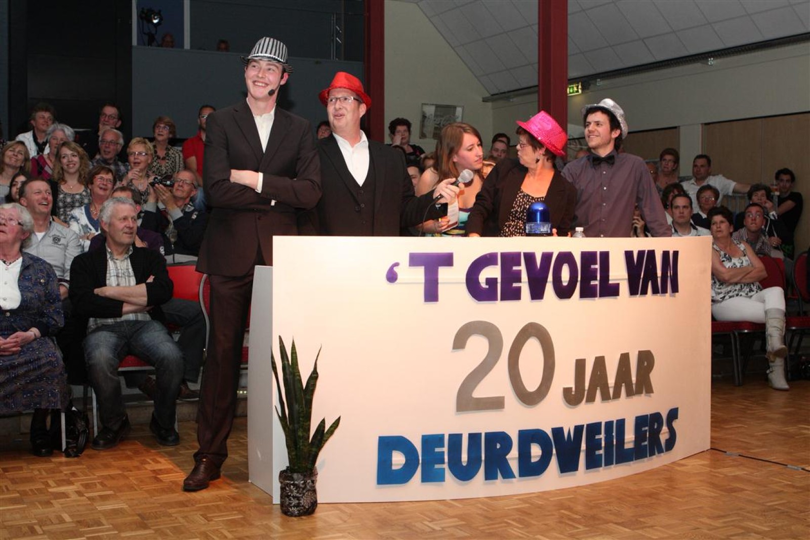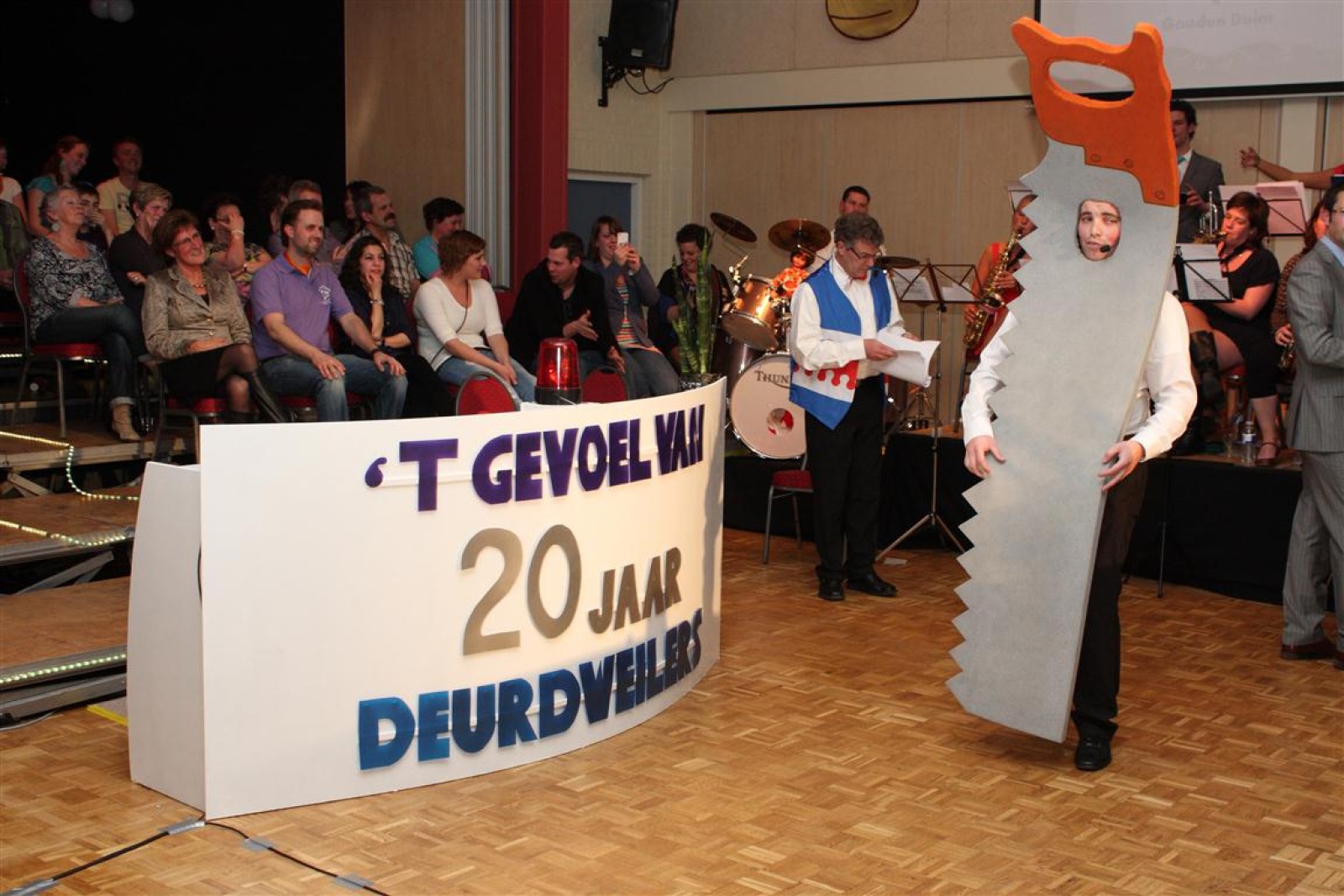 Een voor een werden alle Deurdweilers (gestoken in hun beste gala-tenue) naar binnen geroepen door Geert Bouwman. Op eentje na, Tom werd vergeten. Of toch niet? Na wat rumoer binnen het orkest en de zaal kwam de aap uit de mouw. Tom zou de presentatie van het “Het gevoel van…” op zich nemen. Middels leuke vragen en mooie filmpjes namen twee teams van fans en oud-deurdweilers het tegen elkaar op onder aanvoering van teamcaptains Youri en Ronald. Dit werd ondersteund met de muzikale klanken van het jubilerende orkest. Uiteindelijk had Youri’s team de meeste punten bij elkaar.