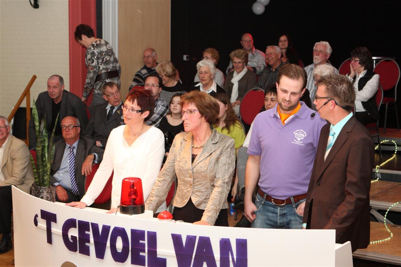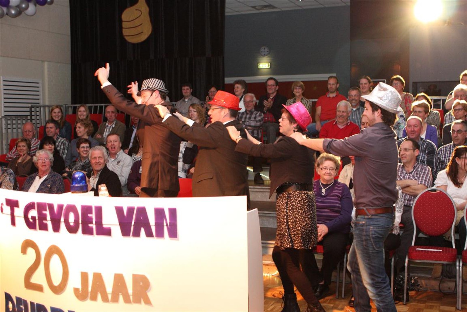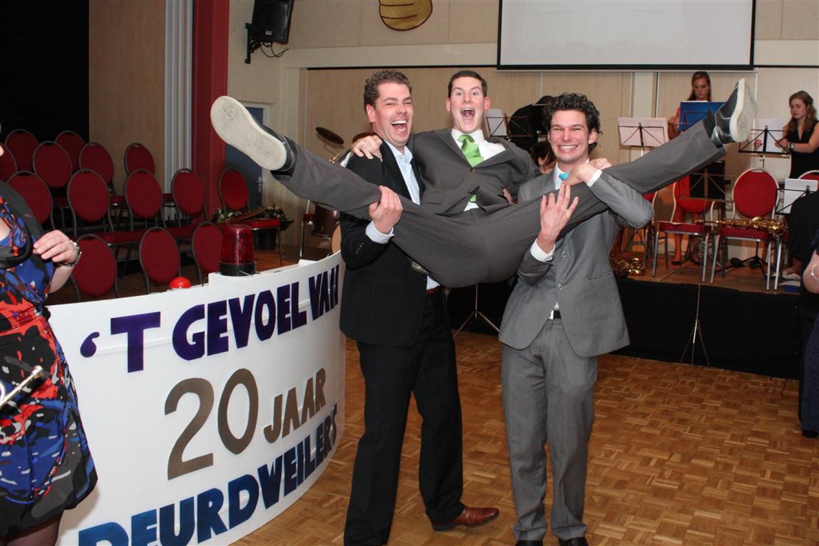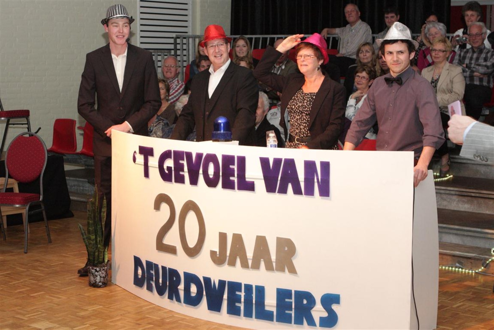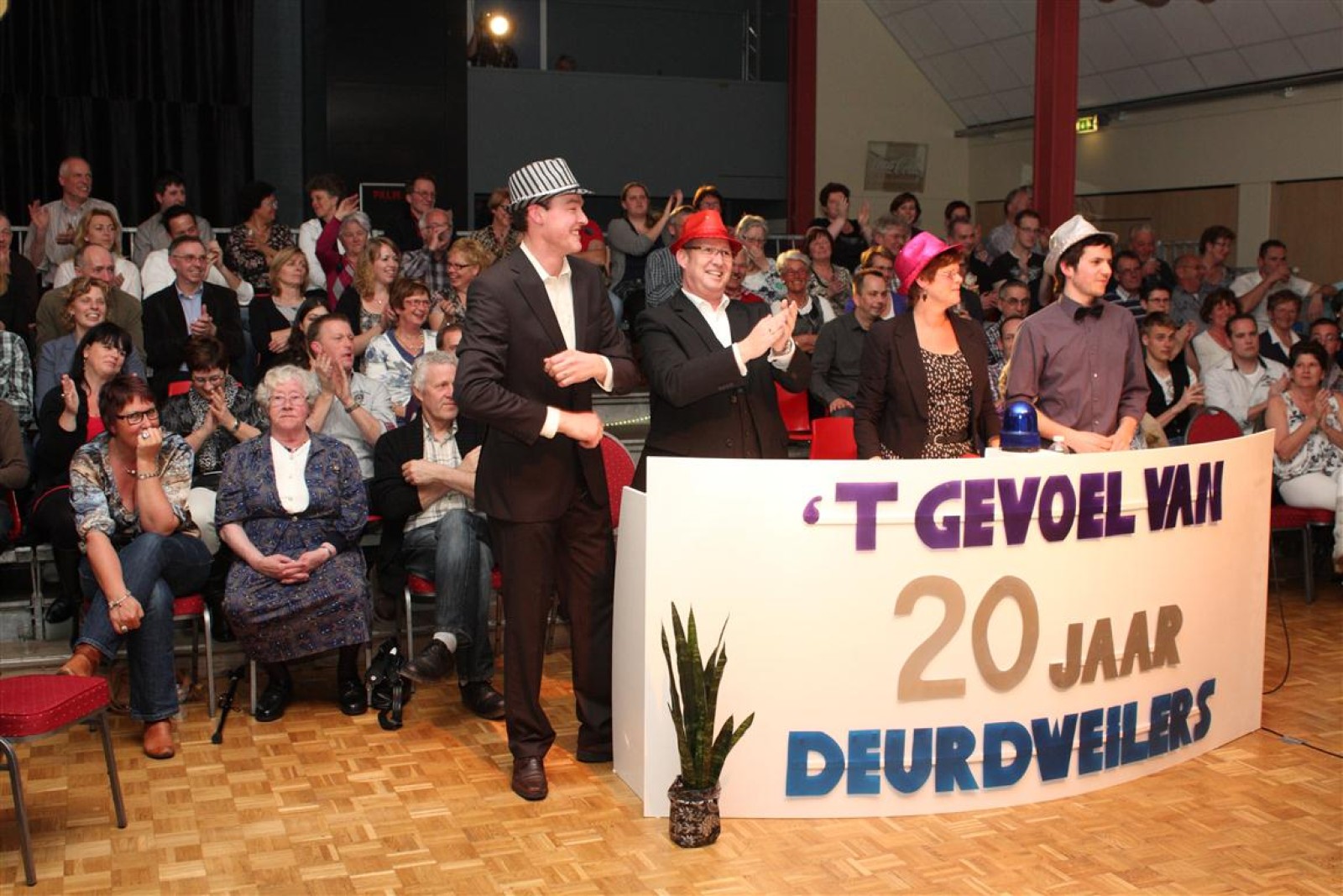 Een voor een werden alle Deurdweilers (gestoken in hun beste gala-tenue) naar binnen geroepen door Geert Bouwman. Op eentje na, Tom werd vergeten. Of toch niet? Na wat rumoer binnen het orkest en de zaal kwam de aap uit de mouw. Tom zou de presentatie van het “Het gevoel van…” op zich nemen. Middels leuke vragen en mooie filmpjes namen twee teams van fans en oud-deurdweilers het tegen elkaar op onder aanvoering van teamcaptains Youri en Ronald. Dit werd ondersteund met de muzikale klanken van het jubilerende orkest. Uiteindelijk had Youri’s team de meeste punten bij elkaar.