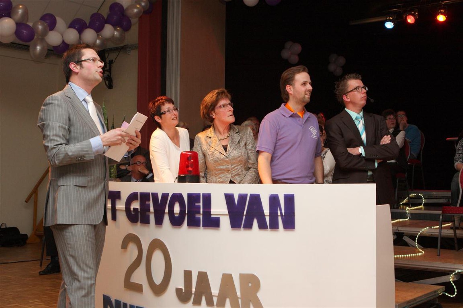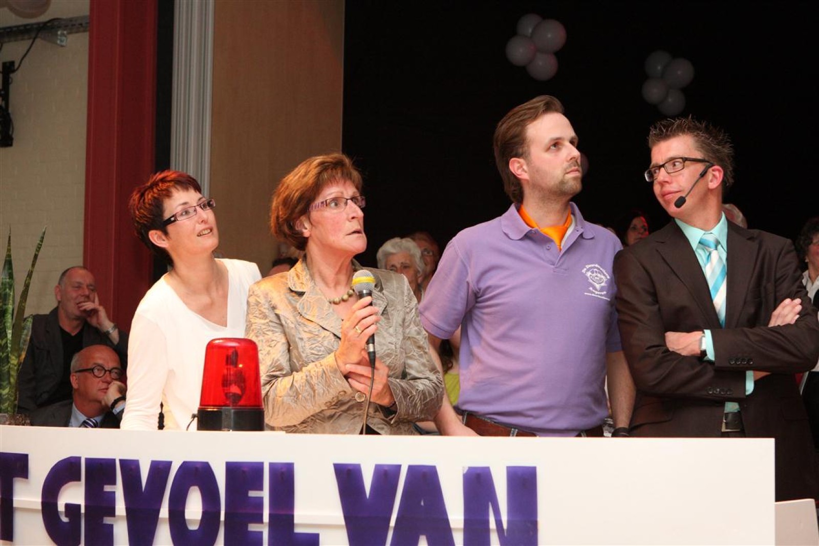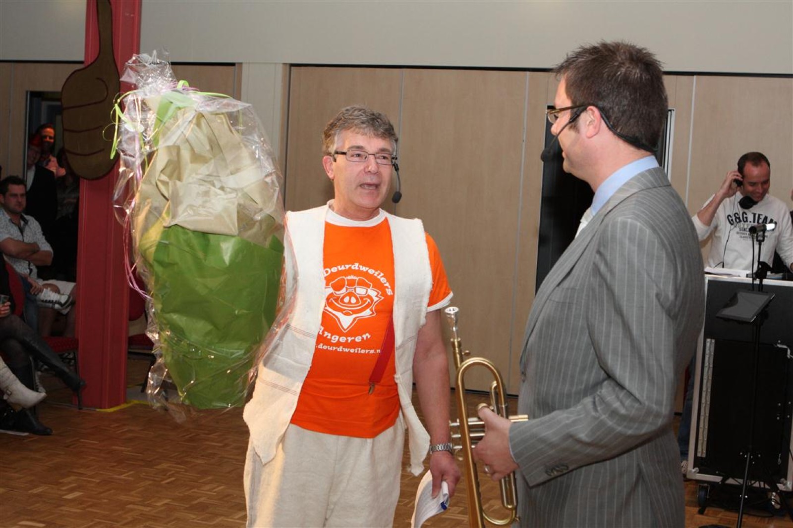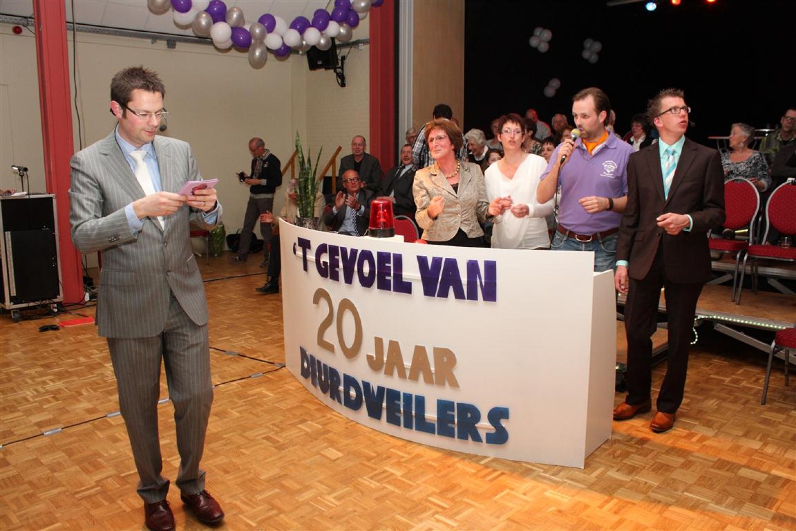Een voor een werden alle Deurdweilers (gestoken in hun beste gala-tenue) naar binnen geroepen door Geert Bouwman. Op eentje na, Tom werd vergeten. Of toch niet? Na wat rumoer binnen het orkest en de zaal kwam de aap uit de mouw. Tom zou de presentatie van het “Het gevoel van…” op zich nemen. Middels leuke vragen en mooie filmpjes namen twee teams van fans en oud-deurdweilers het tegen elkaar op onder aanvoering van teamcaptains Youri en Ronald. Dit werd ondersteund met de muzikale klanken van het jubilerende orkest. Uiteindelijk had Youri’s team de meeste punten bij elkaar.