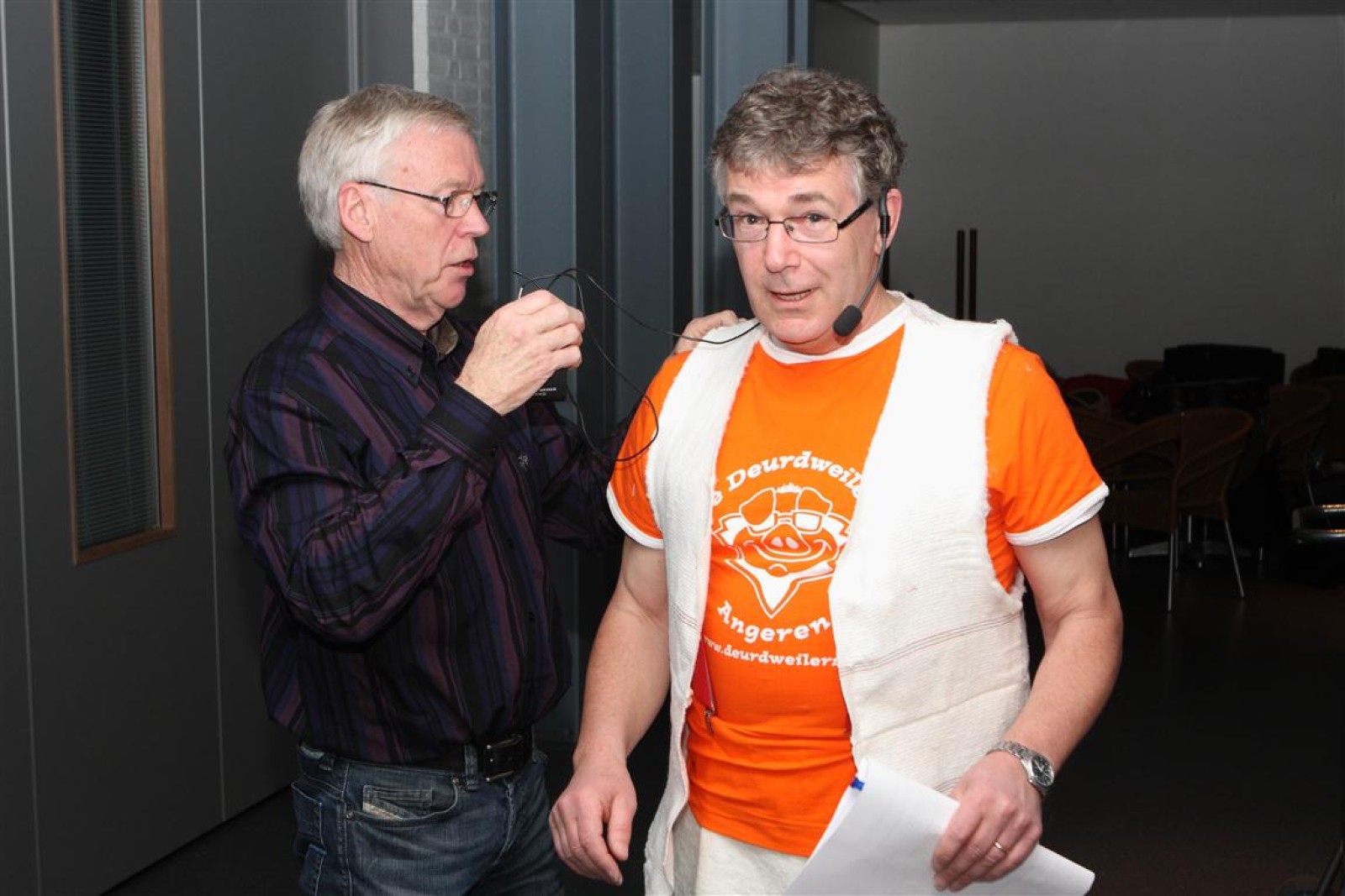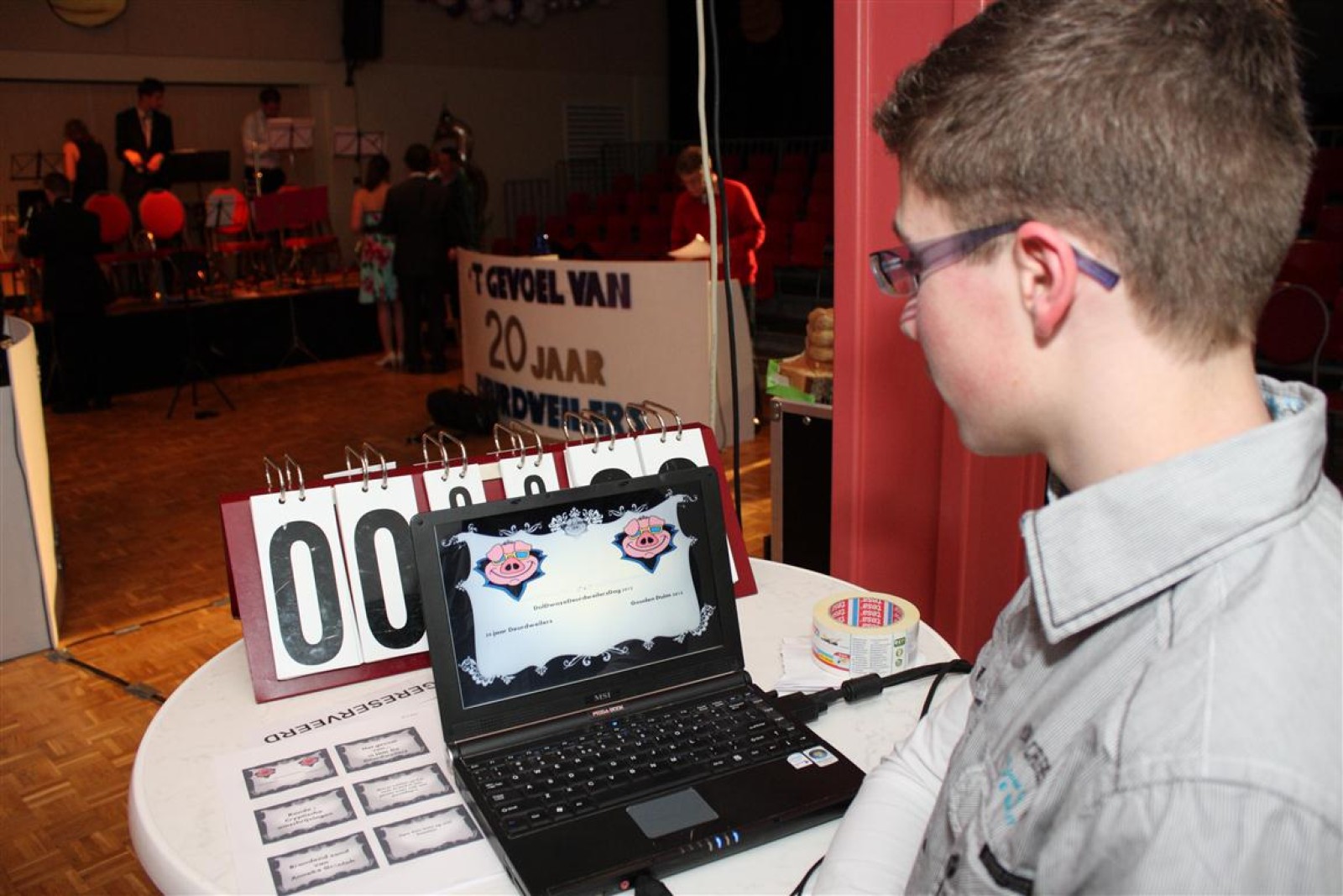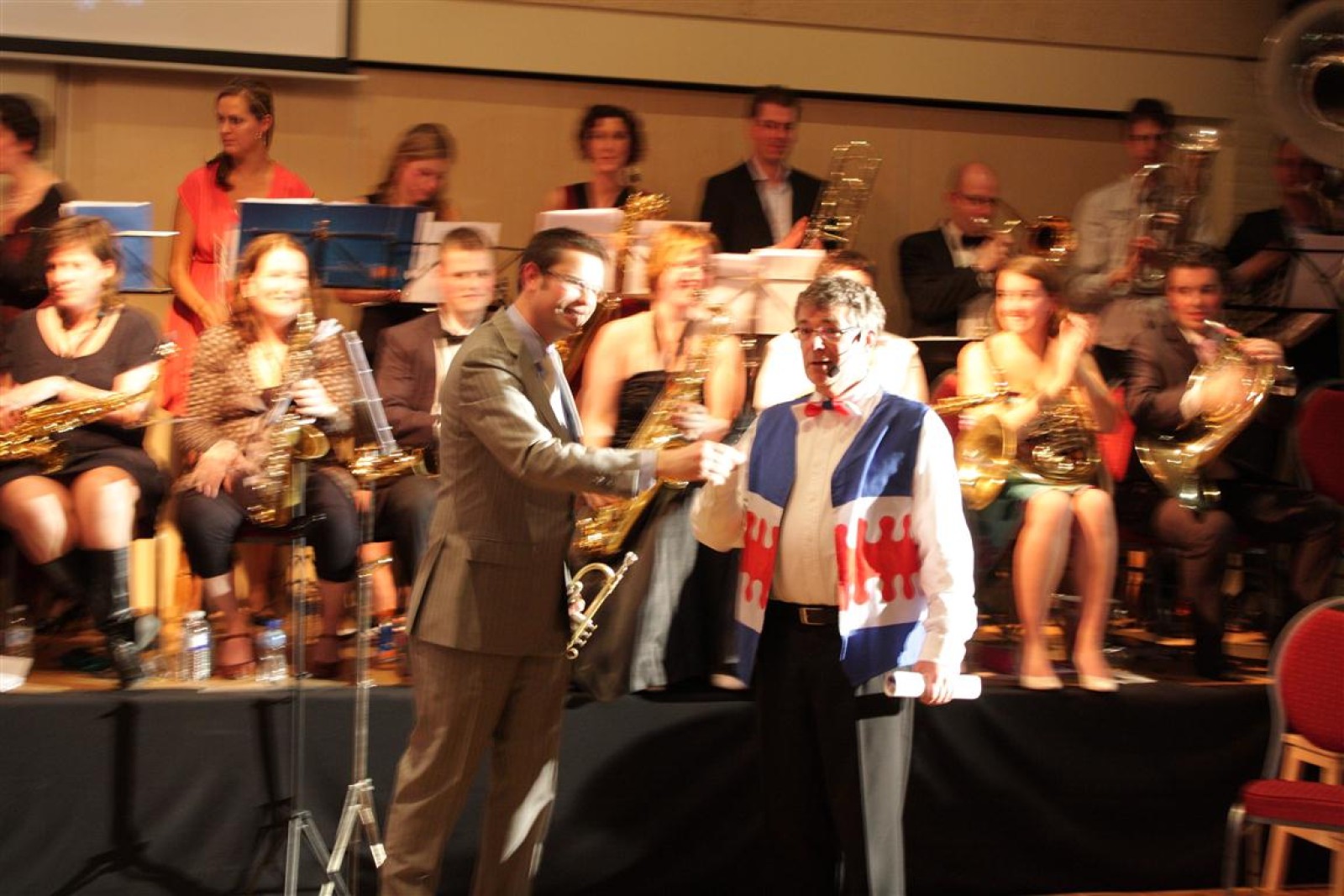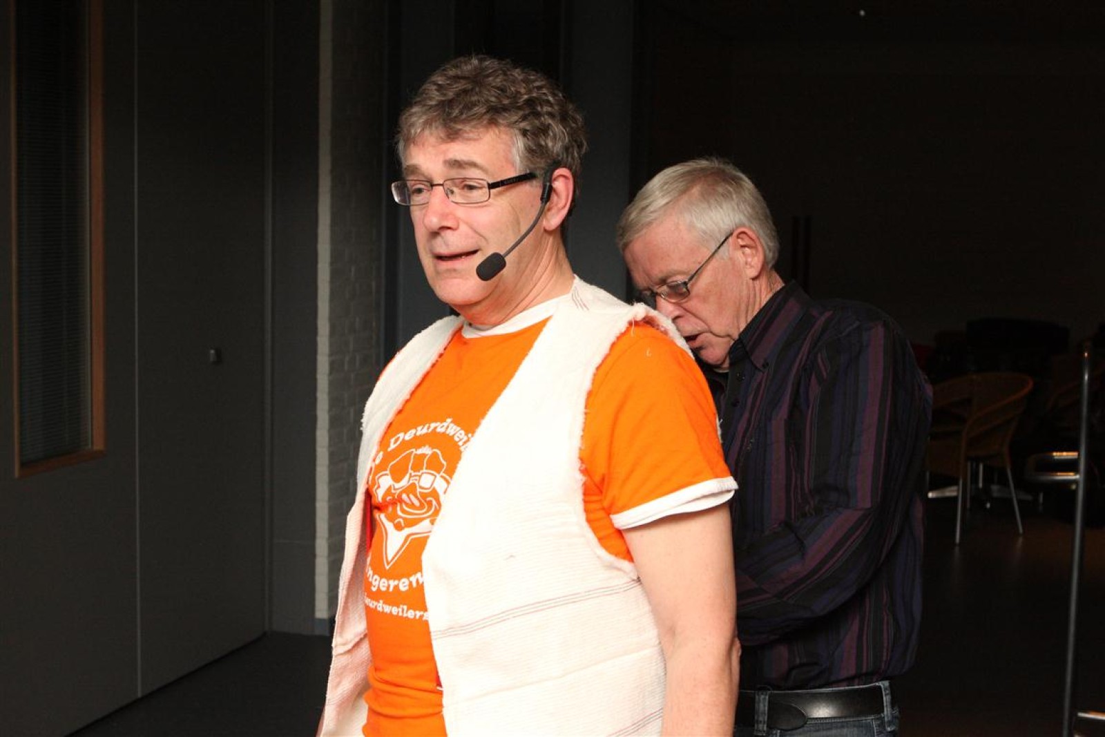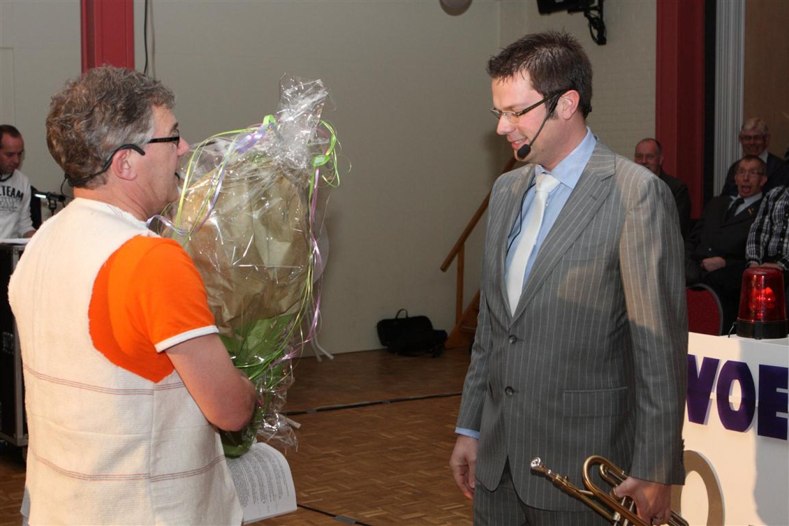 Een voor een werden alle Deurdweilers (gestoken in hun beste gala-tenue) naar binnen geroepen door Geert Bouwman. Op eentje na, Tom werd vergeten. Of toch niet? Na wat rumoer binnen het orkest en de zaal kwam de aap uit de mouw. Tom zou de presentatie van het “Het gevoel van…” op zich nemen. Middels leuke vragen en mooie filmpjes namen twee teams van fans en oud-deurdweilers het tegen elkaar op onder aanvoering van teamcaptains Youri en Ronald. Dit werd ondersteund met de muzikale klanken van het jubilerende orkest. Uiteindelijk had Youri’s team de meeste punten bij elkaar.