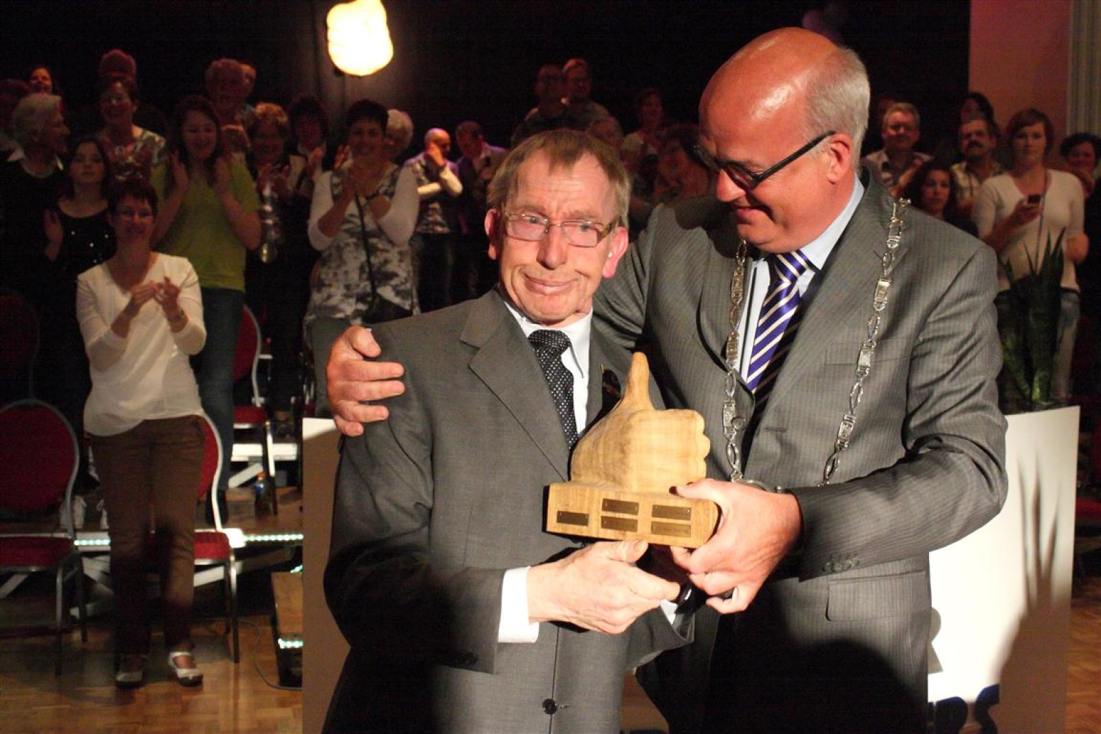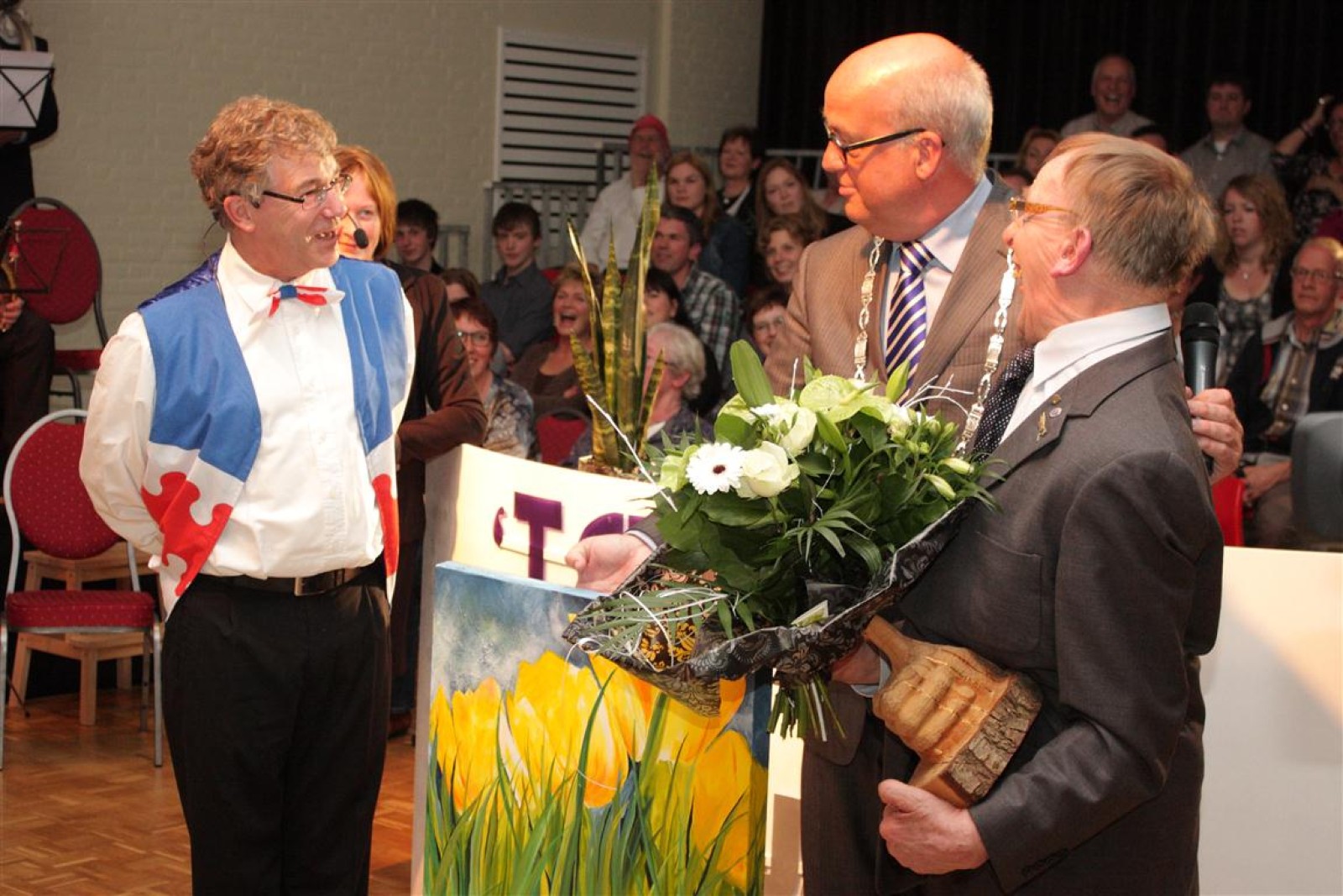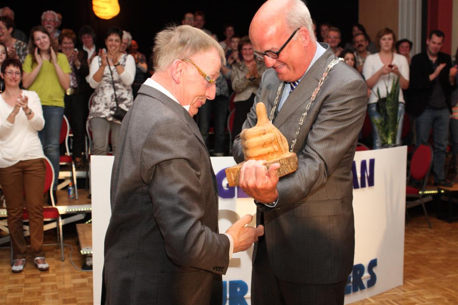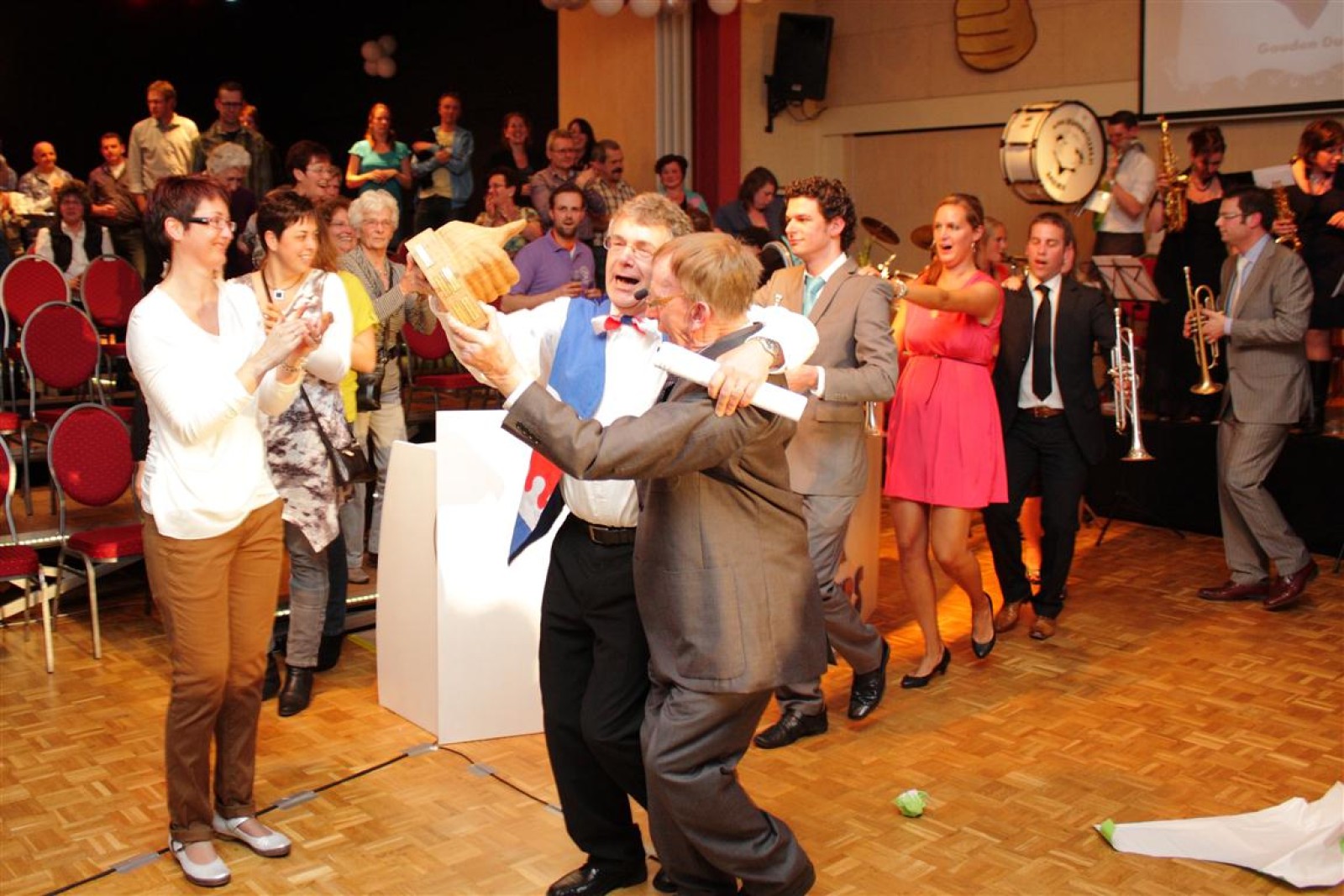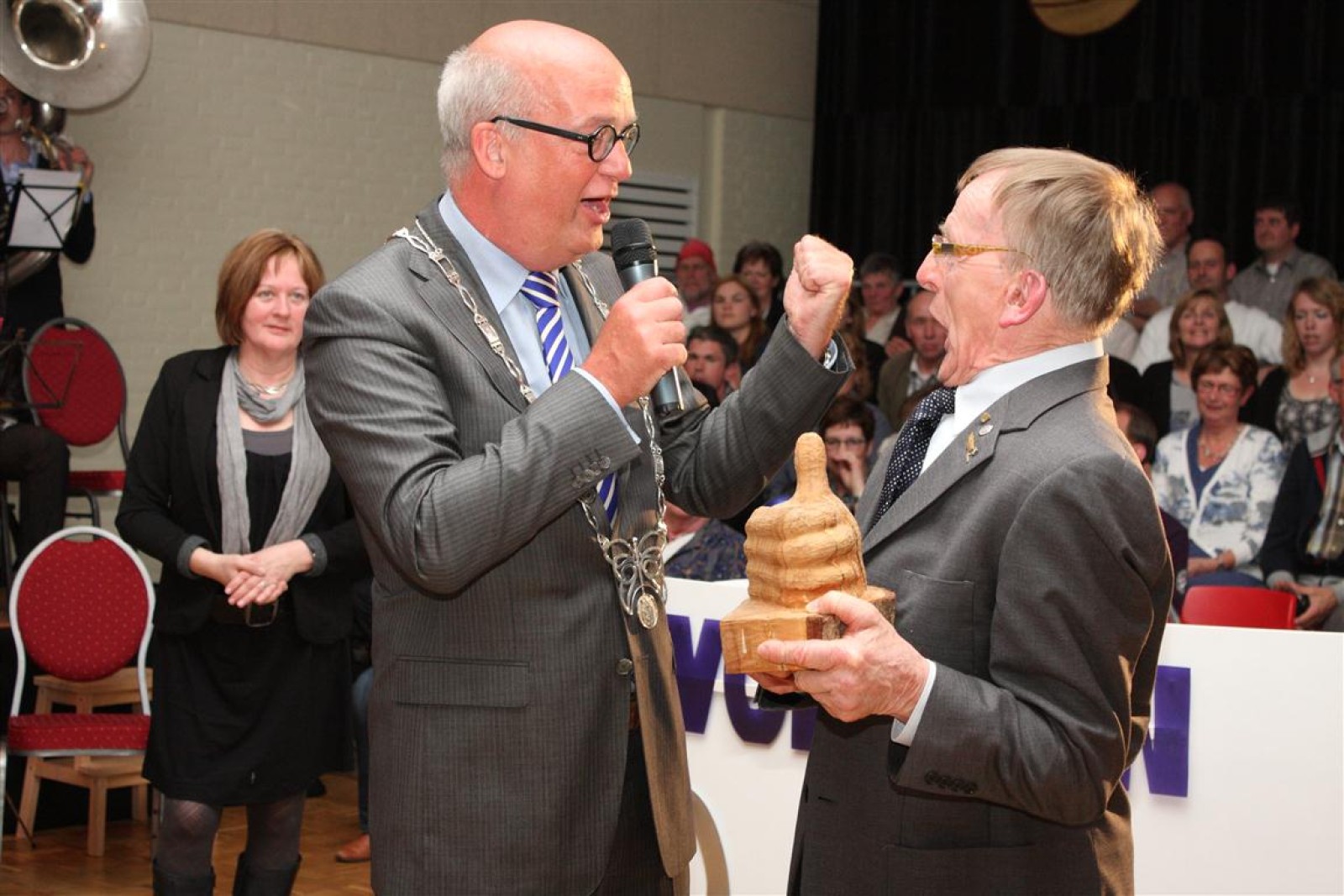 De ceremonie voor de Gouden Duim was er ook weer een om in te lijsten. Koen had zijn zingende zaag weer bij zich en de spanning werd opgevoerd bij het bekendmaken van de winnaar: Herman. Herman vloog de burgemeester werkelijk om de nek en een groot applaus viel hem ten deel. En terecht!