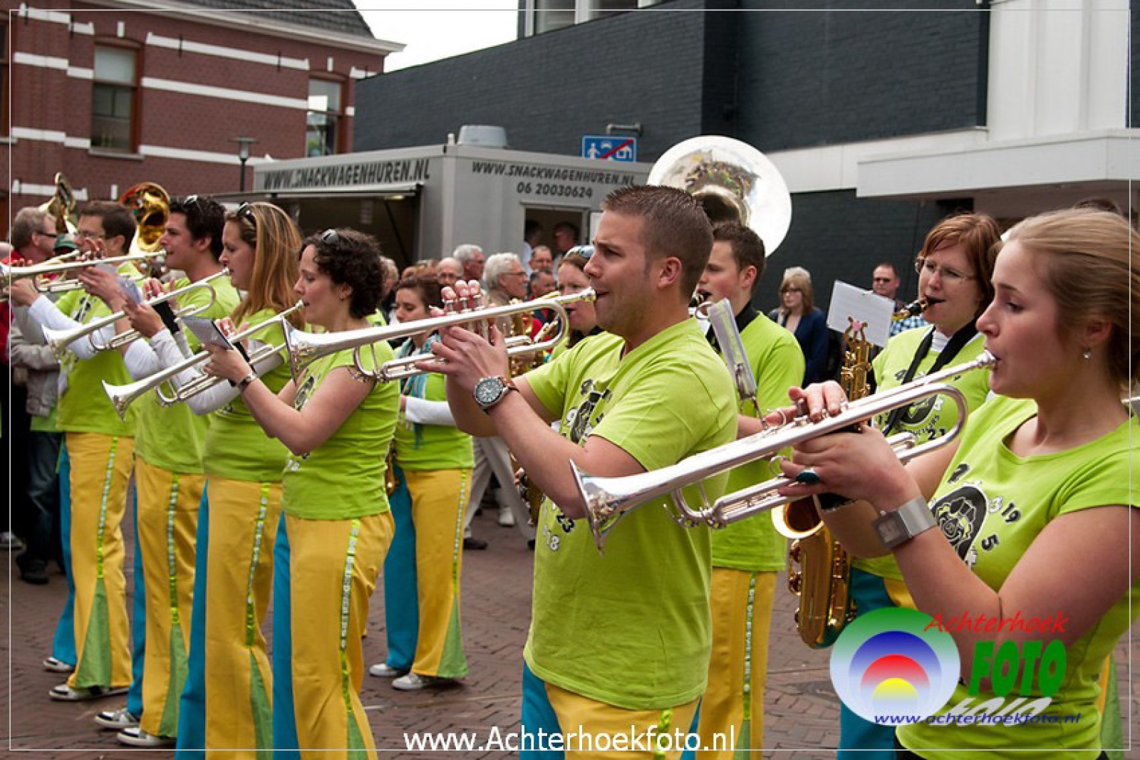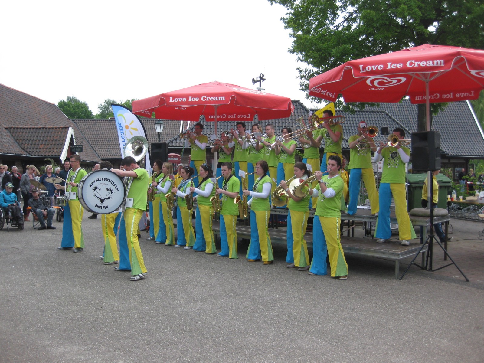 Wat een heerlijk weertje was het in Groenlo. Niet verwacht, maar wel heel welkom. Menig rood koppie ging er ’s avonds weer naar huis of kwam dat ook door de hoeveelheden Grolsch? Groenlo stond dit jaar op de planning met voornamelijk als doel om zoveel mogelijk muziek door te spelen voor de cd-opname van de dag erna. Dus geen uitgebalanceerde show, maar gewoon wat bij elkaar geraapte nummers. Was even wennen voor de meesten, maar we kunnen terugkijken op een mooie dag met veel mooie en goede orkesten waarvan we er gelukkig een aantal ook weer in Bemmel tegen zullen komen.