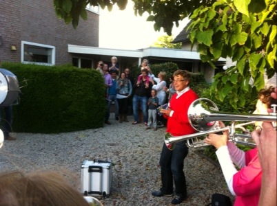 De tweede CD werd overhandigd aan ‘hoffotograaf’ Henk Sluiter die ook weer aanwezig was.