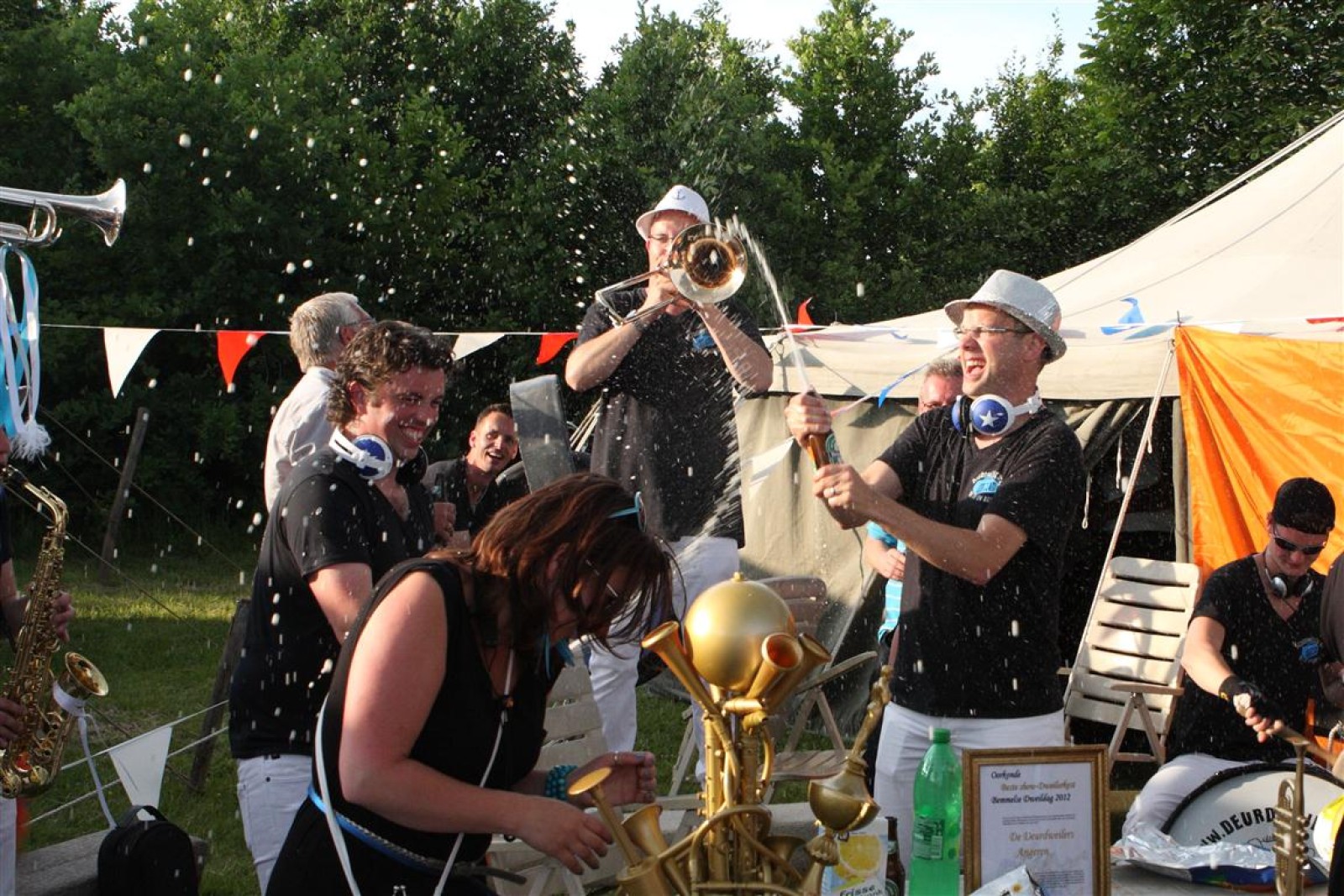 Nieuwe leden werd nog verteld “die tijd van winnen hebben we gehad” en als je ons van de week hoorde spelen dan was dat ook zo. Maar wat er afgelopen week gebeurd is, geen idee. Was het dat iedereen nog even extra geoefend heeft thuis. Waren het de 3 extra repetities, waren het de blauwe lintjes, waren het de toetertjes die op het laatste moment kwamen. Was het omdat Maarten beter kan racefietsen dan hoorn spelen? 🙂 Was het ’t heerlijke zonnetje dat de hele dag scheen? Of het publiek dat weer in grote getale in Bemmel aanwezig was? De supersfeer op de camping? Ach zo kunnen we nog wel even doorgaan. Alles is waarschijnlijk net op het juiste moment bij elkaar gekomen. En natuurlijk wel gewoon keihard gewerkt de afgelopen twee weken. Maar dat er dit uit zou komen…