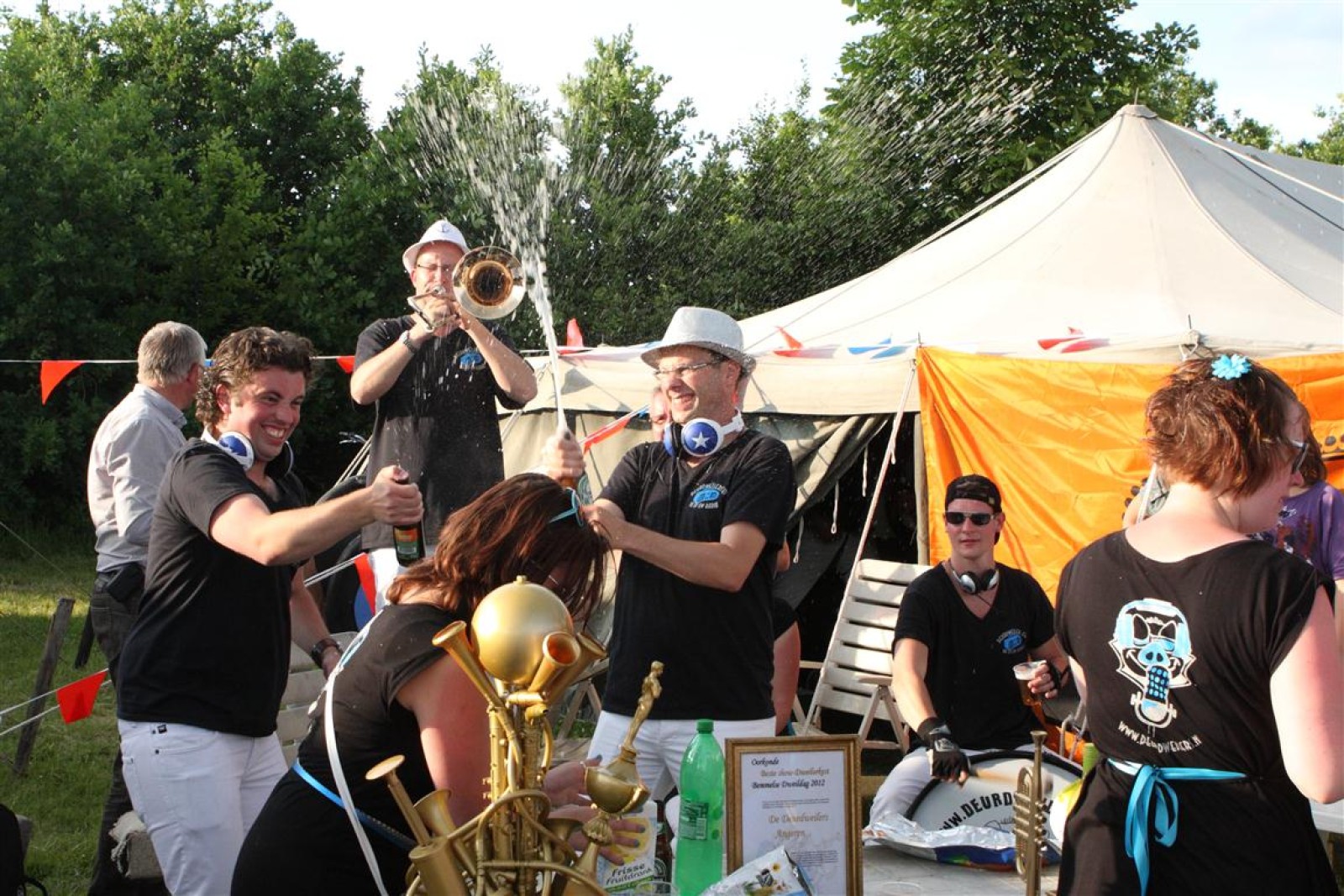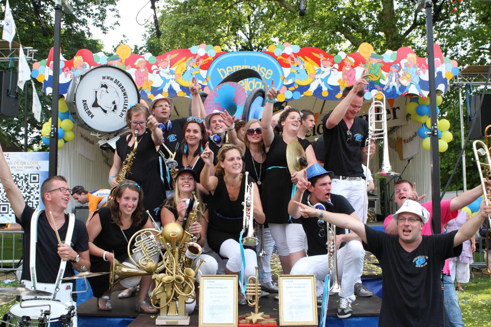 Nieuwe leden werd nog verteld “die tijd van winnen hebben we gehad” en als je ons van de week hoorde spelen dan was dat ook zo. Maar wat er afgelopen week gebeurd is, geen idee. Was het dat iedereen nog even extra geoefend heeft thuis. Waren het de 3 extra repetities, waren het de blauwe lintjes, waren het de toetertjes die op het laatste moment kwamen. Was het omdat Maarten beter kan racefietsen dan hoorn spelen? 🙂 Was het ’t heerlijke zonnetje dat de hele dag scheen? Of het publiek dat weer in grote getale in Bemmel aanwezig was? De supersfeer op de camping? Ach zo kunnen we nog wel even doorgaan. Alles is waarschijnlijk net op het juiste moment bij elkaar gekomen. En natuurlijk wel gewoon keihard gewerkt de afgelopen twee weken. Maar dat er dit uit zou komen…