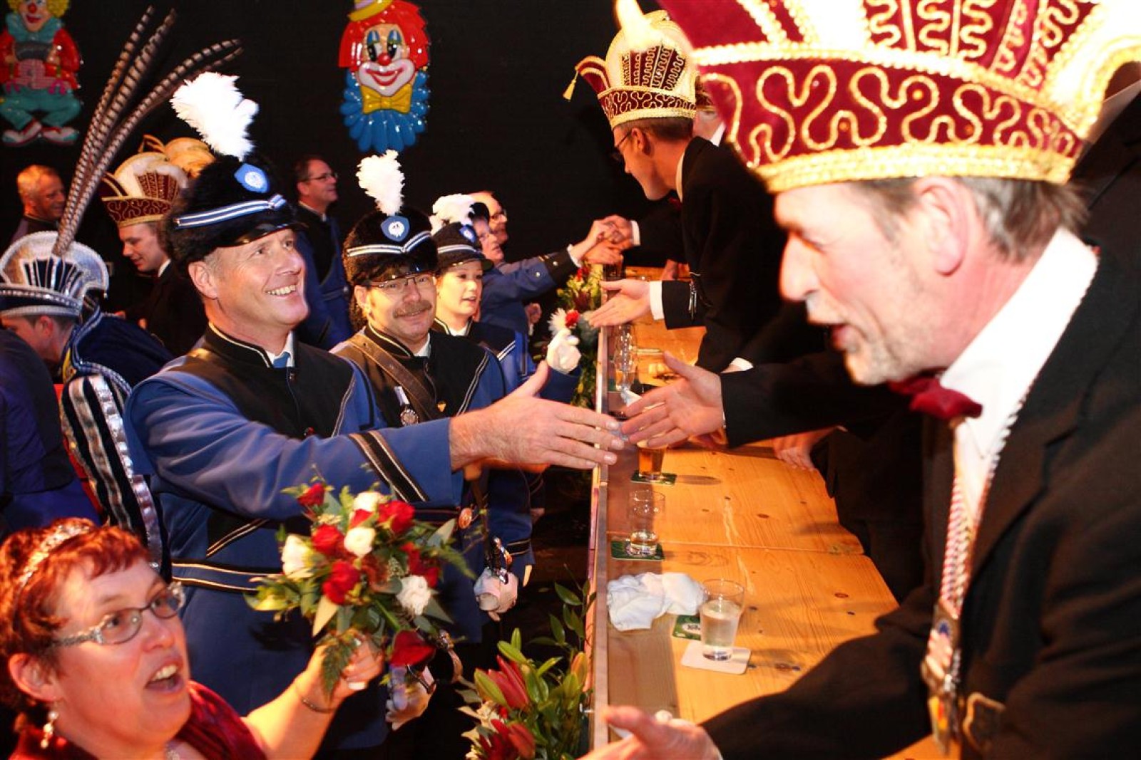 Rond 20 uur stond er een kleine 68-persoonsbus klaar om ons naar Bochum in Duitsland te brengen. We hebben daar met de carnavalsdagen al kennisgemaakt met het ganzentrekken, maar deze keer was er een gezamenlijke zittingsavond van meerdere verenigingen uit Bochum. We wisten niet waar we precies terecht zouden komen, maar het bleek een grote schouwburg te zijn boordevol Duitse carnavalisten.