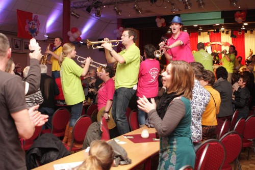 De Angerense carnavalsvereniging De Narrenpoel bestaat 44 jaar. Reden dus om groot uit te pakken op hun jubileumpronkzitting. Voor de Deurdweilers is het inmiddels het 22e carnavalsseizoen in het bestaan van het orkest. Dus dubbel feest!
