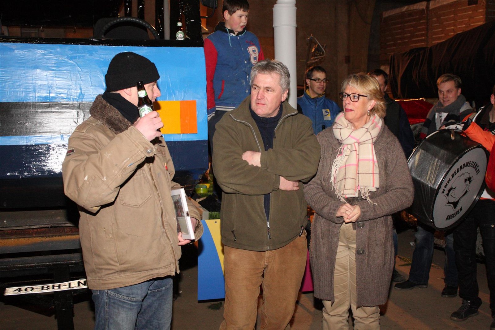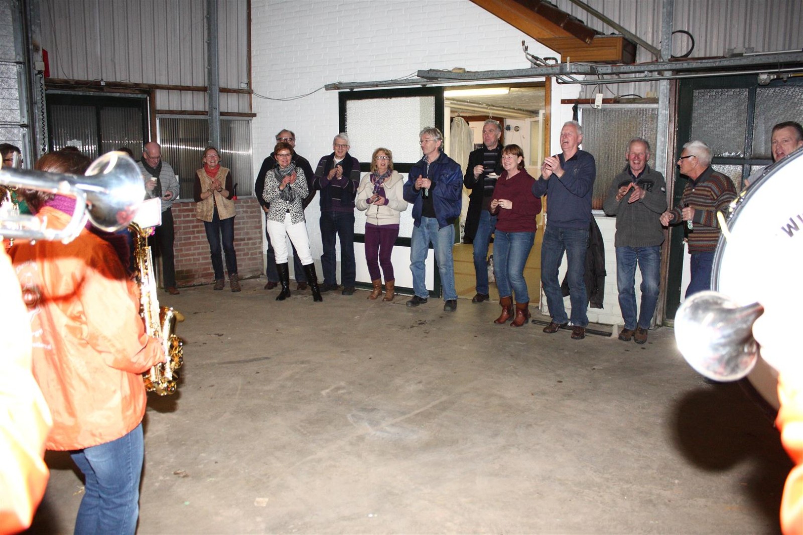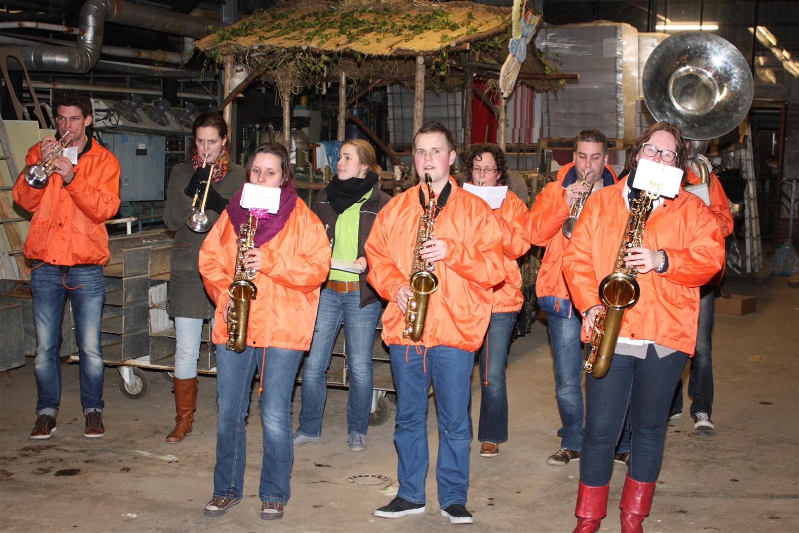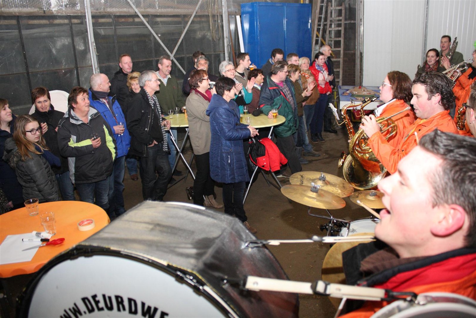 Een traditie die vorig jaar is begonnen wordt vanavond voortgezet. Als eerste werd een bezoekje gebracht aan TOK/FC Knudde. Het is dat het dak van de loods een meter of 5 hoog was anders was het eraf gegaan.
