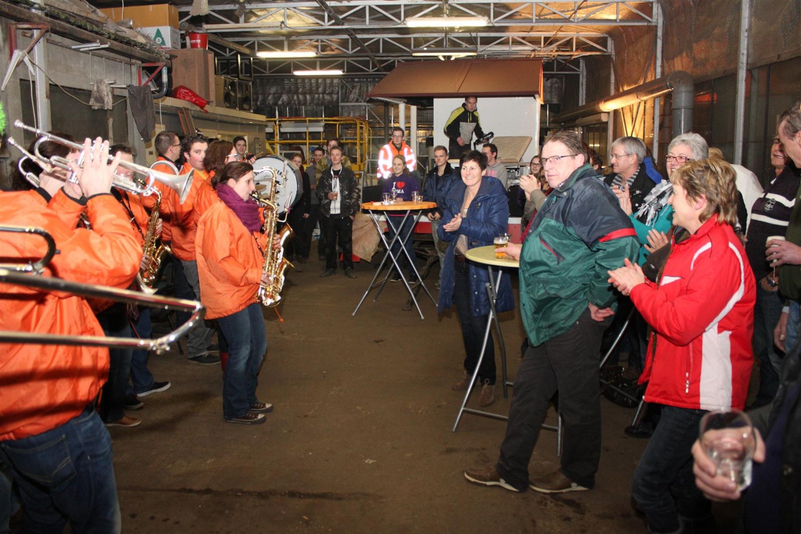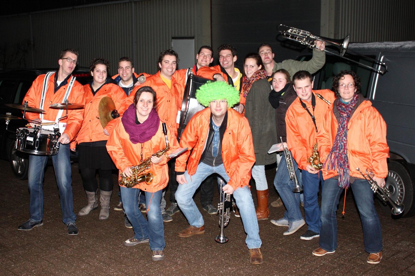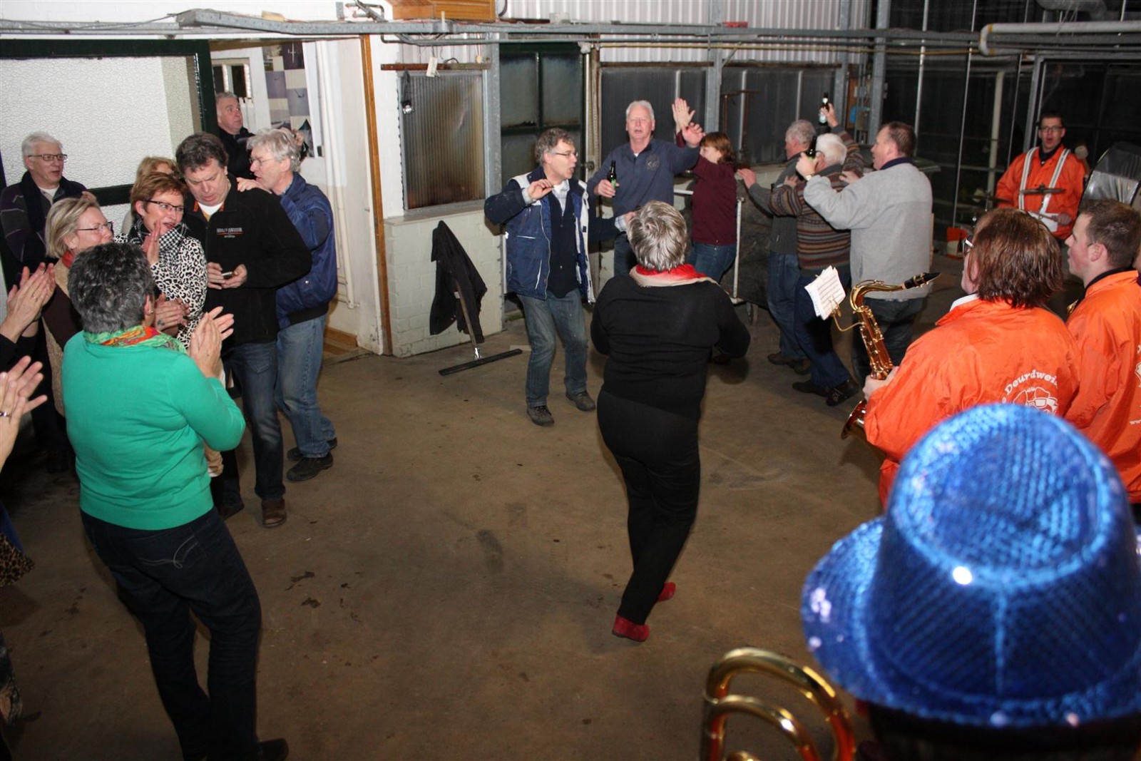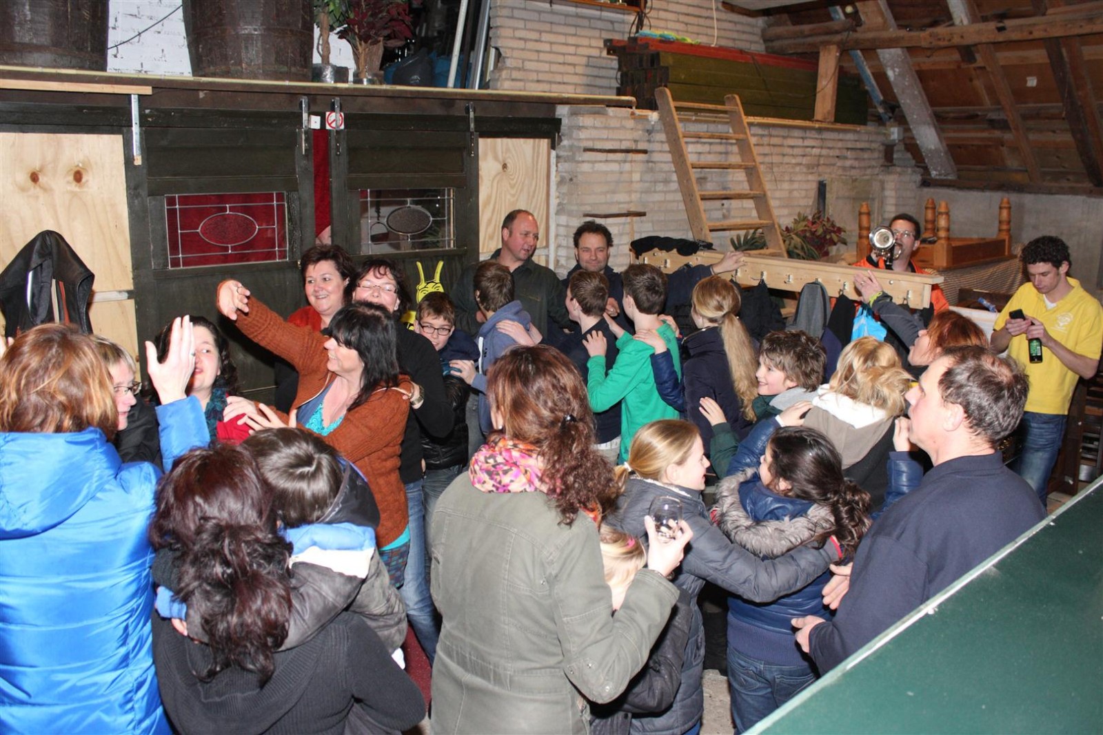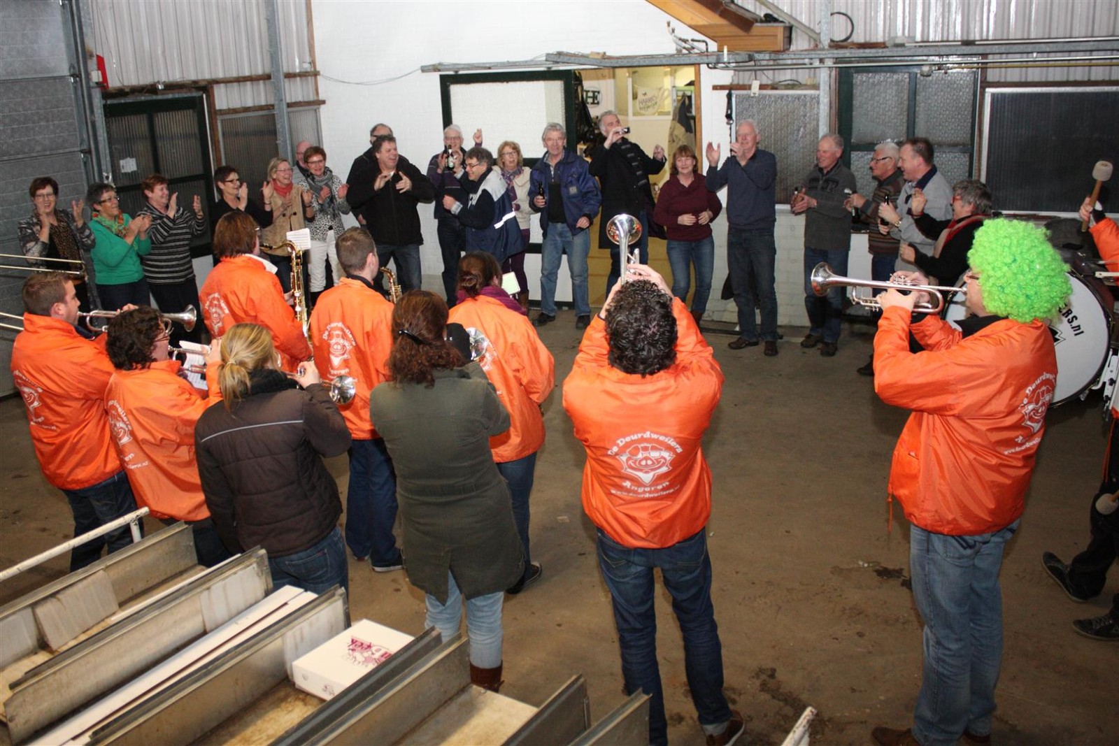 Een traditie die vorig jaar is begonnen wordt vanavond voortgezet. Als eerste werd een bezoekje gebracht aan TOK/FC Knudde. Het is dat het dak van de loods een meter of 5 hoog was anders was het eraf gegaan.