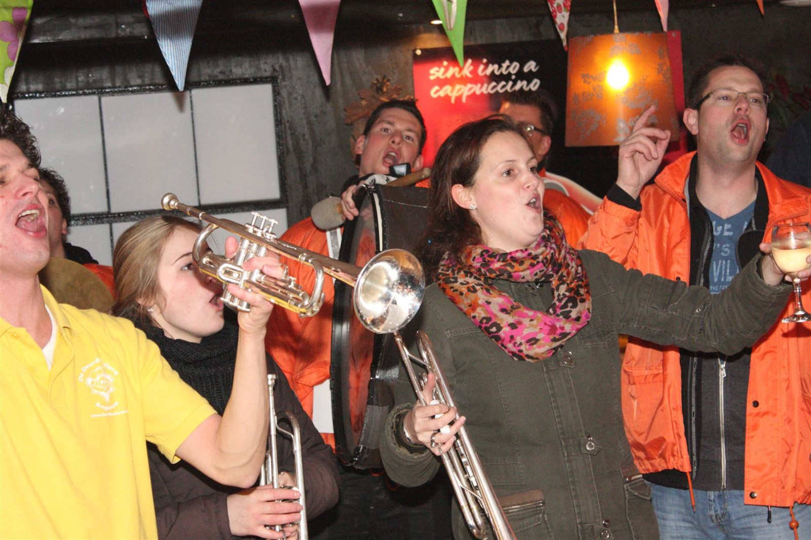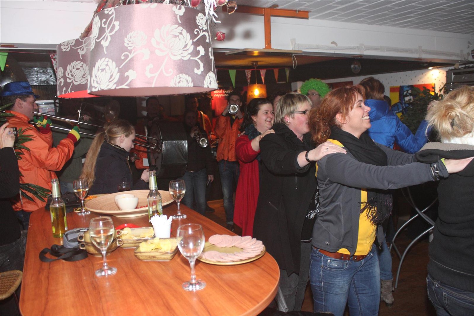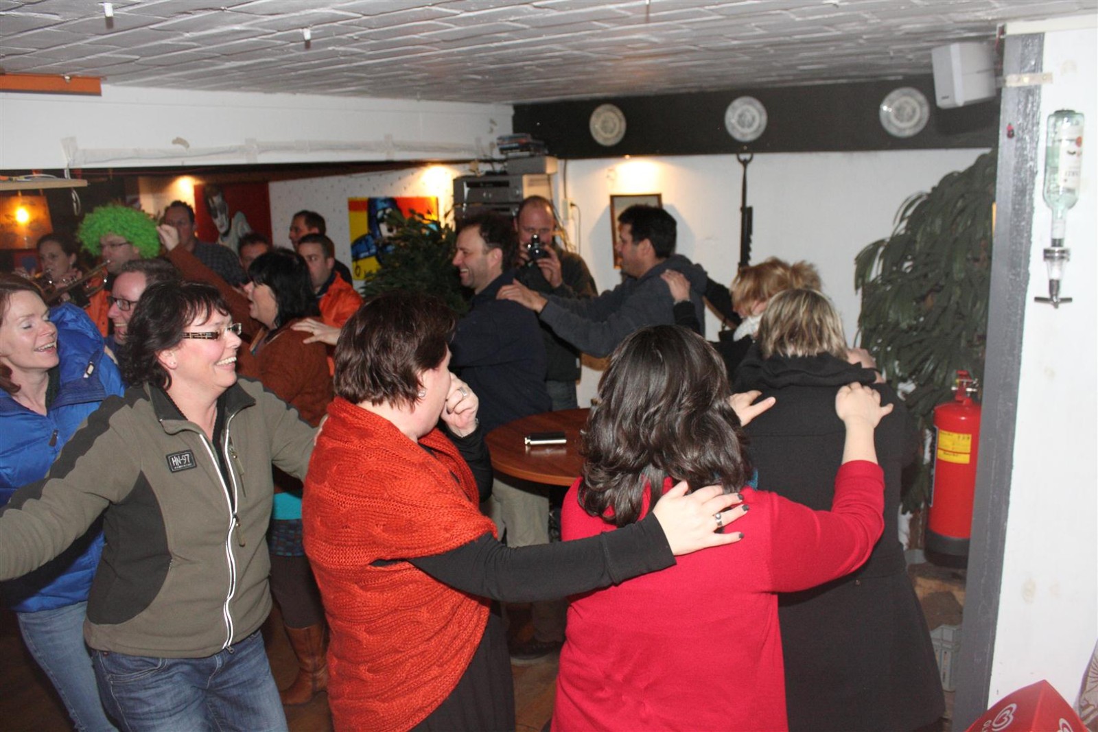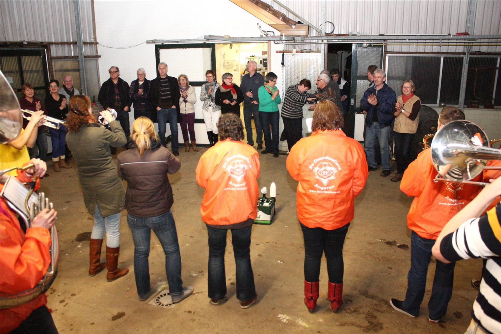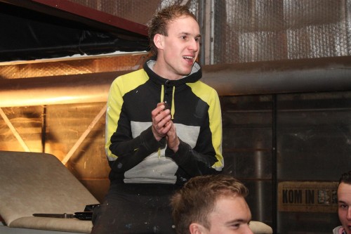 Een traditie die vorig jaar is begonnen wordt vanavond voortgezet. Als eerste werd een bezoekje gebracht aan TOK/FC Knudde. Het is dat het dak van de loods een meter of 5 hoog was anders was het eraf gegaan.