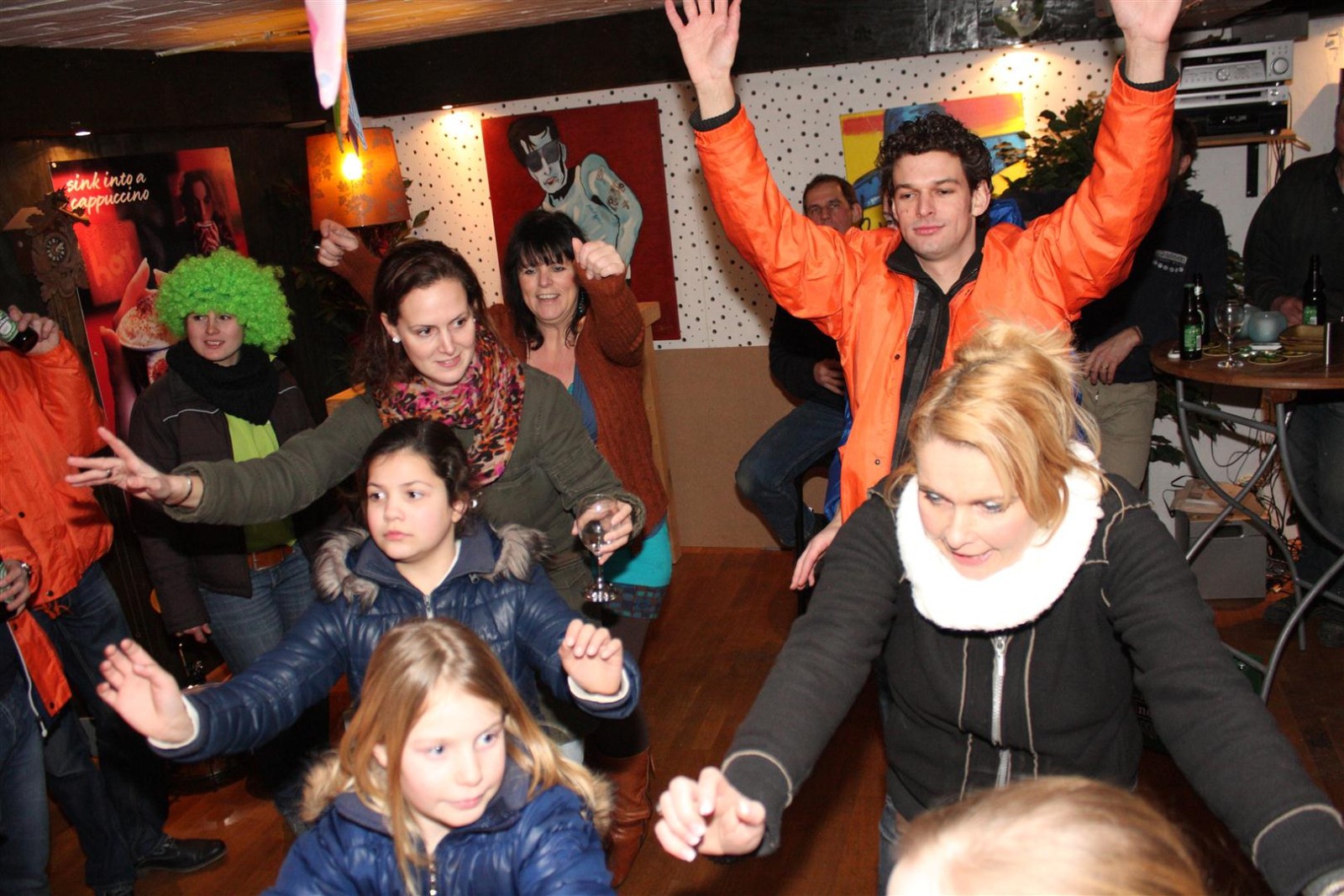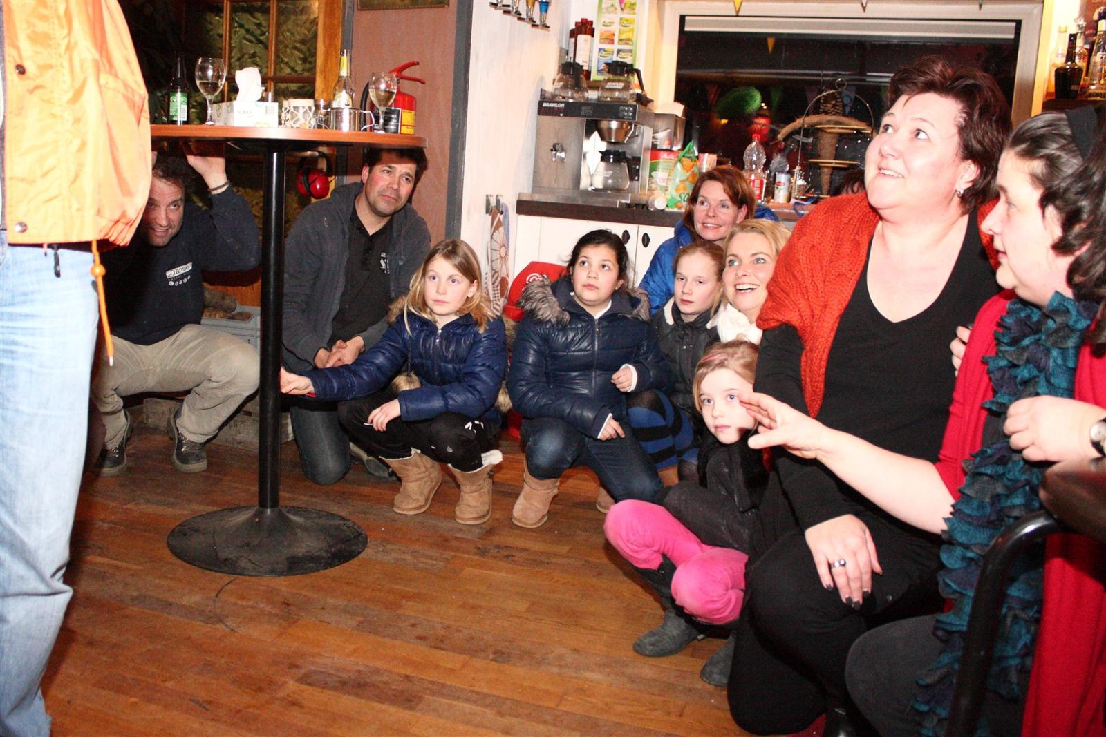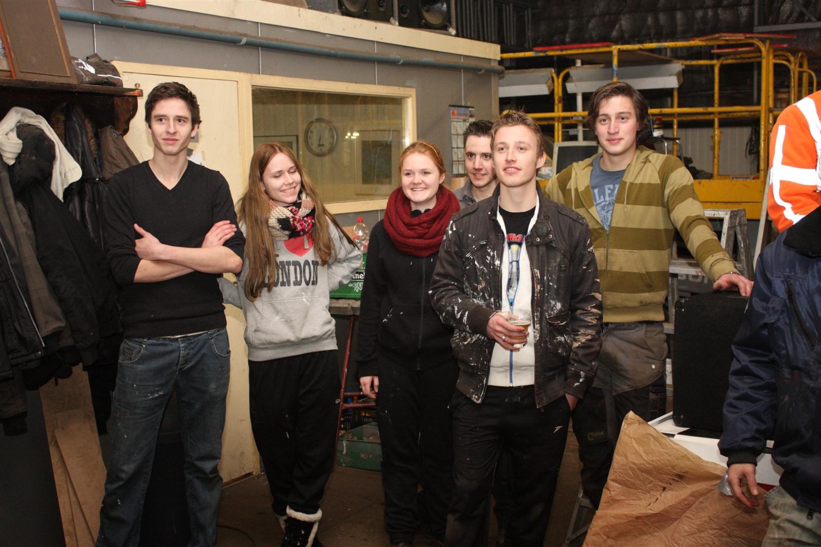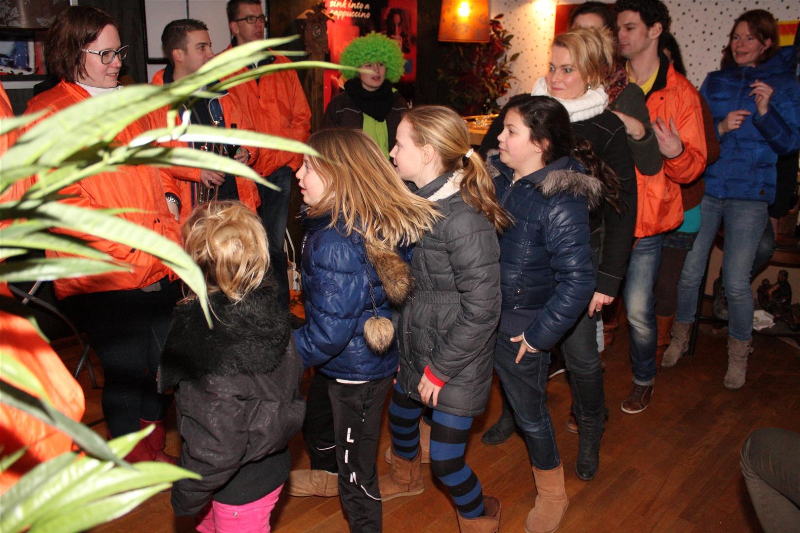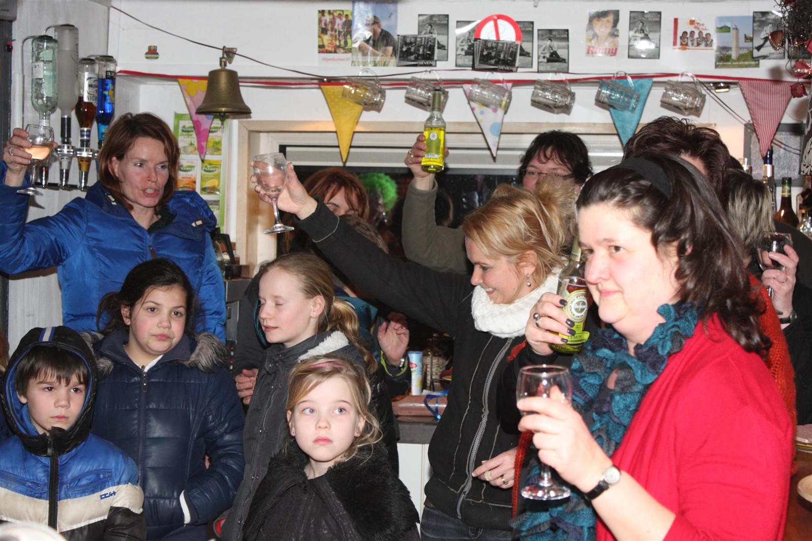 Aangezien fotograaf Henk niet iedereen op de foto kreeg werd de heftruck erbij gereden om hem van bovenaf een foto te laten maken.