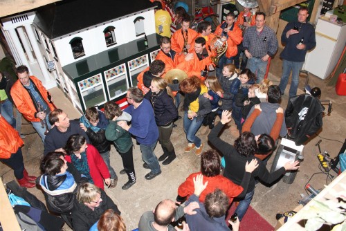 Ook daar werd in de koude schuur nog een biertje genuttigd. Het laatste adresje dus…