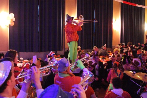 In de feestzaal was er nog slechts tijd voor twee setjes muziek, want om 18 uur moest de bus weer terug. In de bus werd de ene na de andere (te lange) mop verteld. Een langere versie van dit verslag valt ongetwijfeld te lezen in het volgende fanclubblad.