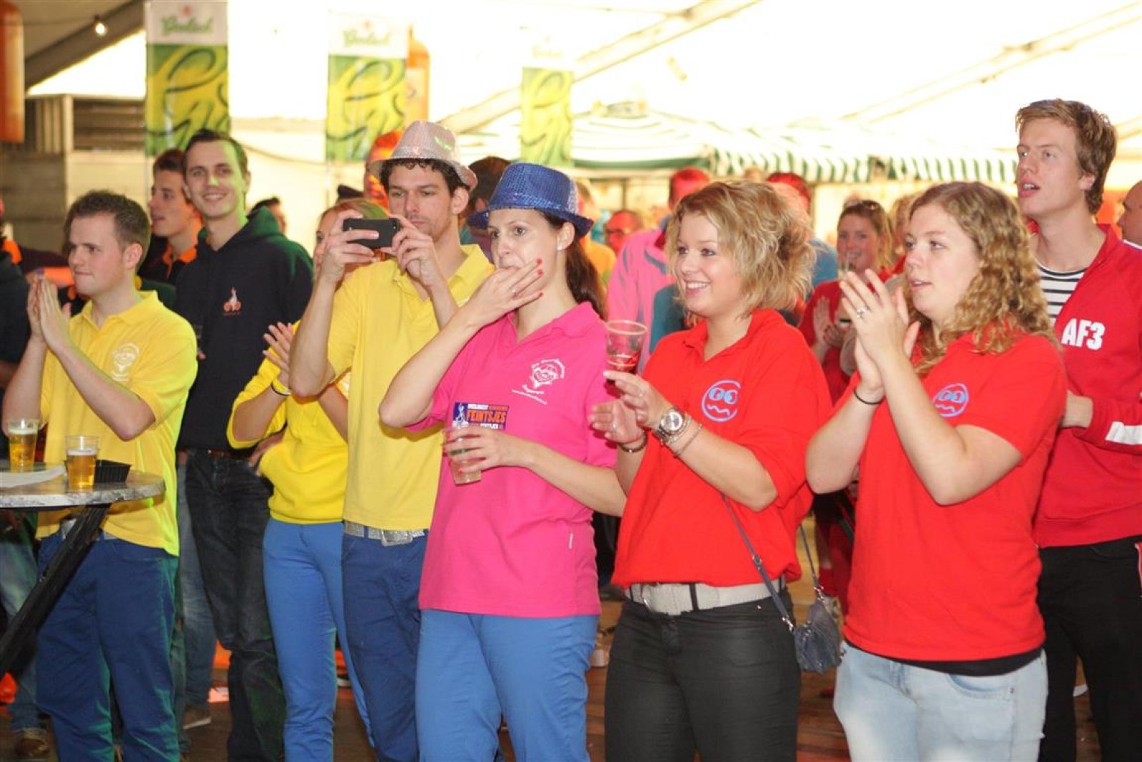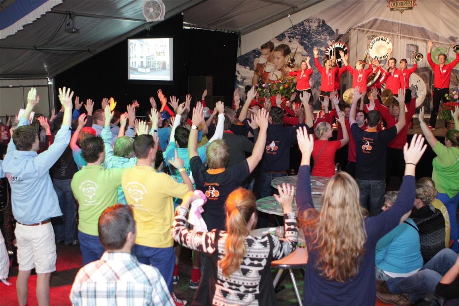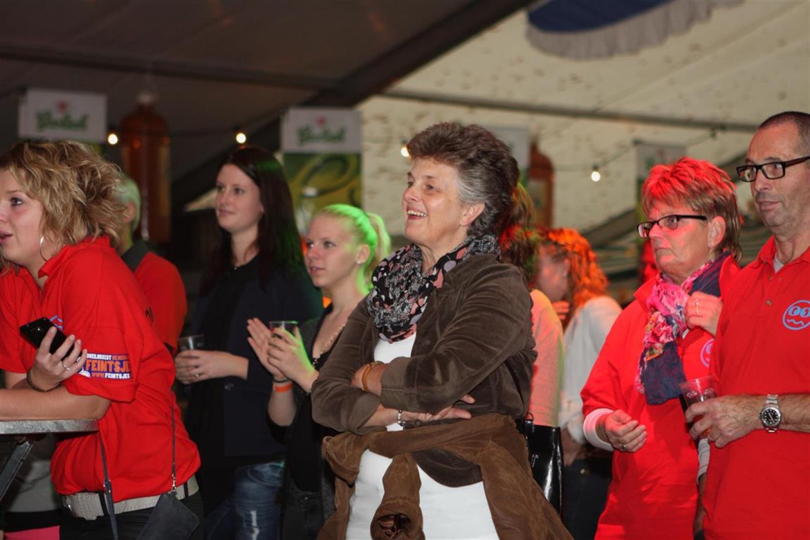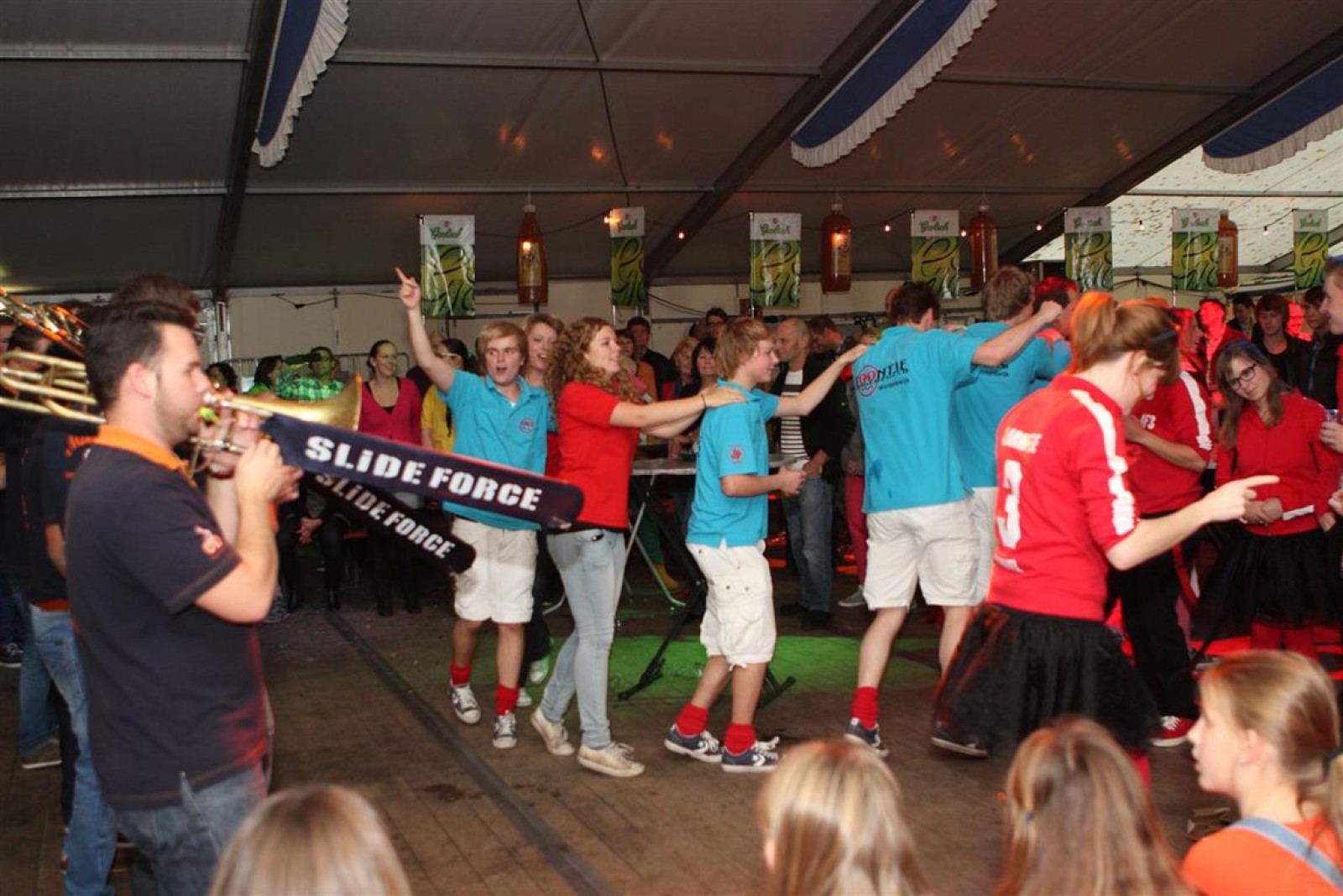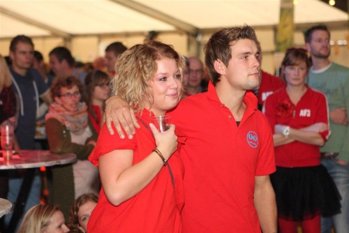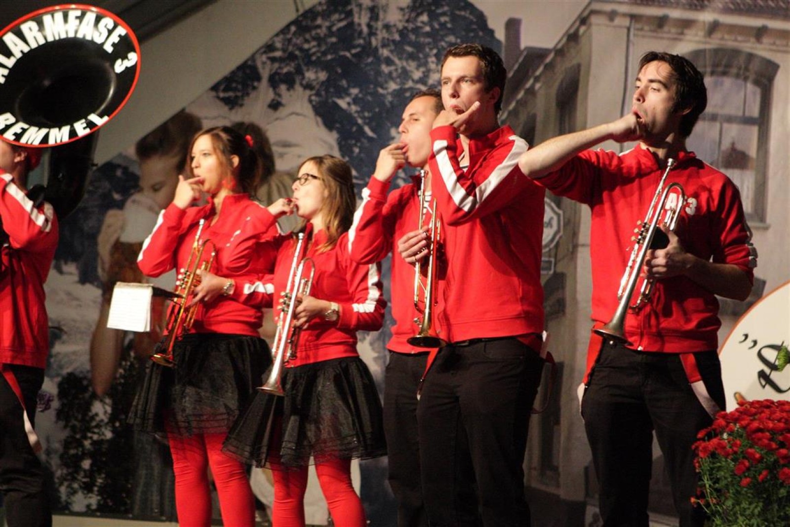 Alarmfase3 uit Bemmel had vrijwel een thuiswedstrijd, maar waren toch in hun rode uit-tenue aanwezig. En in het publiek doken steeds meer rode t-shirtjes op. De Alarmfase3 promotie draaide op volle toeren, net als de muzikanten die volle bak gingen op het podium.
