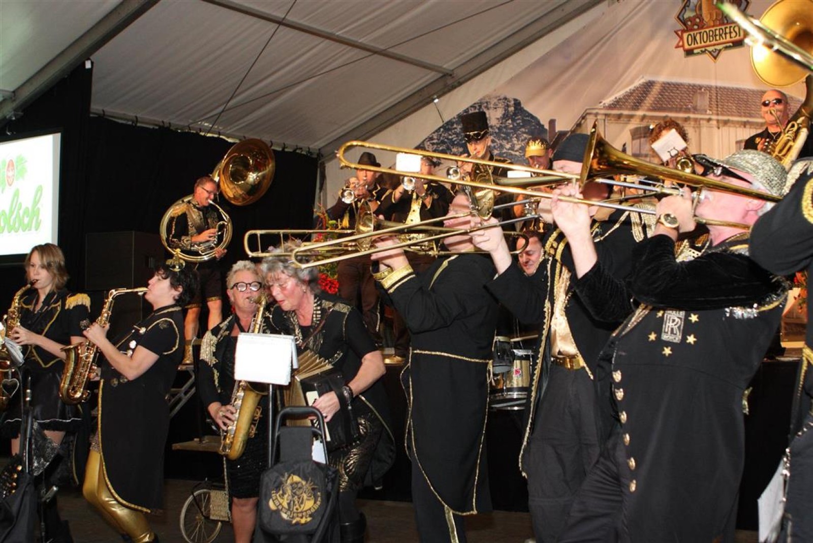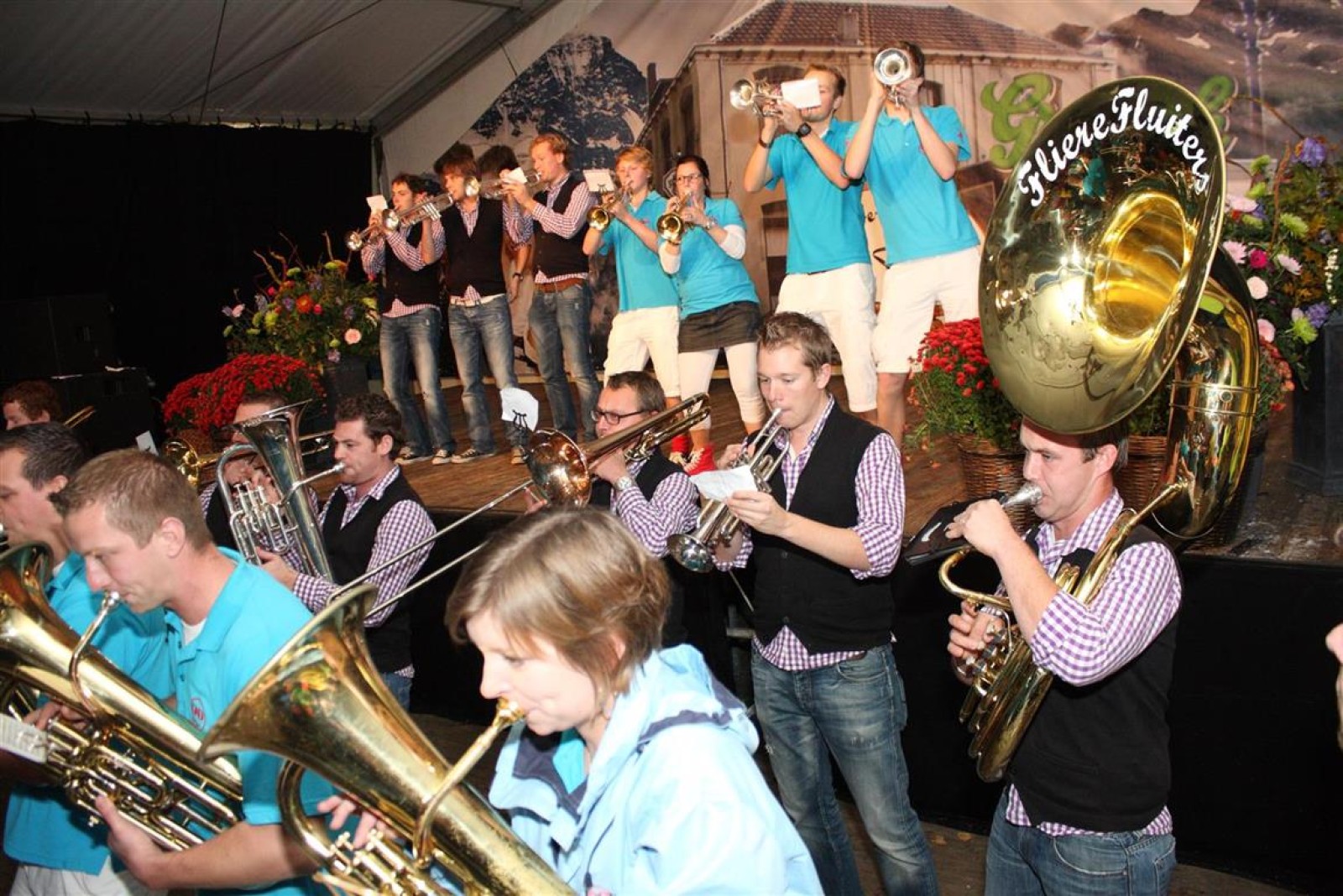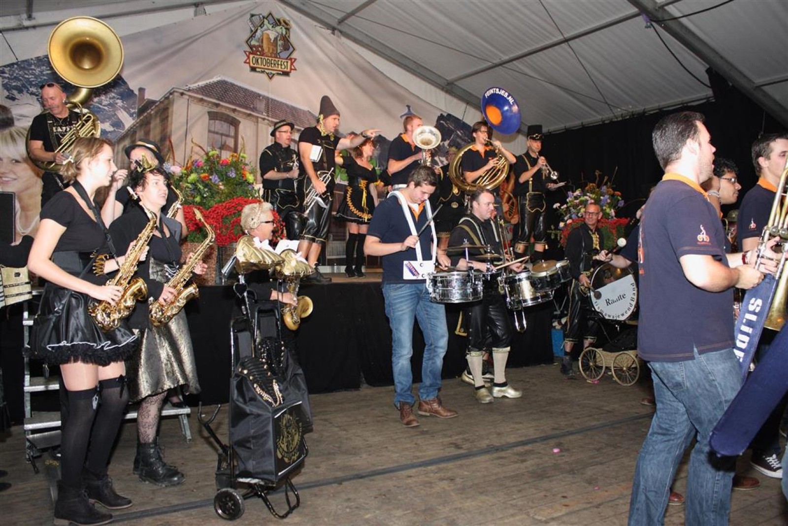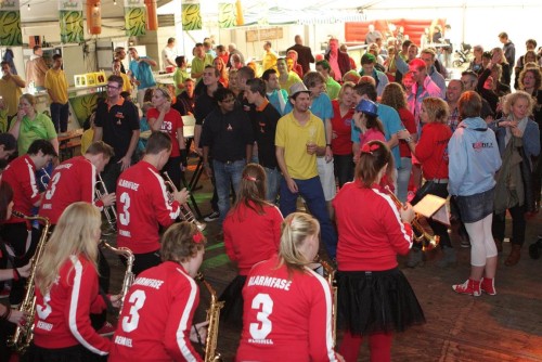 De Flierefluiters uit Sassenheim waren met het kleinste aantal muzikanten, maar speelden groots! Wat een klasbakken! Net als die enthousiastelingen uit Friesland trouwens. Ook zij (Menaemer Feintsjes) wisten het publiek en de andere orkesten menig meezinger te ontlokken.