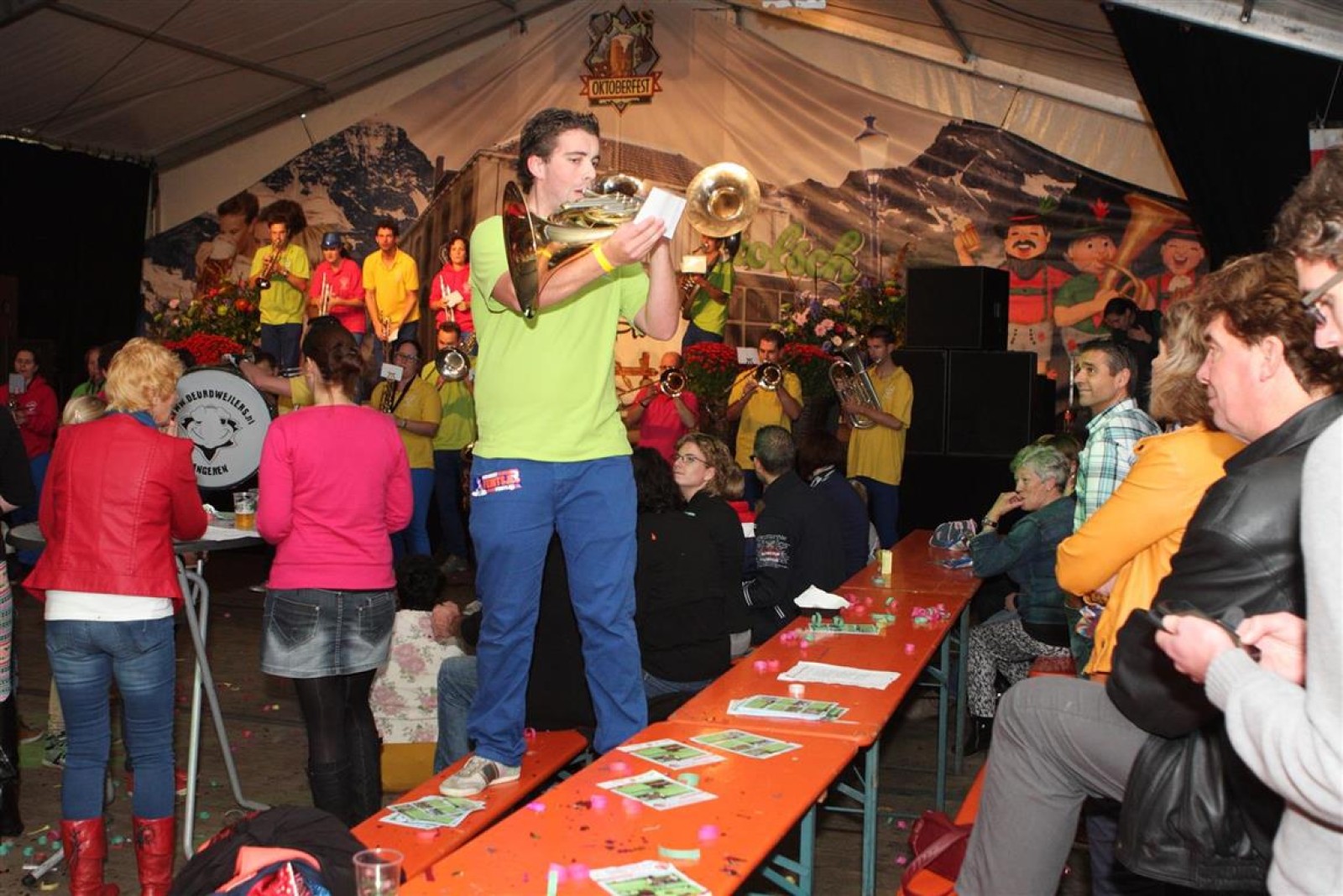 Toontje Ongeregeld was al lekker vroeg met hun bus gearriveerd in de toen nog lege feesttent waar de Deurdweilers nog aan het repeteren was. En deze helden togen ook als allerlaatste weer terug naar Winterswijk na twee lekkere setjes.