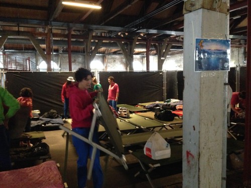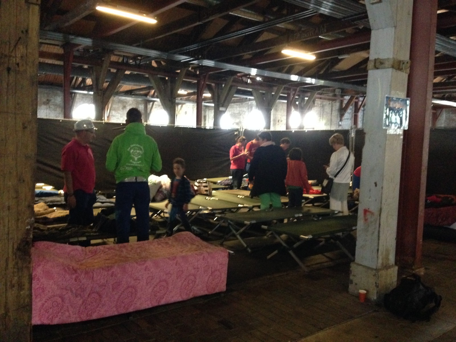 We begonnen de zaterdagochtend na 2,5 uur auto met een heerlijk bakkie koffie en onze eerste ontmoeting met Anja, de gezelligste begeleidster van Den Helder. Toen was het tijd om naar een enorme (inmiddels verlaten) scheepswerf te gaan waar 200 veldbedden stonden opgesteld. Het leek wel of er een rampscenario met evacuatieplan in werking was gesteld, maar de relaxte en vrolijke sfeer bewees het tegendeel.