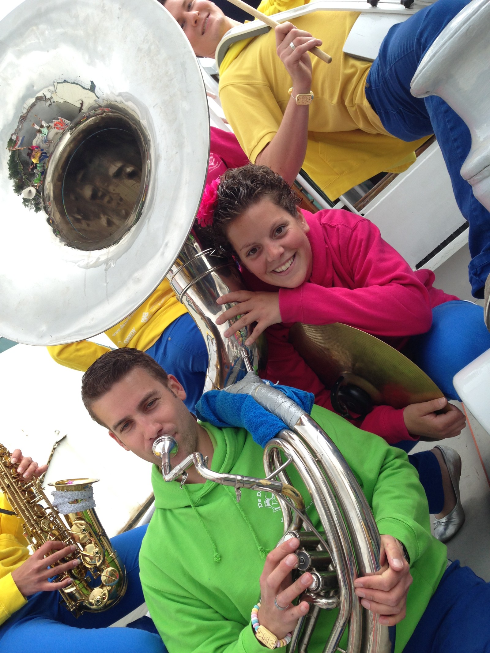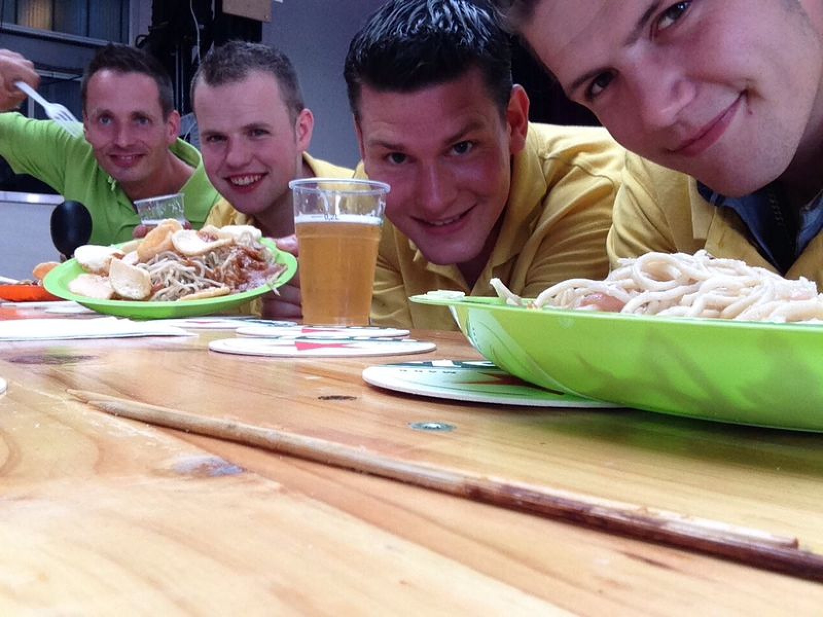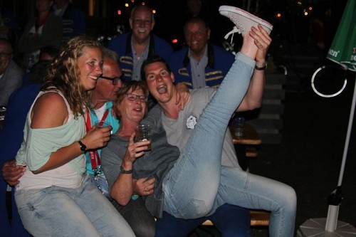 De eerste consumptiebonnen werden inmiddels goed besteed en het weer werd ook steeds beter. Heerlijk! En zo volgend er nog een paar leuke setjes muziek en een rondvaart op een reddingsboot. We sloten gezellig af samen met de Feintsjes met “De Waterkant”. Hier ontmoetten we ook een gave breakdancer die we ook direct contracteerden voor het avondprogramma. Want na de nasi-maaltijd stond er nog een wedstrijd op het programma.