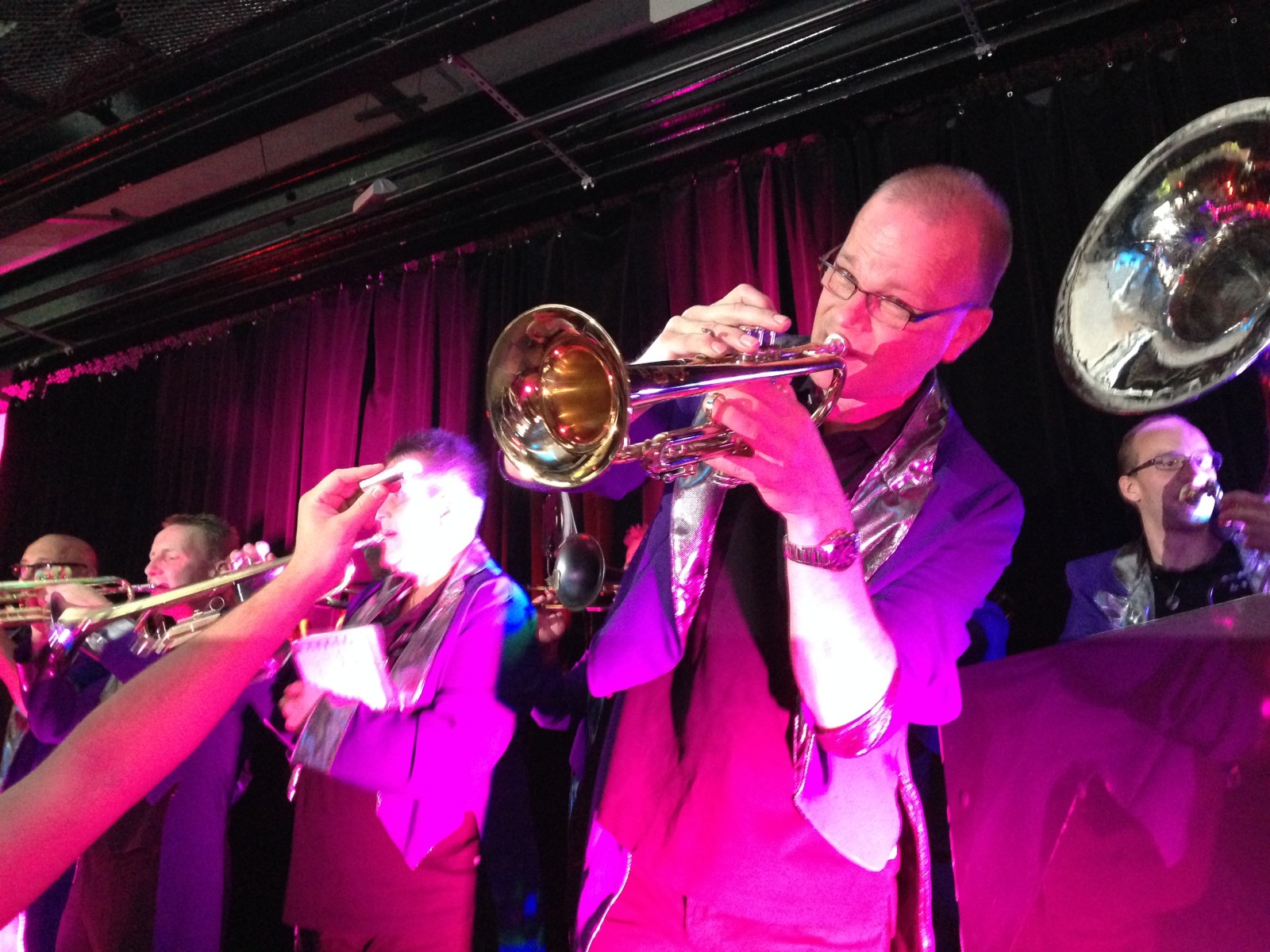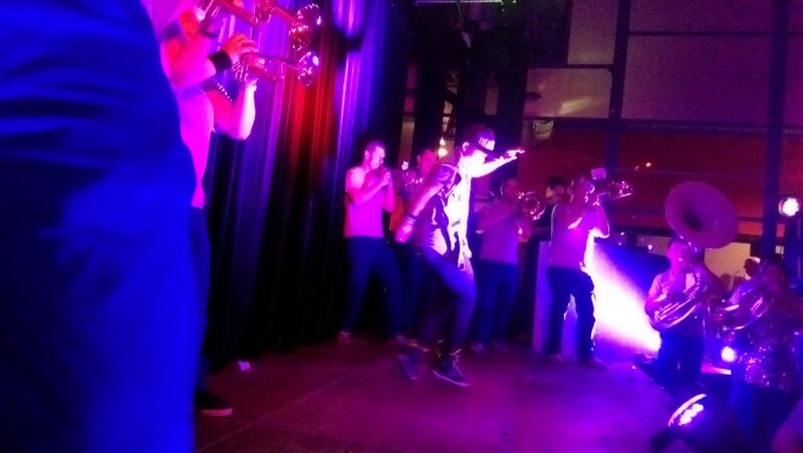 Ons optreden stond pas na vele biertjes gepland… maar na een korte inblaassessie op de parkeerplaats was iedereen toch weer even bij de les om een goed optreden weg te geven. Onze breakdancer stond al vooraan op het podium en los konden we! Gaaf om te zien dat zelfs de mensen die op de tafels achterin zaten ineens moeite deden om naar het podium te kijken en eigenlijk liep het best lekker in deze verre van optimale akoestische zaal.