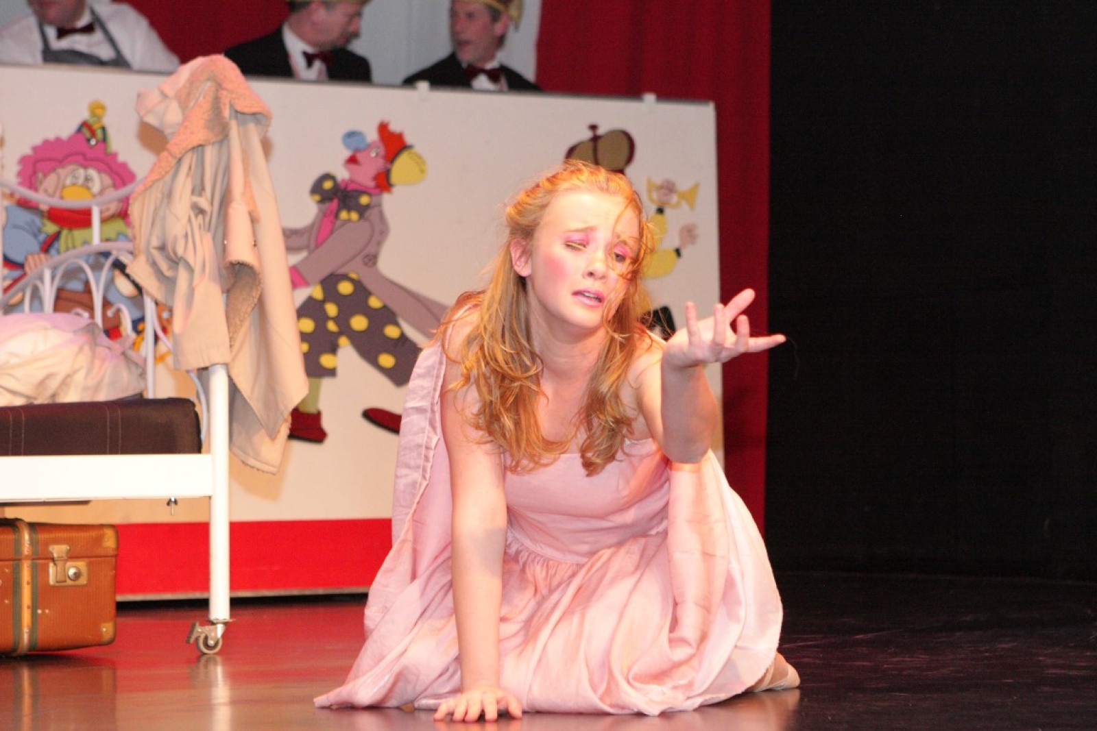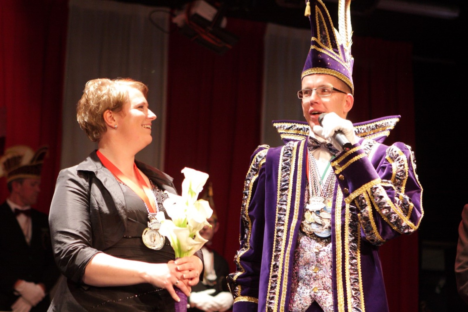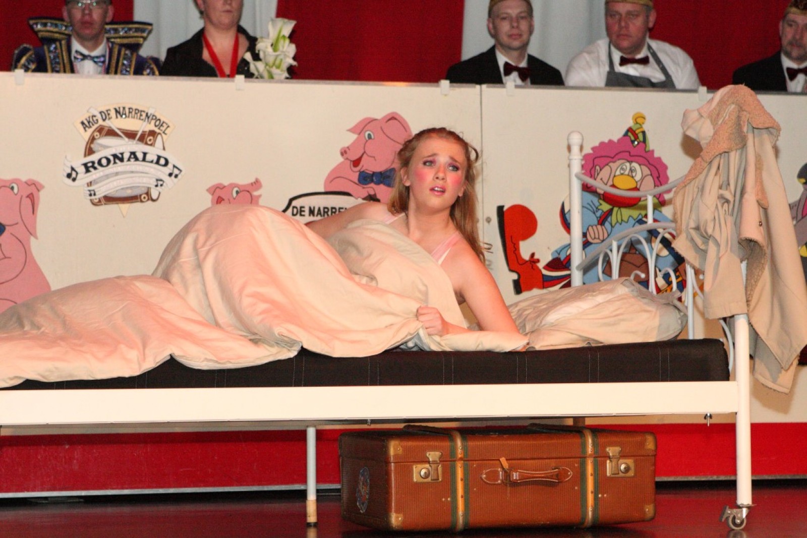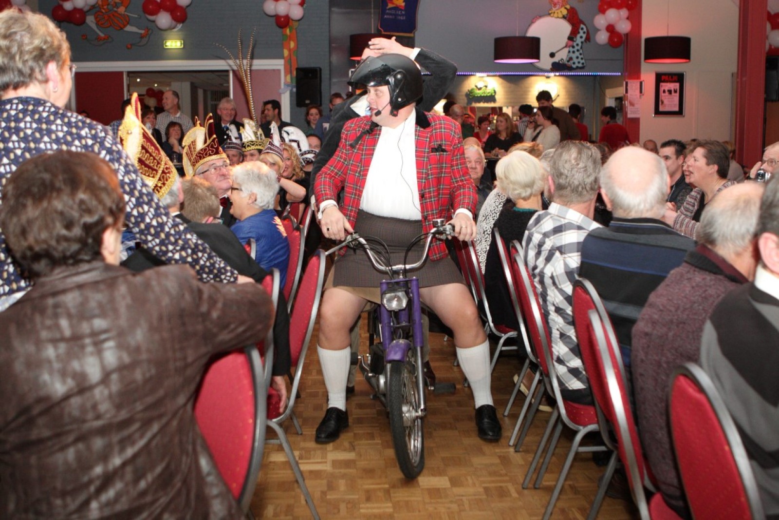 Het huussens mins kwam deze avond in Angeren een geweldige buut doen voor het prinsenpaar. Zij is uniek in haar buut, en kreeg het publiek aan de lachende hand.