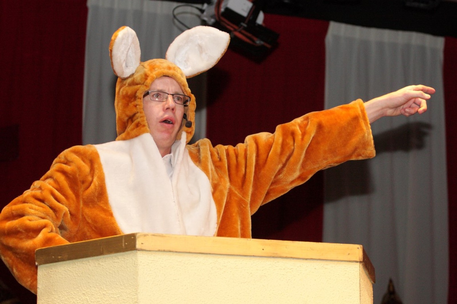 Hendrikus de zandhoas was na een jaar van prinselijke afwezigheid dit jaar weer aanwezig. Hij had zijn prinsenpak even omgeruild om het publiek mee te nemen in een rondje door Angeren en al wat hij daar hoort en ziet.