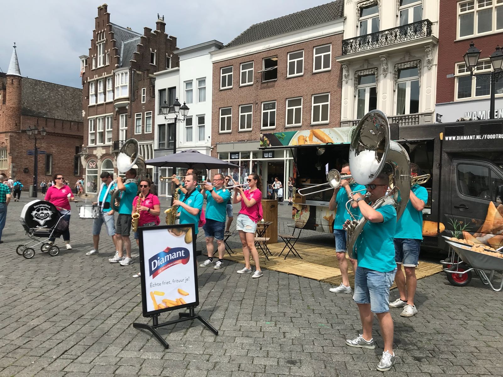 Hier werd menig terrasje voorzien van onze muzikale klanken en ook de 7000 lopers van de Vestingloop werden verwelkomd met Deurdweilmuziek.
