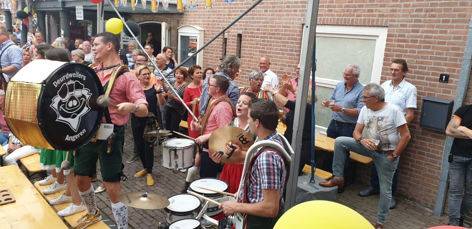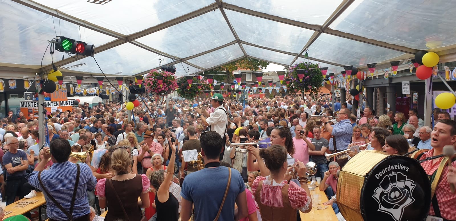 Het is de vijftiende editie van de Deutsche Mittag, maar de eerste voor De Deurdweilers. Het personeel van De Buitenpoort heeft zich in Duitse klederdracht gehuld. De feesttent is versierd met bloemen, Duitse vlaggetjes en trio’s van ballonnen in de kleuren van de Duitse vlag. Bij het karretje waar je broodjes worst met Sauerkraut kunt kopen staan De Deurdweilers te popelen om het podium te betreden.