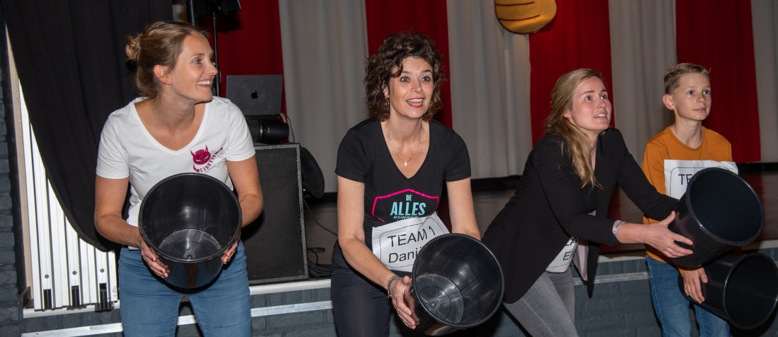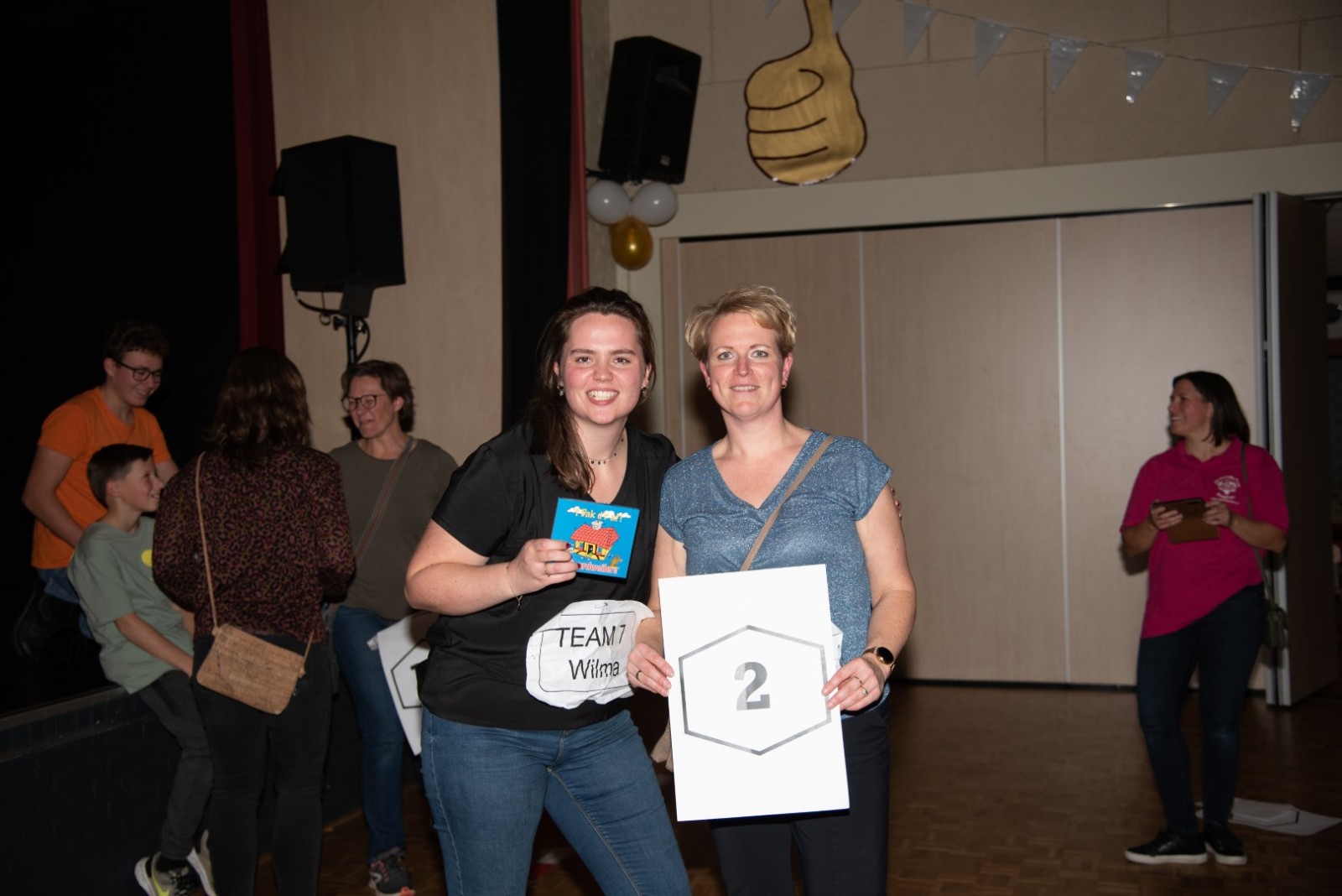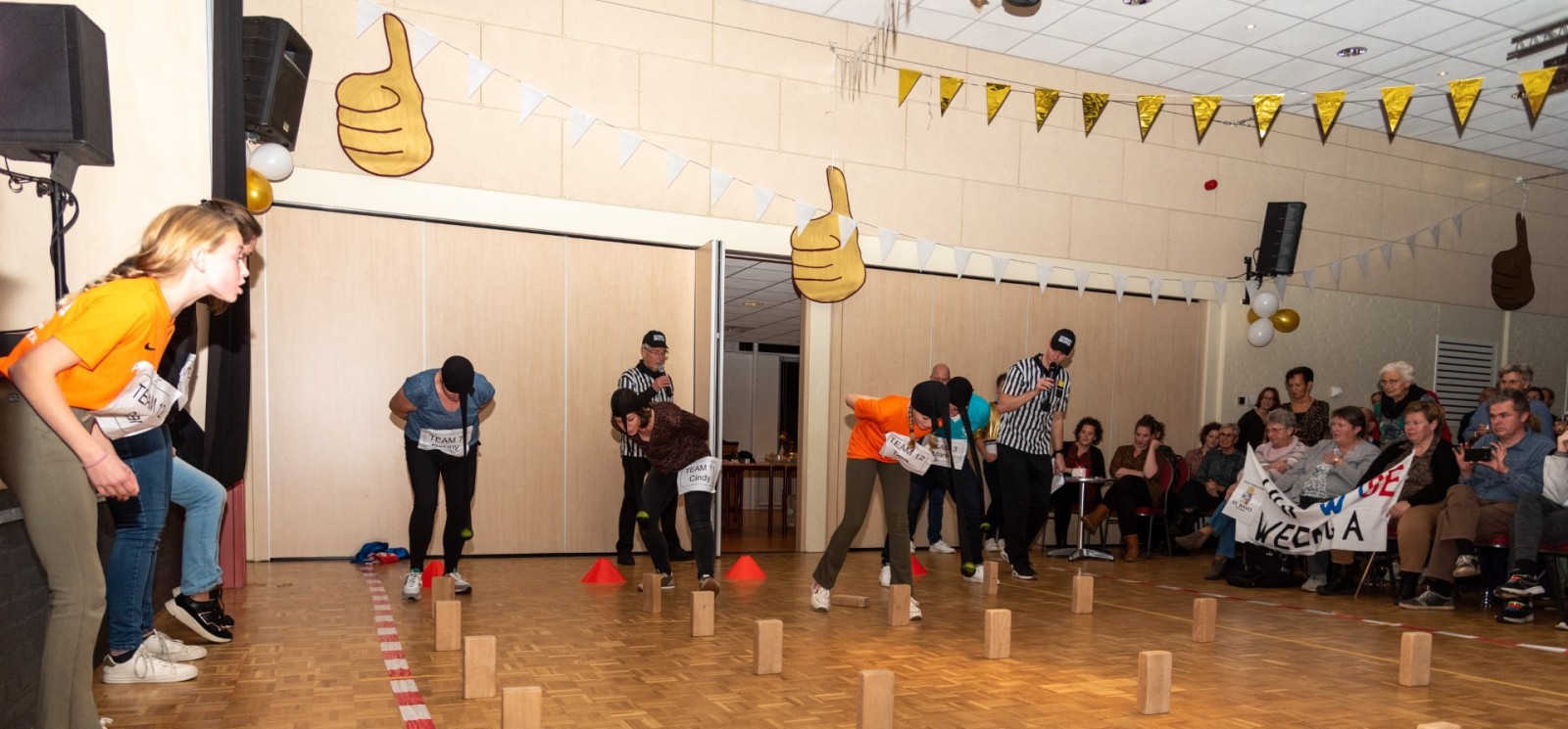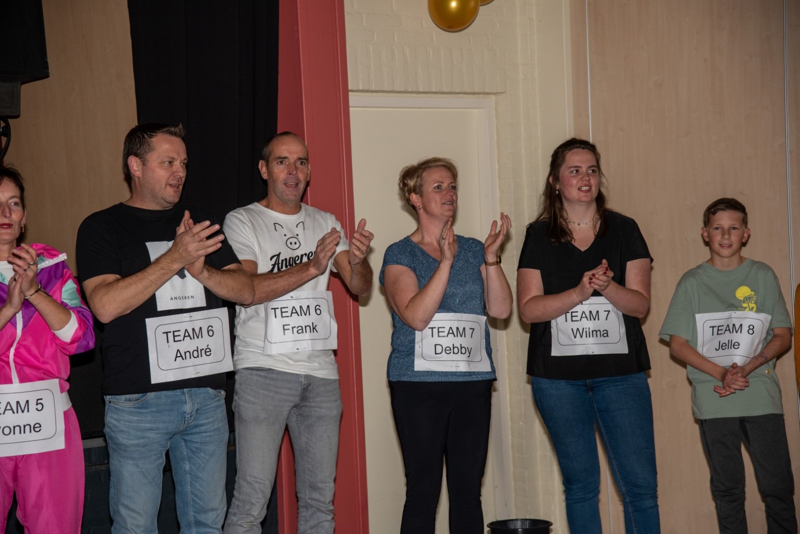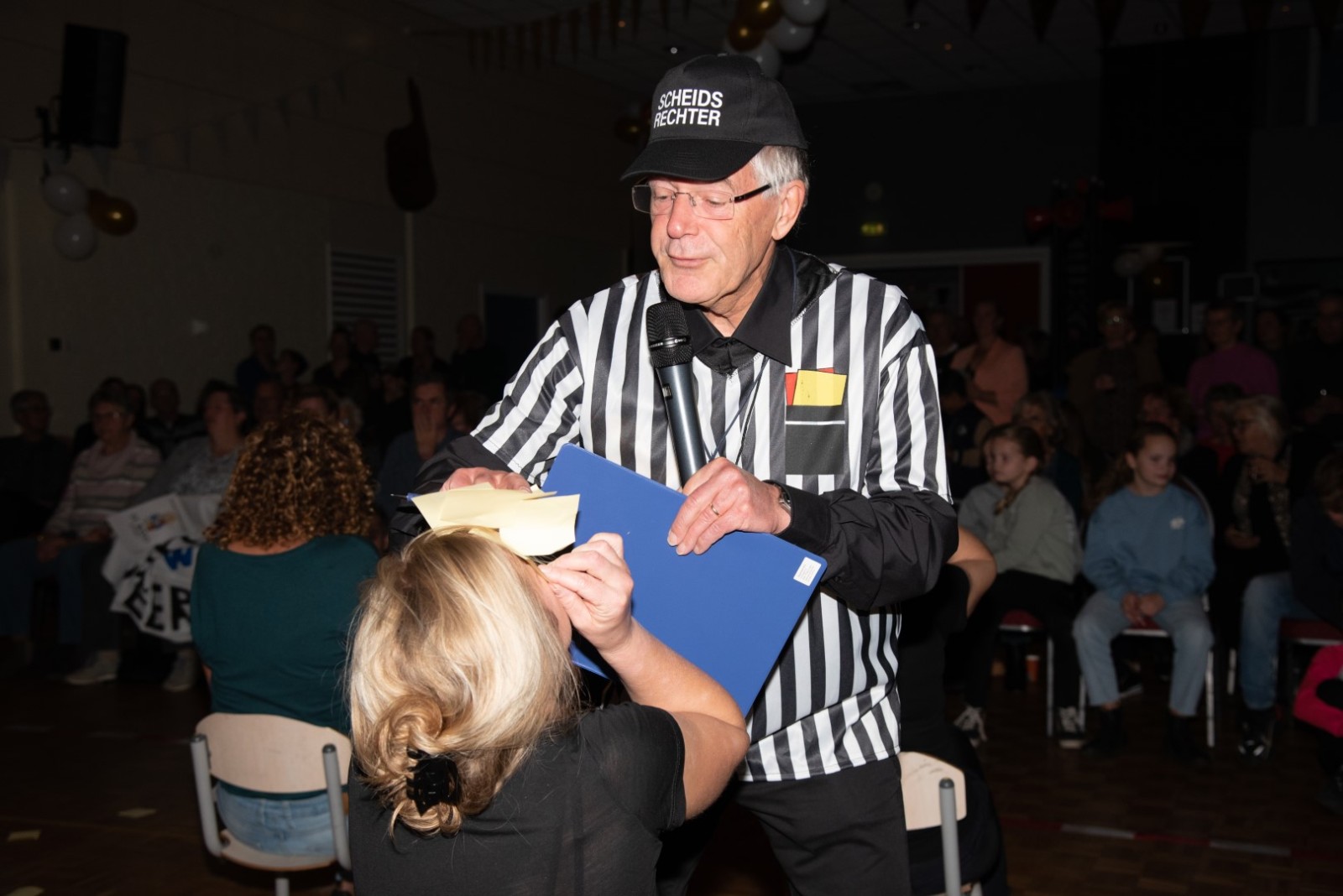 Deze keer stond de avond in het teken van “de Alleskunner” van het gelijknamige TV programma. 30 deelnemers speelde in duo’s korte grappige uiteenlopende spelletjes tegen elkaar. Waaronder papieren vliegtuigjes in een emmer gooien, zoveel mogelijk post-its op je gezicht plekken, een opgeblazen luchtbed leeg laten lopen en opvouwen zodat hij in een klein doosje past en nog veel meer gekke hilarische spellen. Na ieder spel vielen een paar teams af. Het overgebleven team van de avond mocht in een zinderende finale tegen elkaar strijden om de titel “Alleskunner van Angeren”. Ze moesten van de ene kant naar de andere kant van de zaal zien te komen geheel liggend in een slaapzak. Cindy van team “Dianne en Cindy” kwam als eerste over de streep en ging er vandoor met de prachtige “Alleskunner-bokaal”.