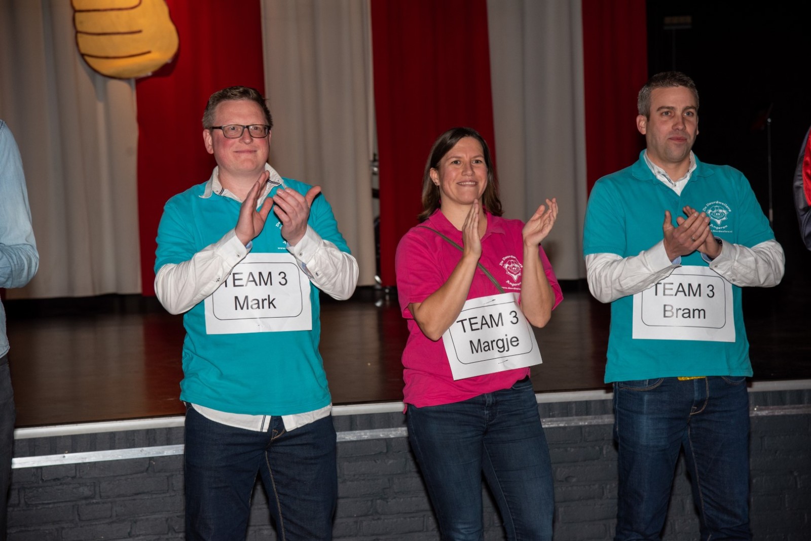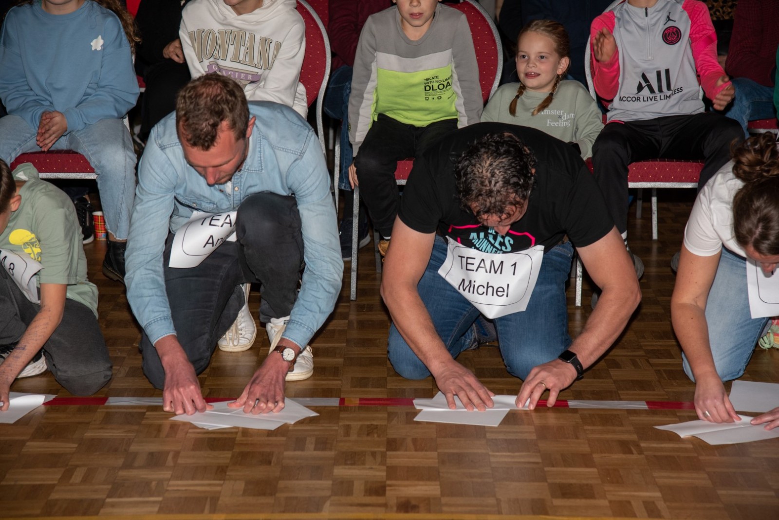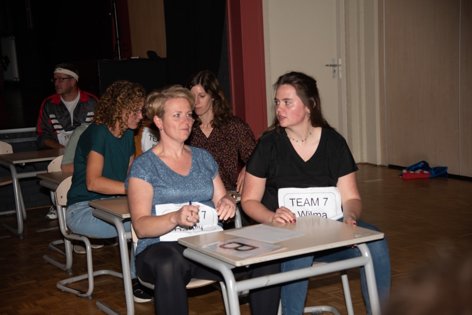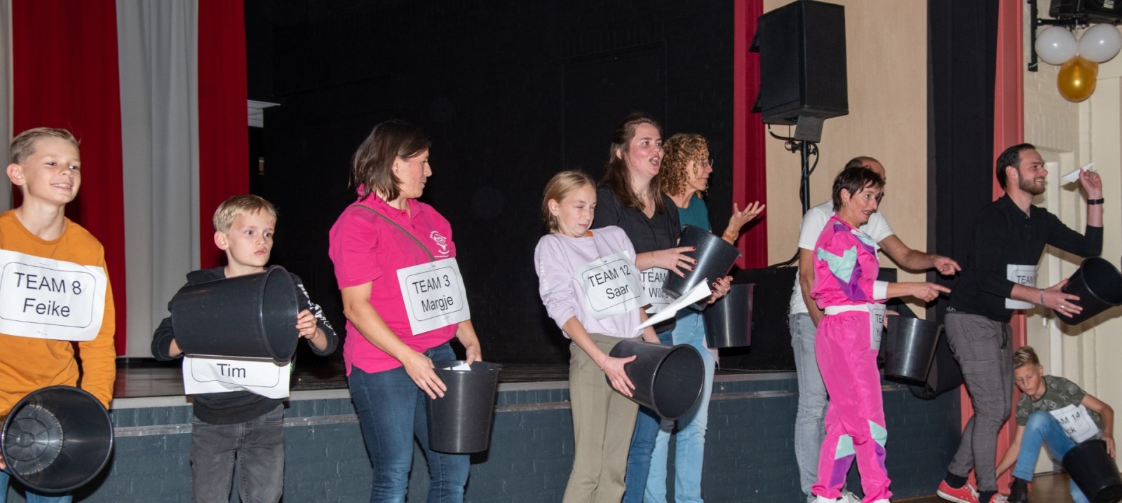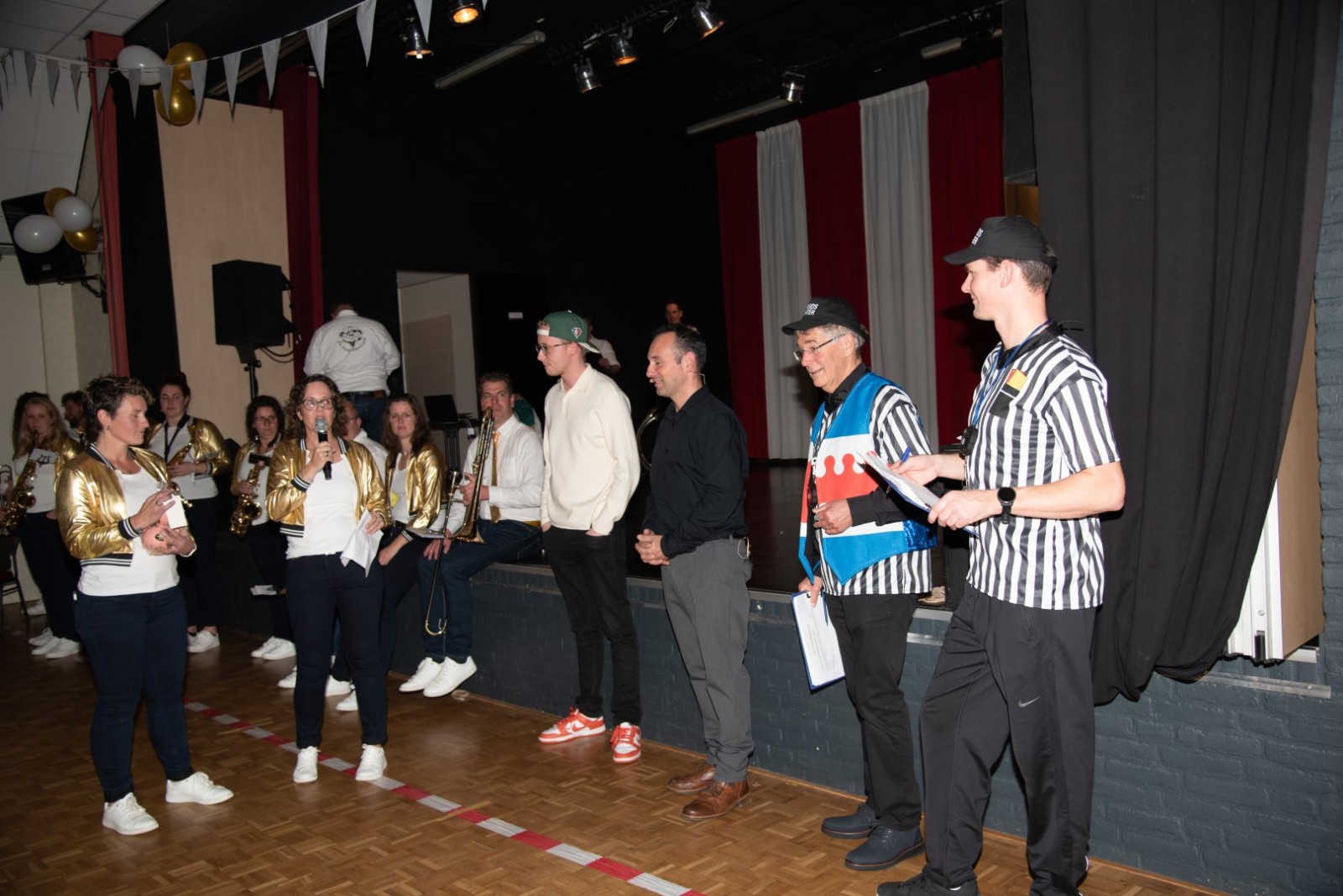 Deze keer stond de avond in het teken van “de Alleskunner” van het gelijknamige TV programma. 30 deelnemers speelde in duo’s korte grappige uiteenlopende spelletjes tegen elkaar. Waaronder papieren vliegtuigjes in een emmer gooien, zoveel mogelijk post-its op je gezicht plekken, een opgeblazen luchtbed leeg laten lopen en opvouwen zodat hij in een klein doosje past en nog veel meer gekke hilarische spellen. Na ieder spel vielen een paar teams af. Het overgebleven team van de avond mocht in een zinderende finale tegen elkaar strijden om de titel “Alleskunner van Angeren”. Ze moesten van de ene kant naar de andere kant van de zaal zien te komen geheel liggend in een slaapzak. Cindy van team “Dianne en Cindy” kwam als eerste over de streep en ging er vandoor met de prachtige “Alleskunner-bokaal”.