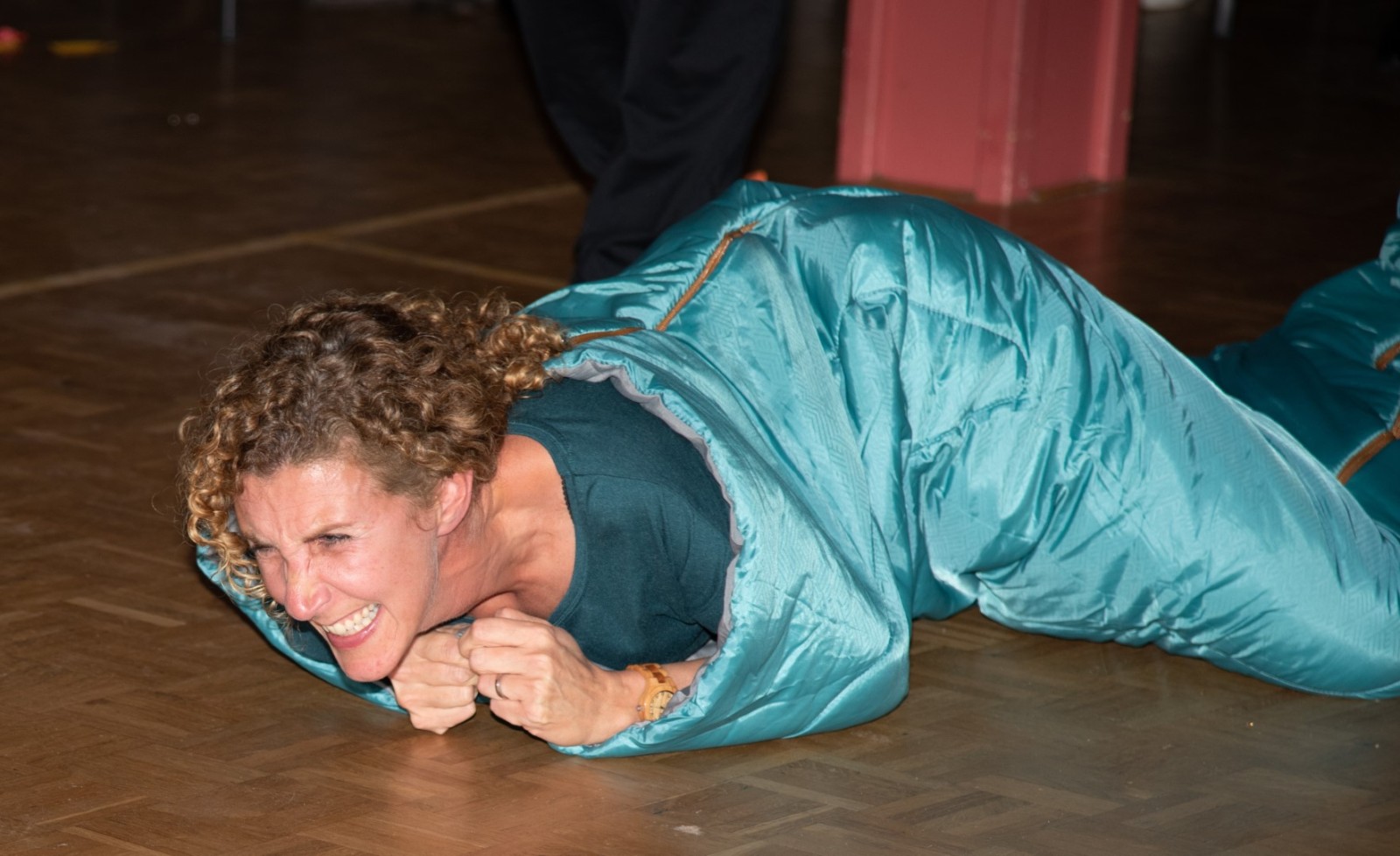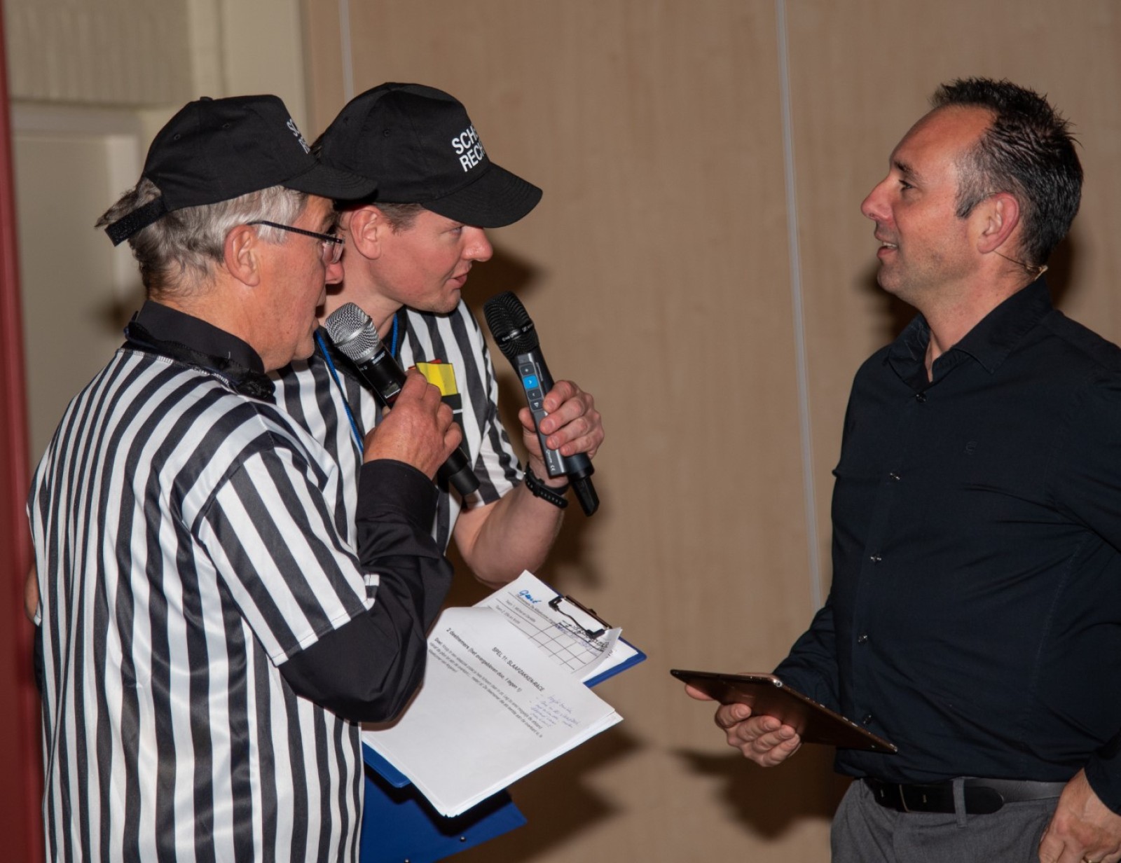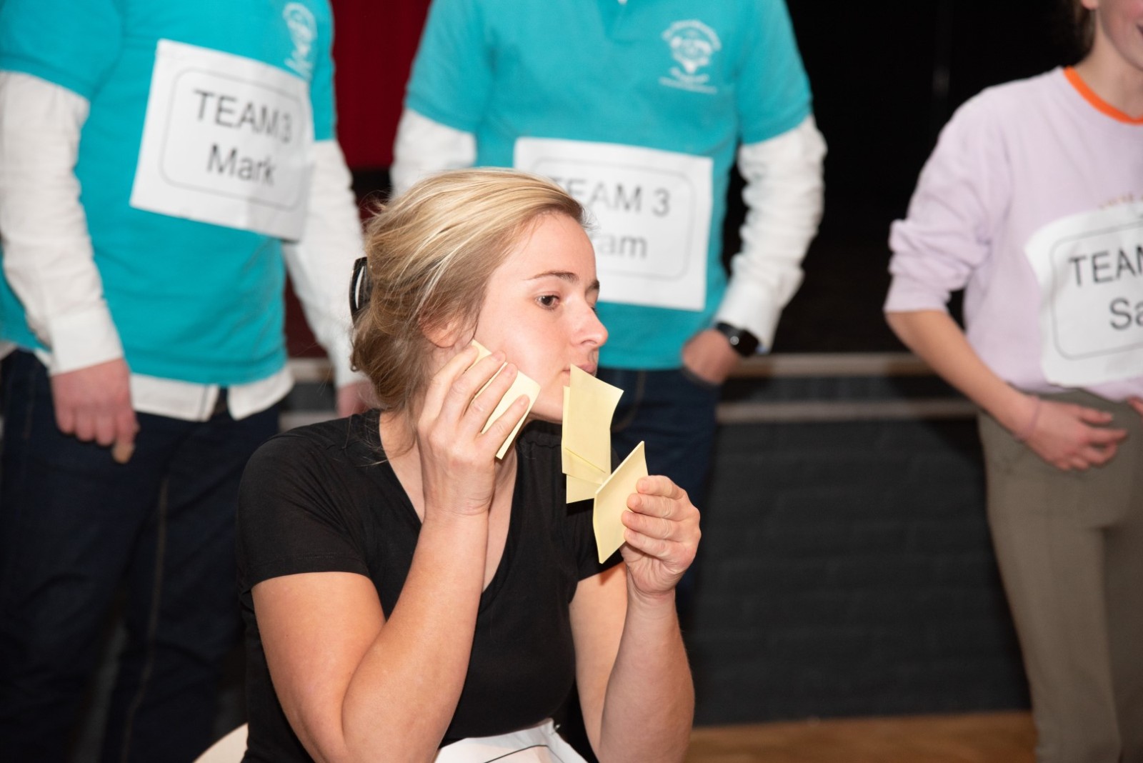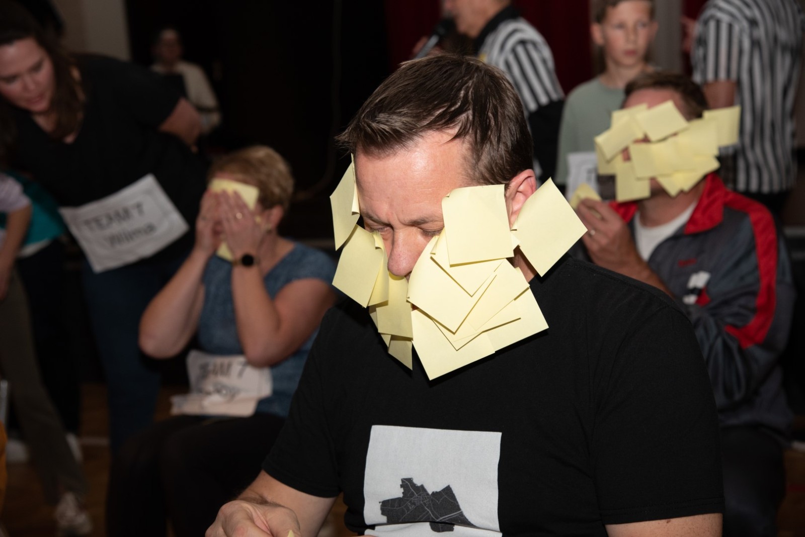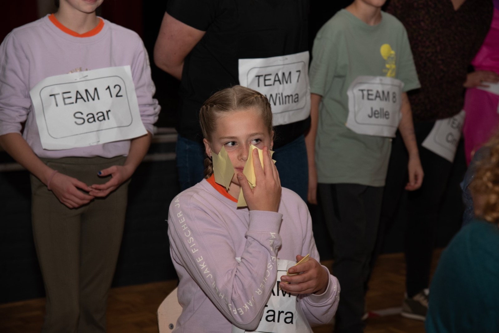 Deze keer stond de avond in het teken van “de Alleskunner” van het gelijknamige TV programma. 30 deelnemers speelde in duo’s korte grappige uiteenlopende spelletjes tegen elkaar. Waaronder papieren vliegtuigjes in een emmer gooien, zoveel mogelijk post-its op je gezicht plekken, een opgeblazen luchtbed leeg laten lopen en opvouwen zodat hij in een klein doosje past en nog veel meer gekke hilarische spellen. Na ieder spel vielen een paar teams af. Het overgebleven team van de avond mocht in een zinderende finale tegen elkaar strijden om de titel “Alleskunner van Angeren”. Ze moesten van de ene kant naar de andere kant van de zaal zien te komen geheel liggend in een slaapzak. Cindy van team “Dianne en Cindy” kwam als eerste over de streep en ging er vandoor met de prachtige “Alleskunner-bokaal”.