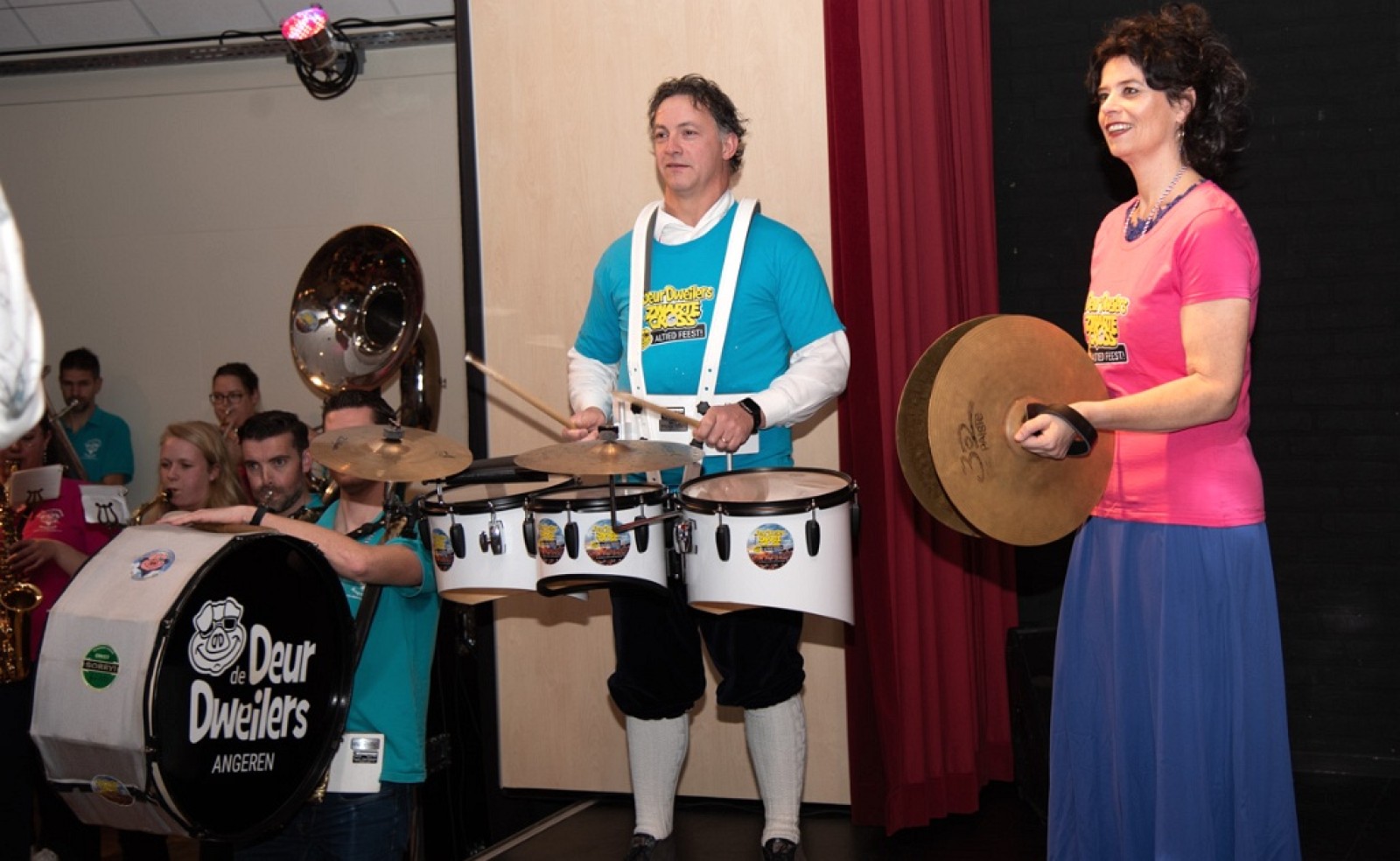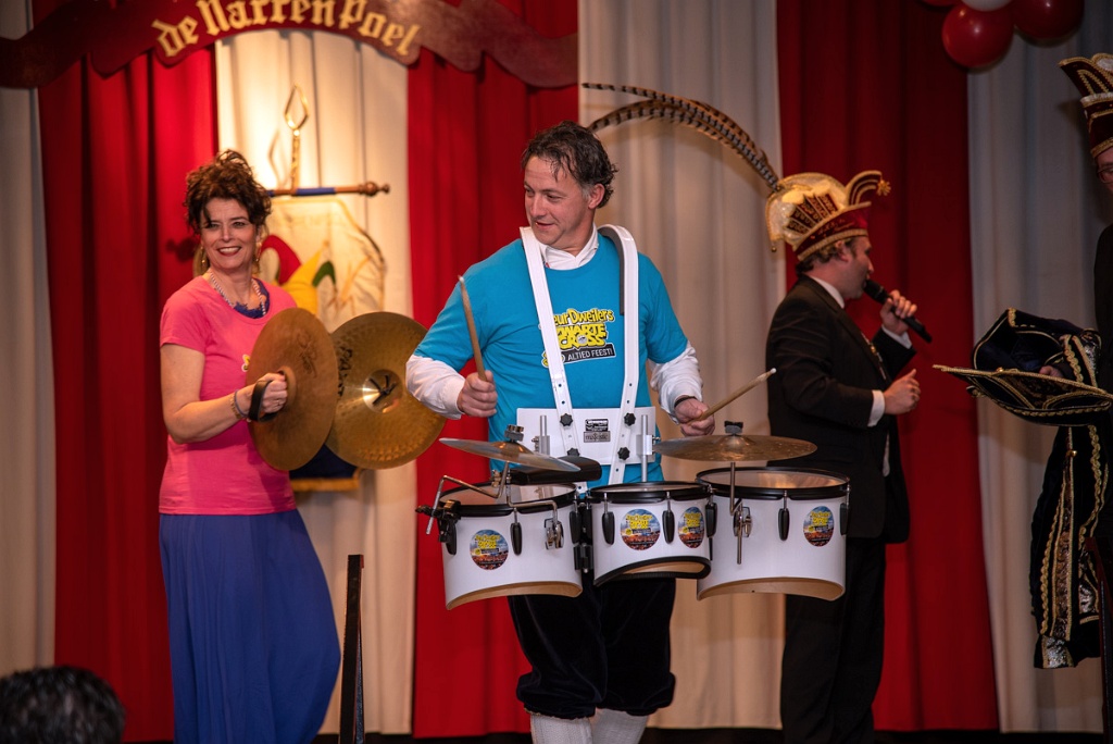 Daarna kregen ze bekkens en trommels overhandigd om samen nog even Deurdonderen te spelen. Hierna werd het echt tijd om plaats te maken voor een nieuw prinsenpaar.