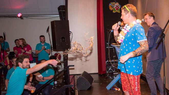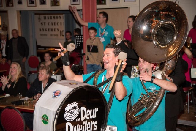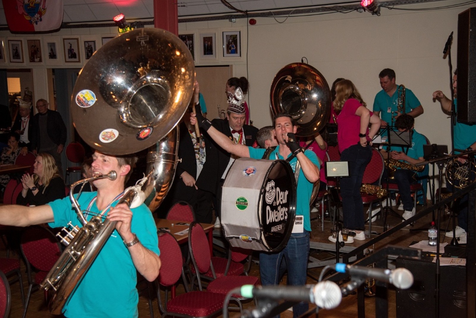 Dat was weer een gezellige pronkzitting afgelopen zaterdag in het Angerense Dorpshuis. Uiteraard waren wij als dweilorkest weer van de partij om de optredens vooral naar en van het podium te begeleiden.