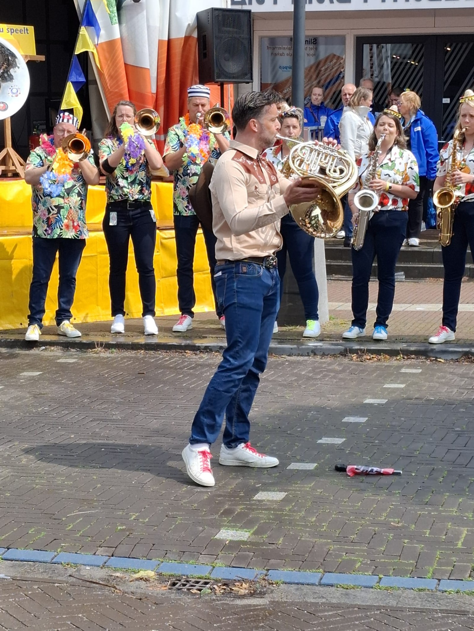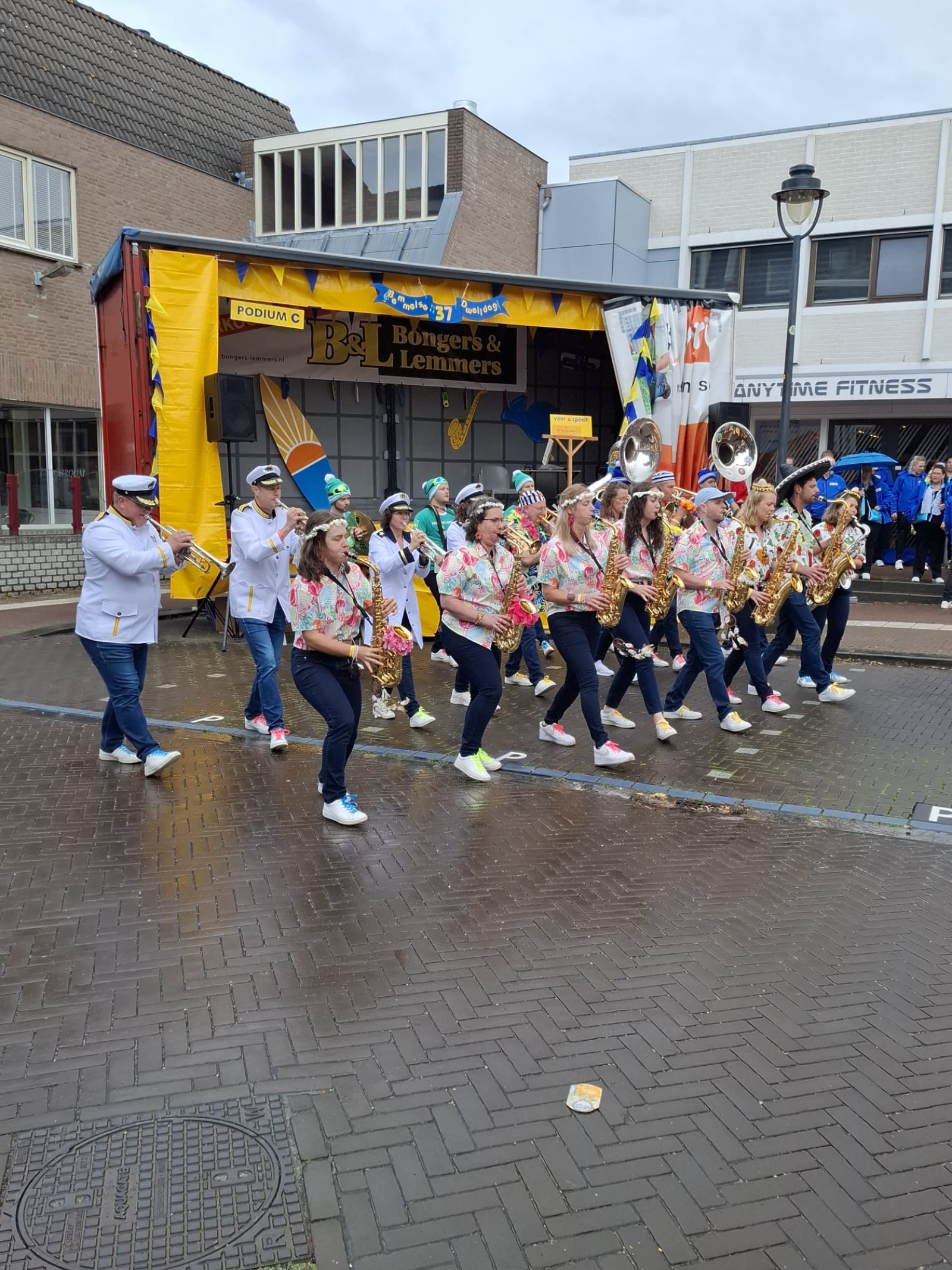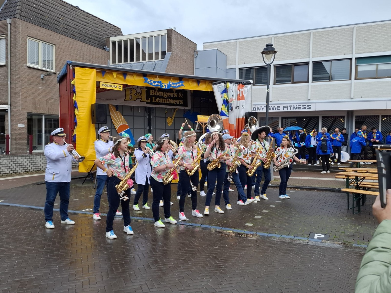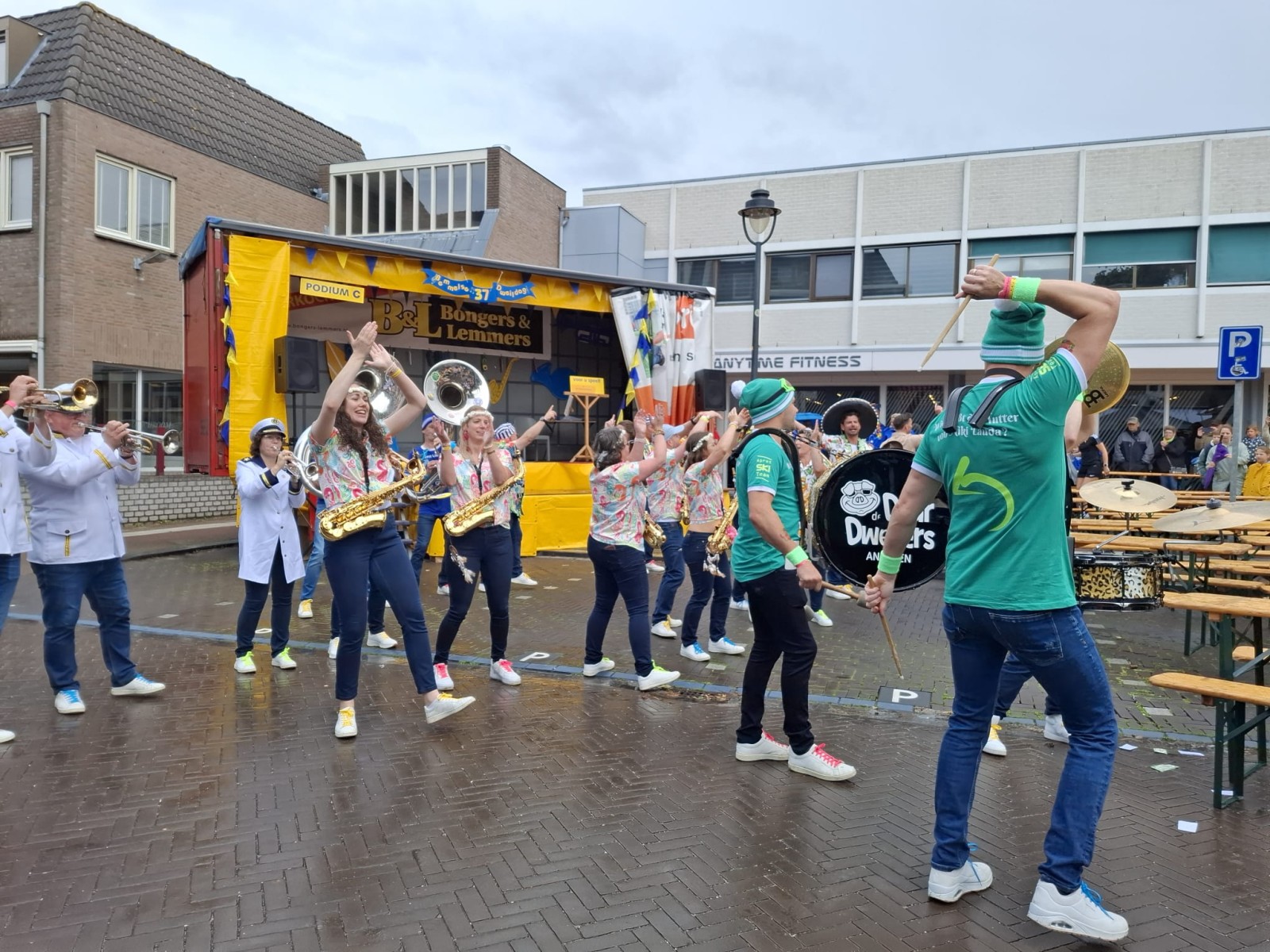 Het leek wel of de organisatie met dit “tropische dweilfiesta” thema de weergoden gejinxt had, want het hele weekend viel er aardig wat regen. Wat hadden wij geluk dat we 4x droog konden spelen. Dan zag je dat de Bemmelse straten direct weer vol liepen en we toch weer voor veel publiek konden spelen. Heerlijk!