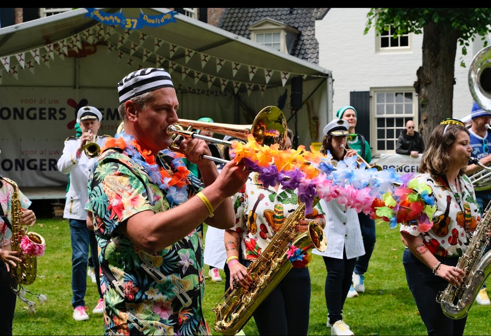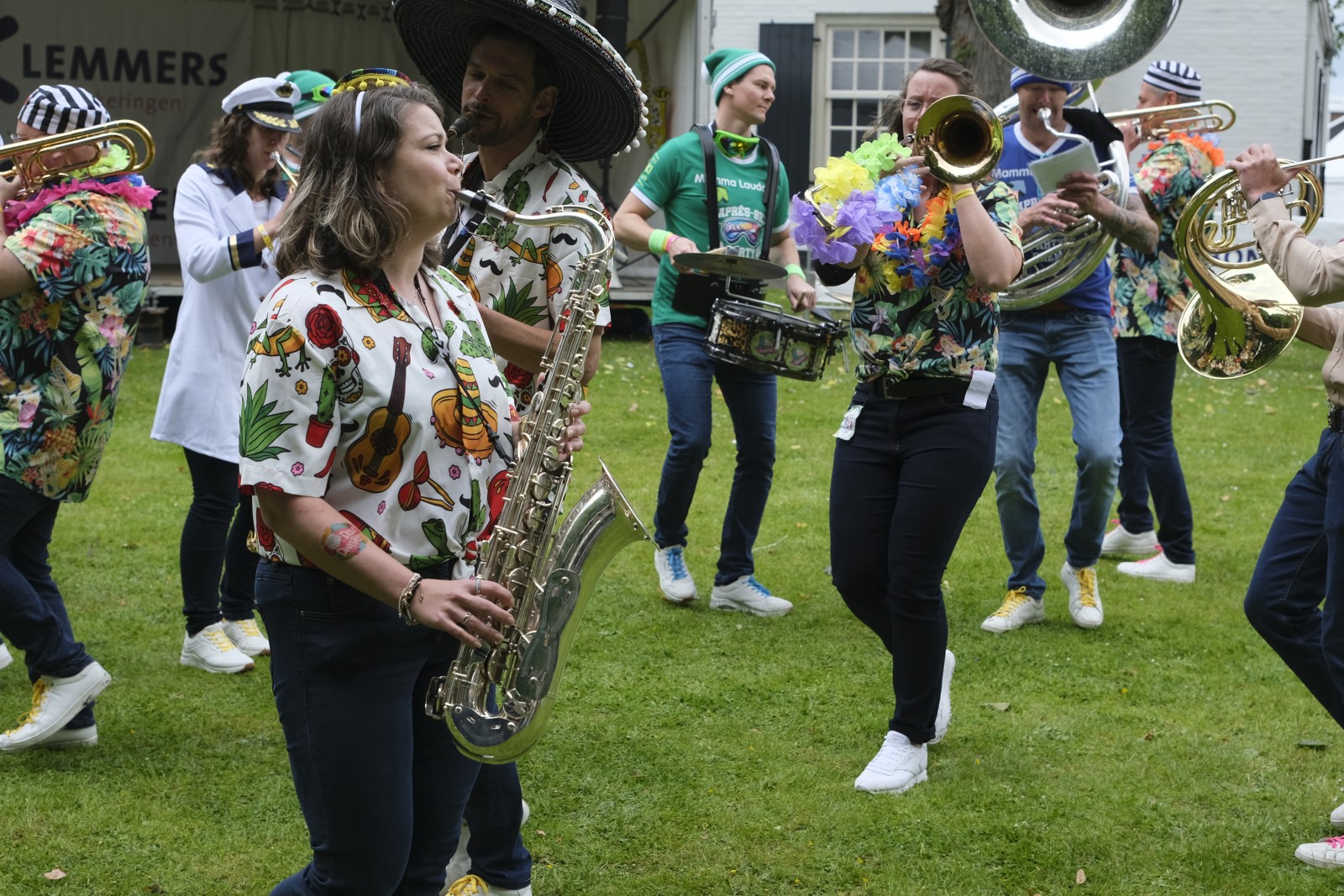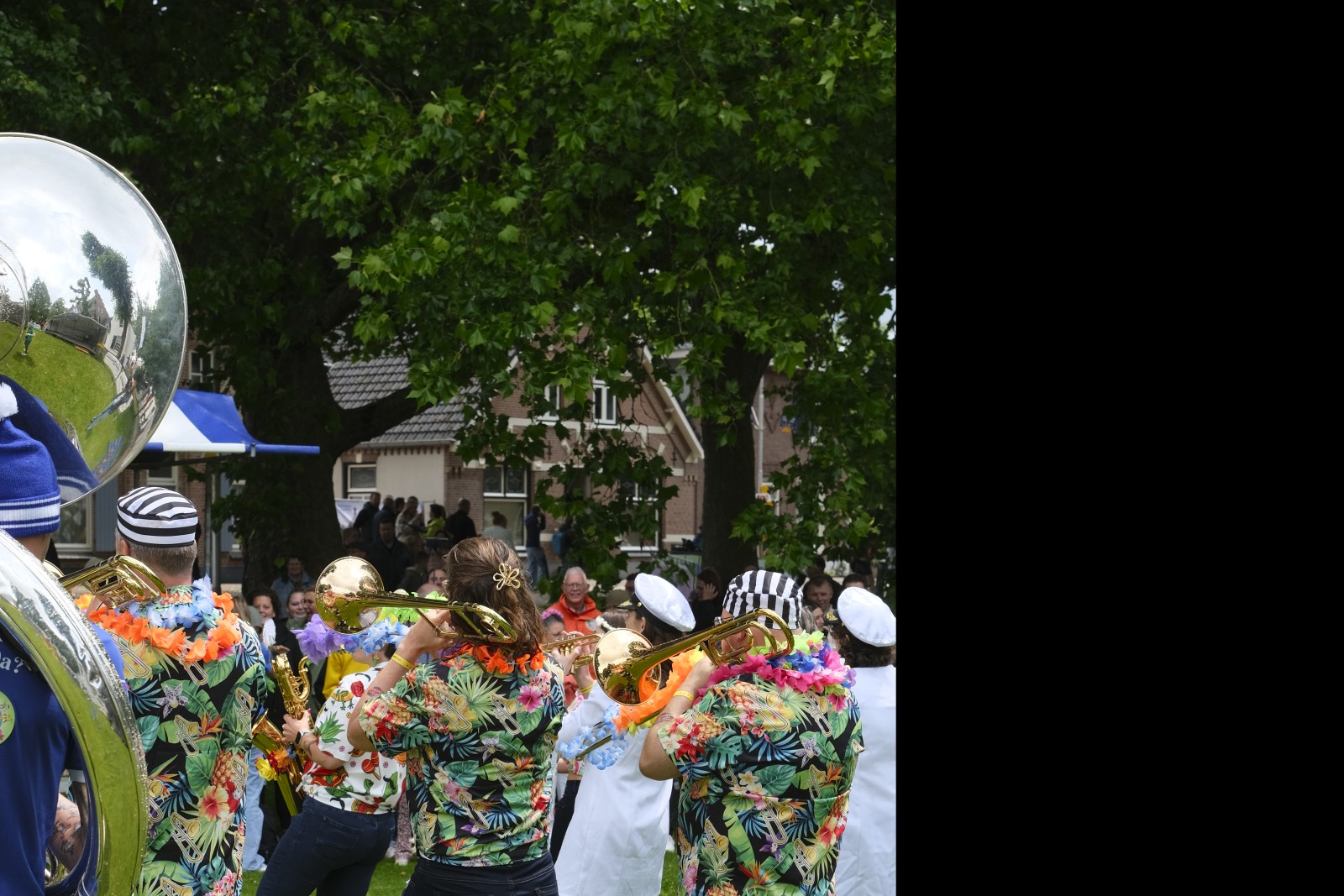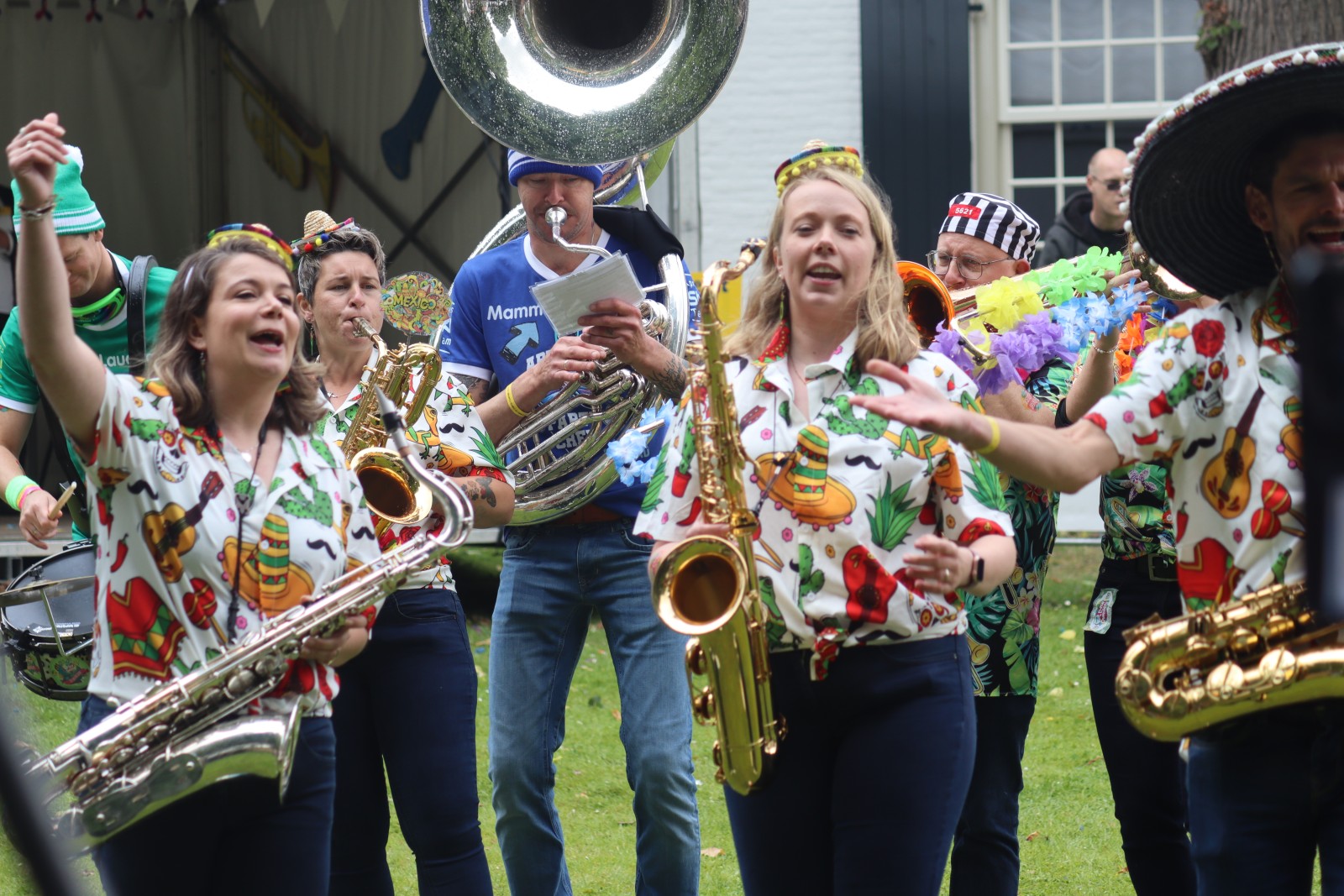 Het leek wel of de organisatie met dit “tropische dweilfiesta” thema de weergoden gejinxt had, want het hele weekend viel er aardig wat regen. Wat hadden wij geluk dat we 4x droog konden spelen. Dan zag je dat de Bemmelse straten direct weer vol liepen en we toch weer voor veel publiek konden spelen. Heerlijk!