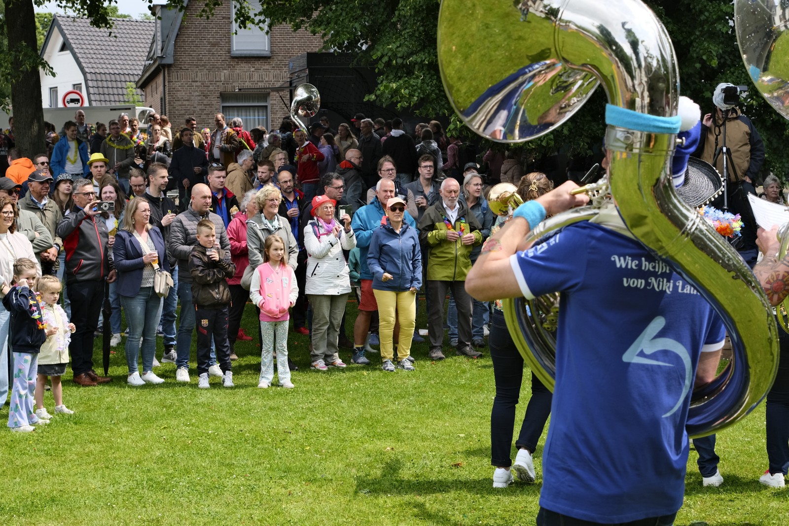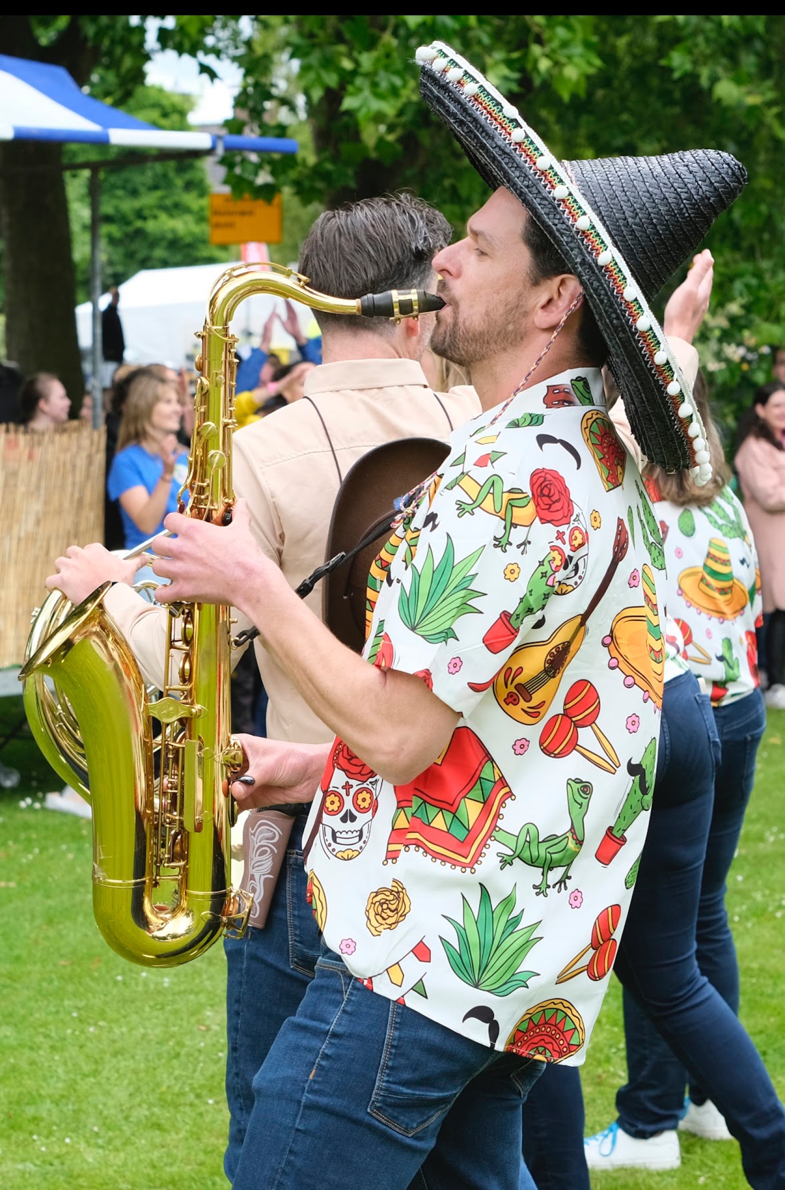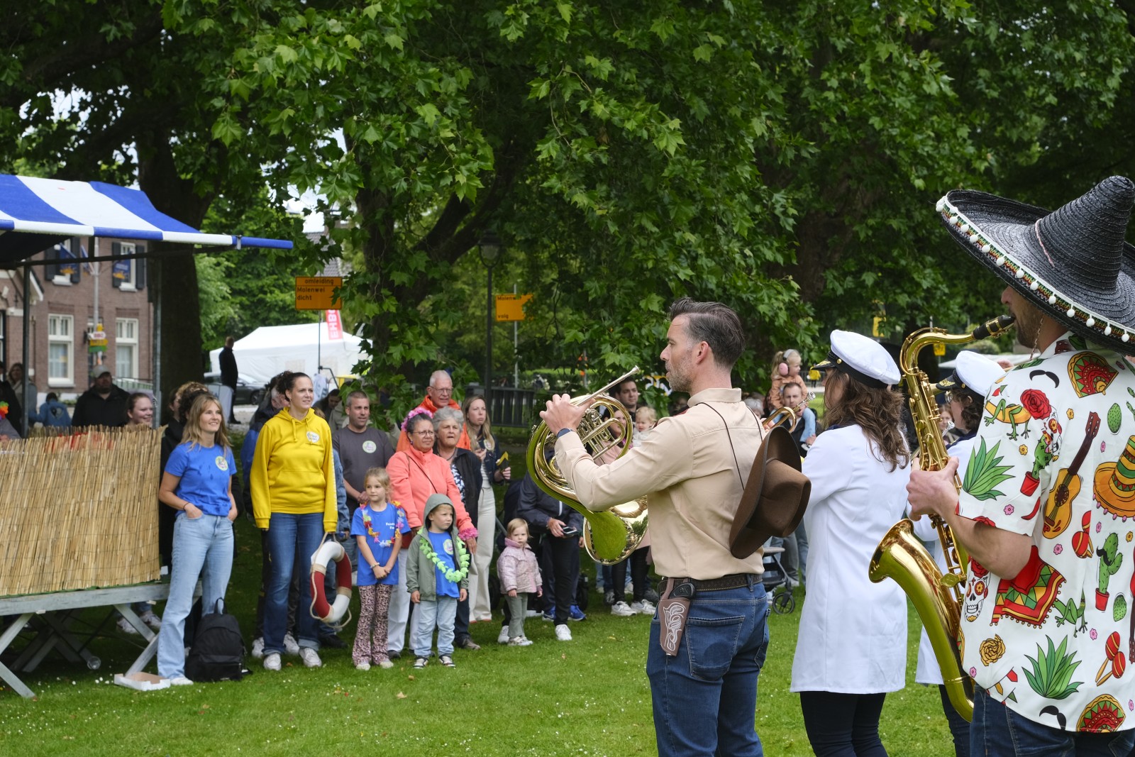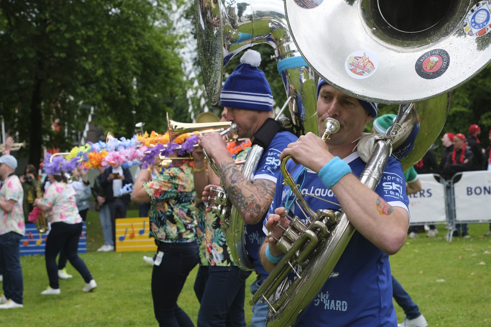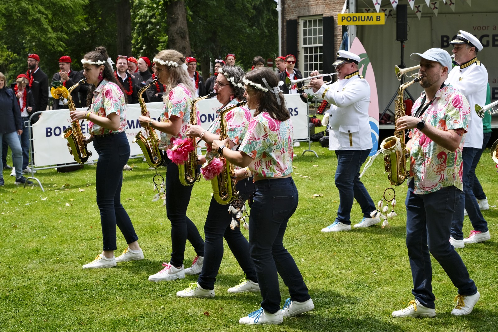 Het leek wel of de organisatie met dit “tropische dweilfiesta” thema de weergoden gejinxt had, want het hele weekend viel er aardig wat regen. Wat hadden wij geluk dat we 4x droog konden spelen. Dan zag je dat de Bemmelse straten direct weer vol liepen en we toch weer voor veel publiek konden spelen. Heerlijk!
