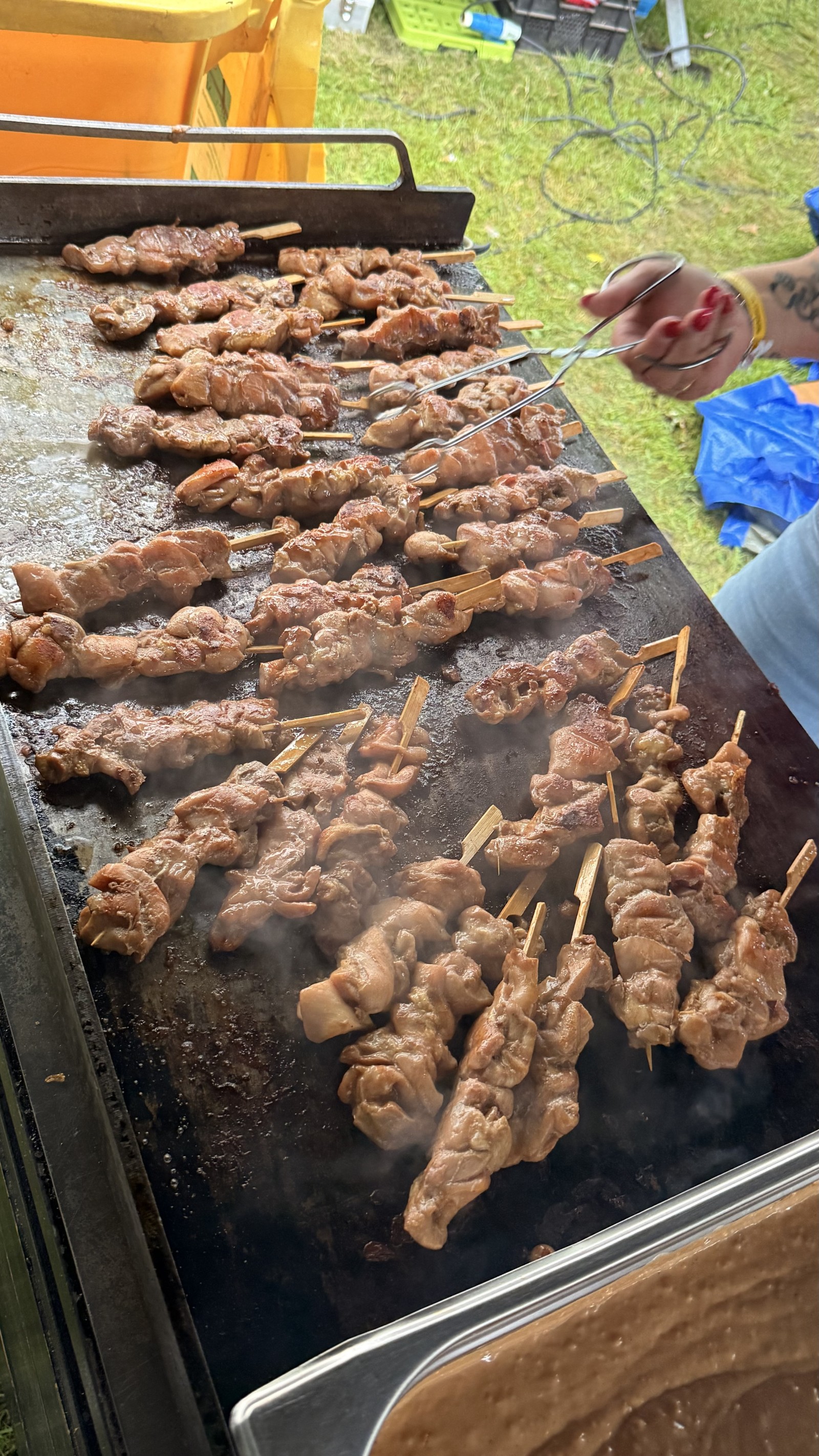 Met nog een optreden te gaan bij het hoofdpodium verscheen er weer een donkere lucht aan de hemel. Snel schuilen onder een partytent bij de bar want daar regende het weer even. Gelukkig voor ons was het programma een minuut of 8 uitgelopen want om 16:38 konden wij helemaal droog ons laatste setje spelen. En alsof het ons gegund was… na onze laatste slotnoot was daar dan echt de allerlaatste bui van de dag. Wat een mazzel…