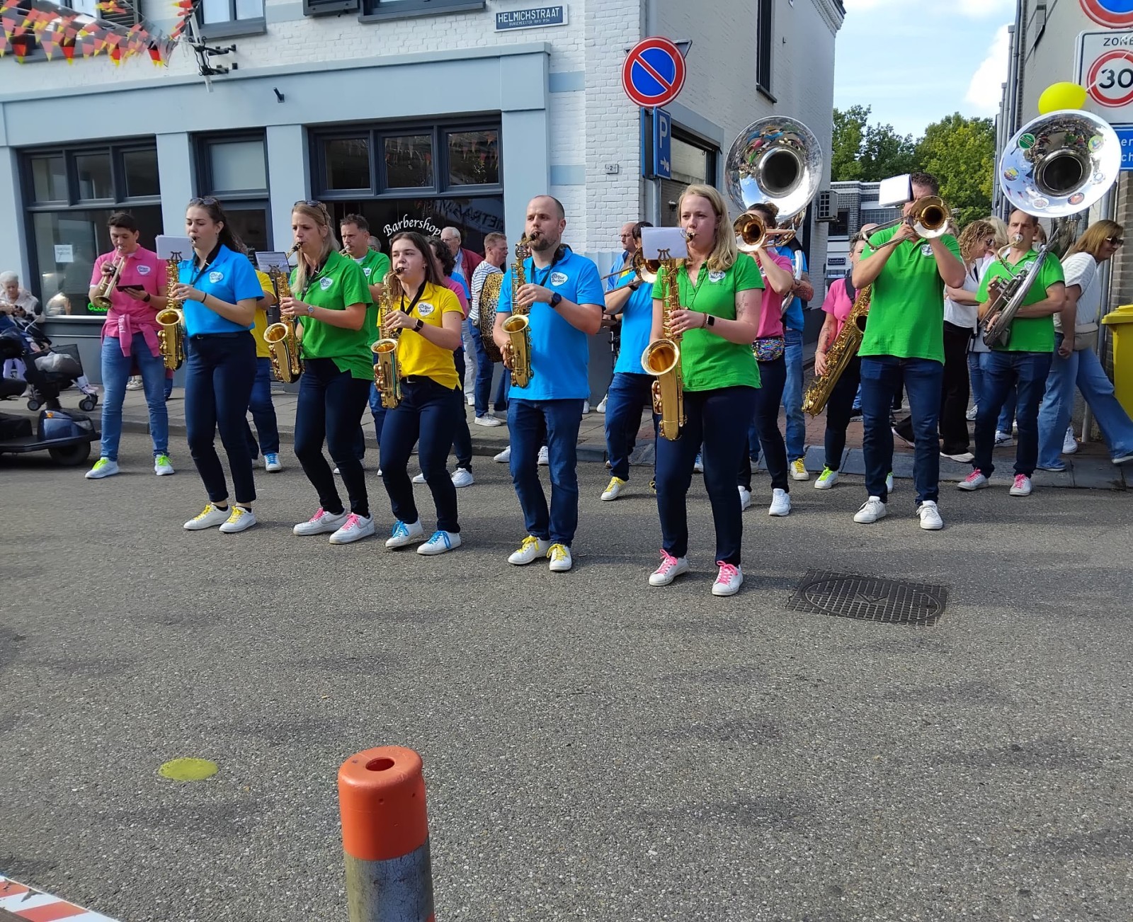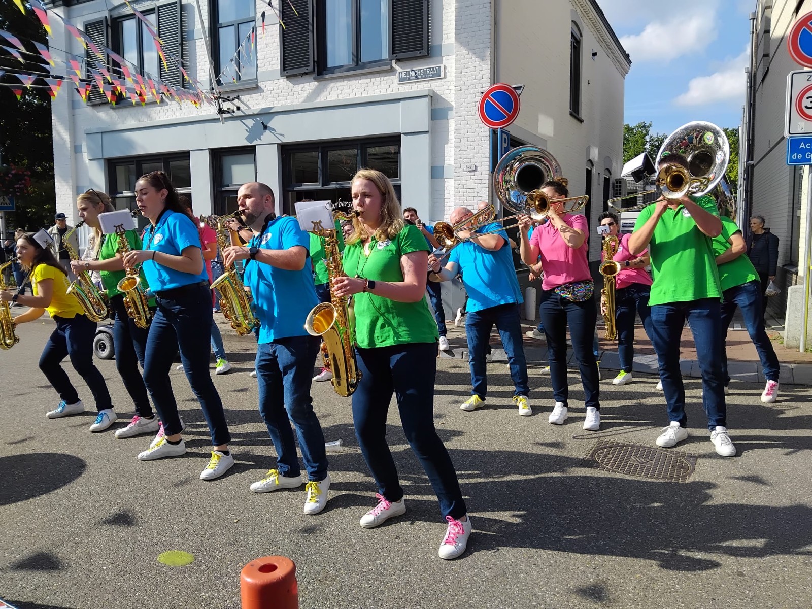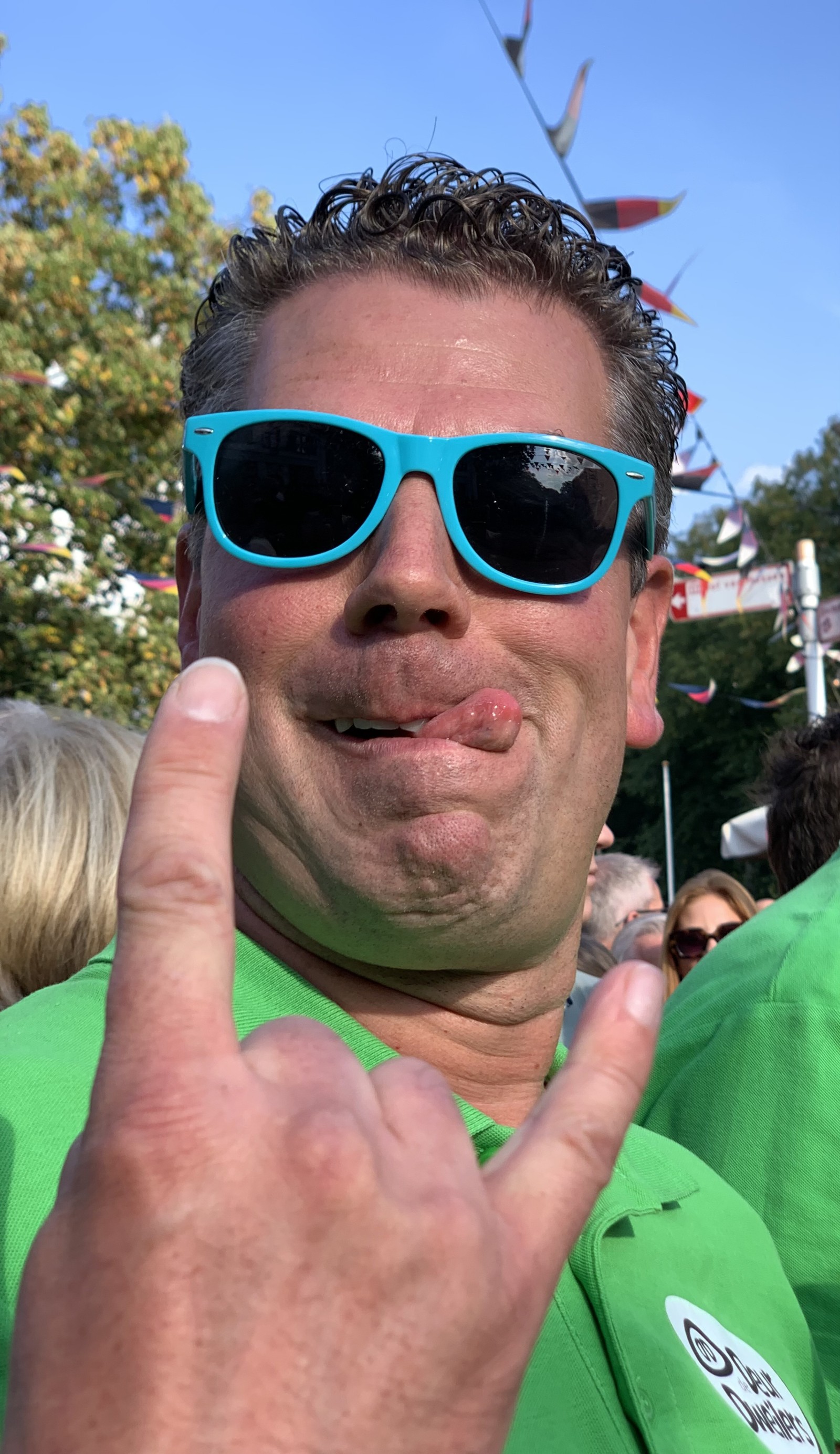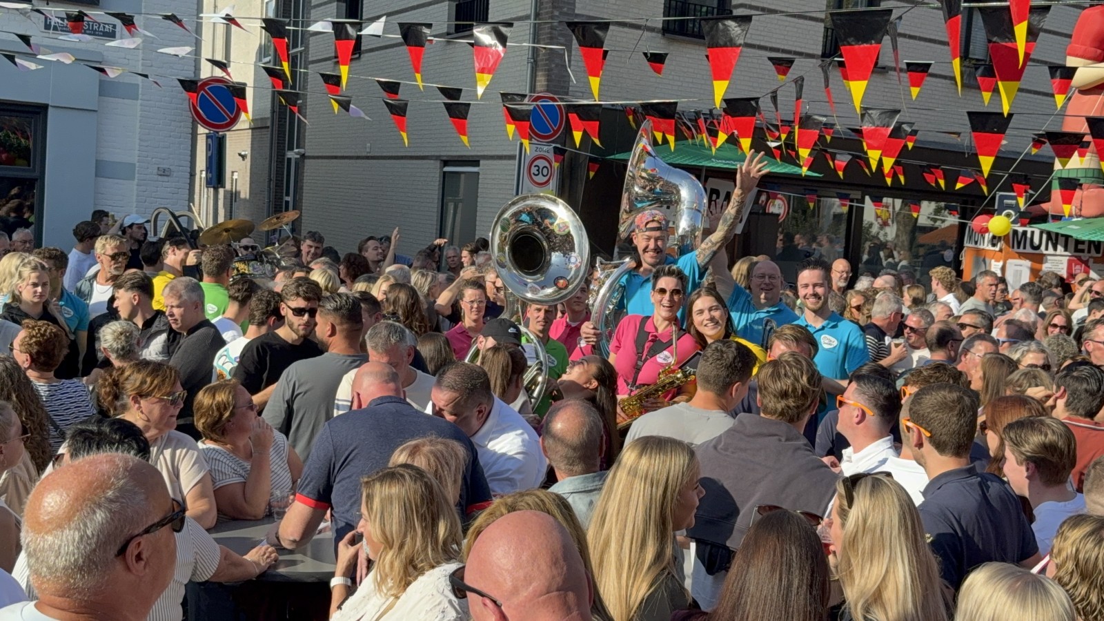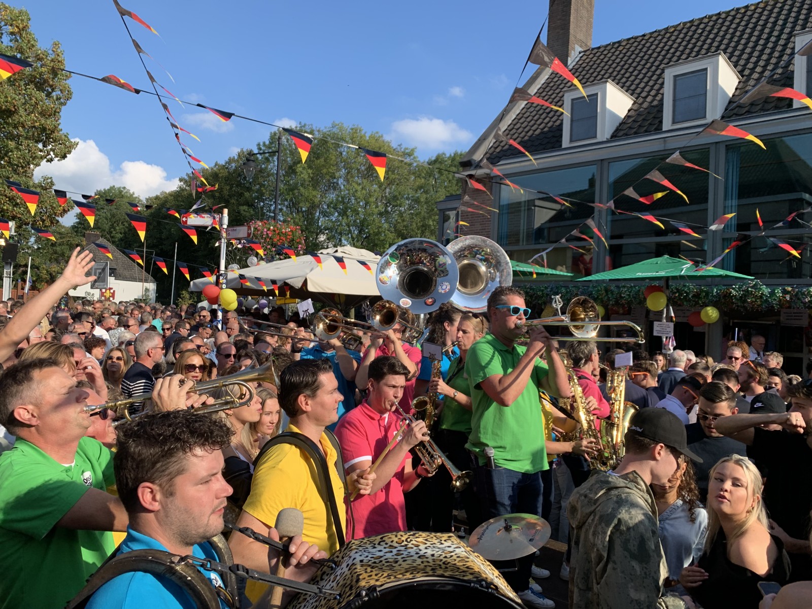 In onze tweede set draaiden we de volumeknop nog wat verder open en barstte het feest écht los. Op een kleine verhoging, letterlijk temidden van het publiek, veranderde het plein in één groot meezingfestijn. Hits als Ik wil sex met die kale en Sweet Child o’ Mine van Guns N’ Roses zorgden voor kippenvelmomenten én polonaises tegelijk.