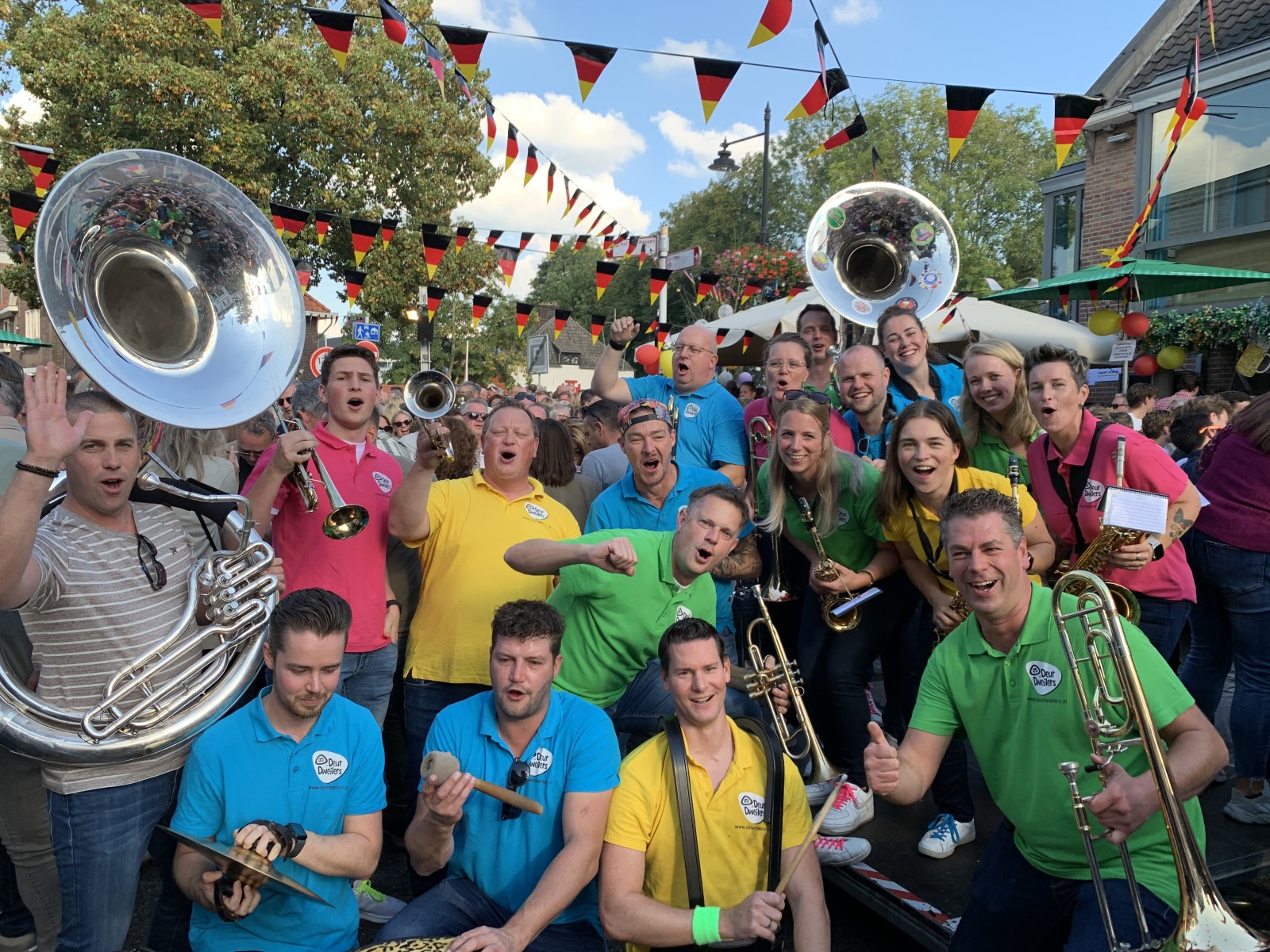 Wat was het weer een feestje! Voor de tweede keer mochten wij als De Deurdweilers spelen tijdens de inmiddels legendarische Deutsche Mittag bij De Buitenpoort op de Huissense Kermis – en wat een dag werd het!