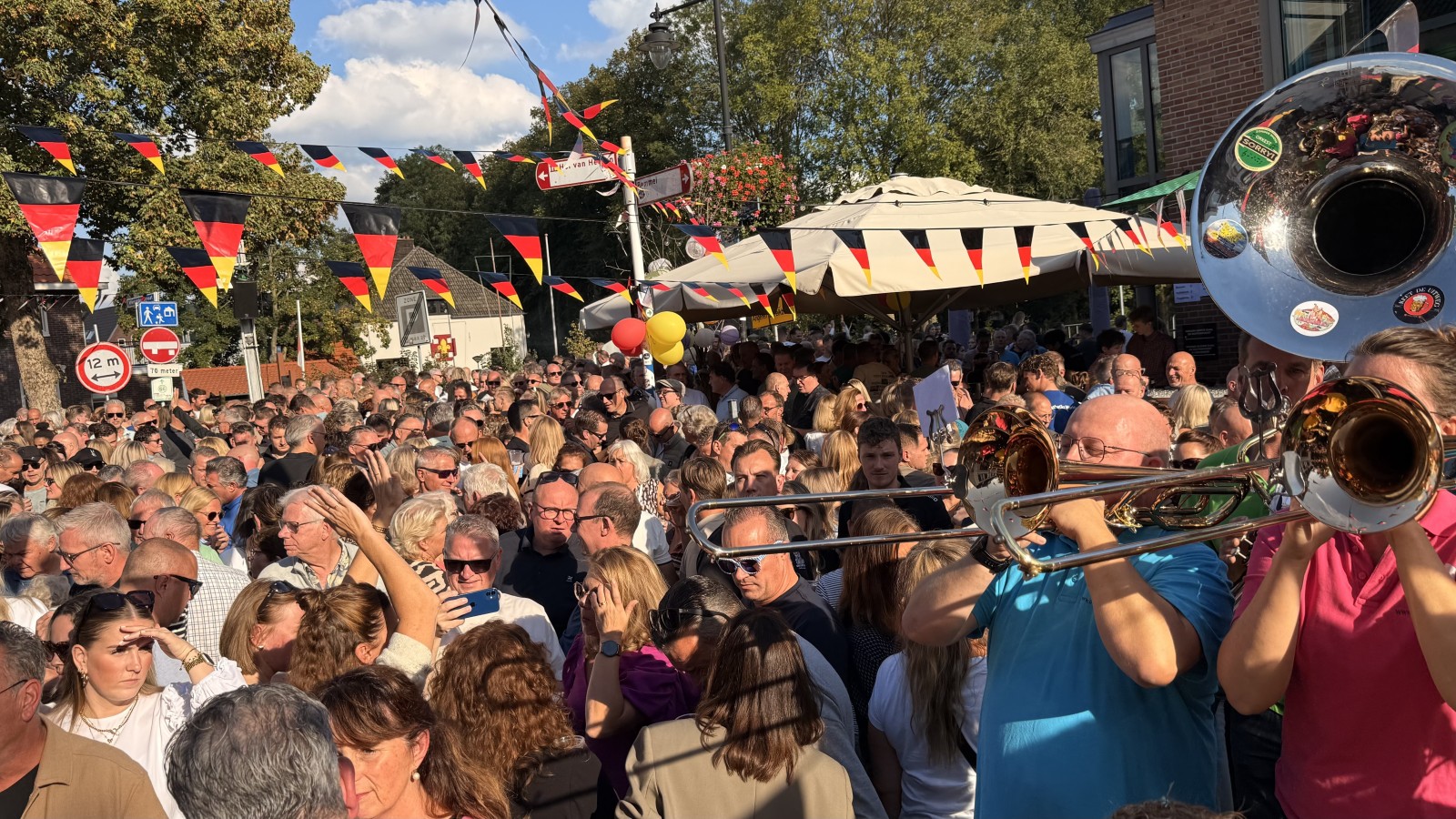 Alsof september even vergat dat het herfst moest worden, brak de zon heerlijk door en stroomde het plein langzaam vol met feestvierders. En niet zomaar een beetje: meer dan duizend mensen verzamelden zich rond ons kleine podium en zongen, sprongen en dansten uit volle borst mee. Precies zoals wij het graag zien.