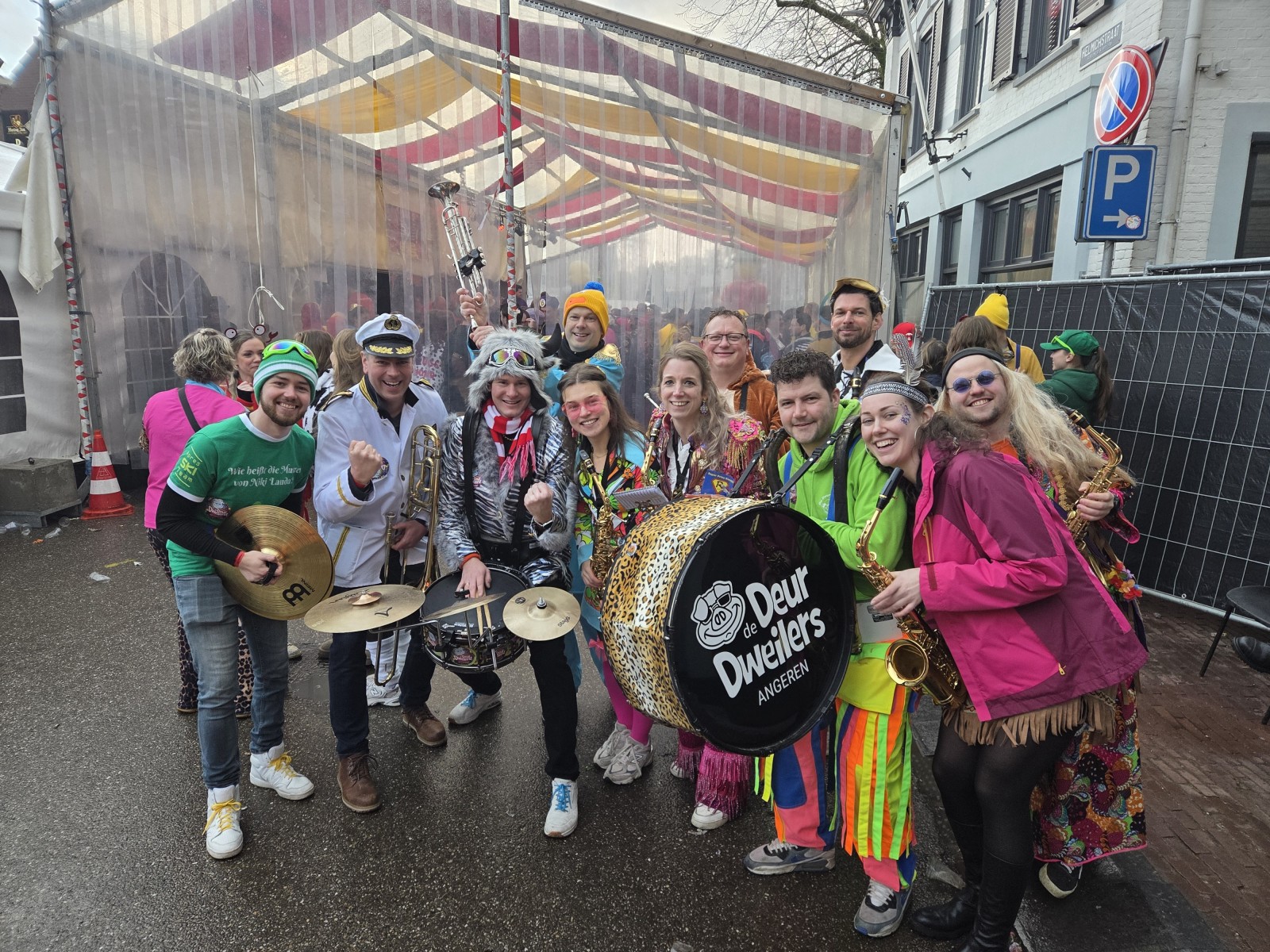 Nou ja “früh”? Rond 13:30 stonden we weer klaar om Huissen te vullen met onze muzikale klanken. En ’s avonds werd De Gouden Engel nog weer even op de kop gezet. Weer een mooi dagje carnaval!