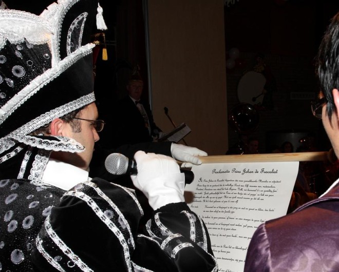 Er werd een groot bierfust de zaal ingereden en deze werd later omhoog getakeld. Zijn het ze? Nee, Youri en Lenny waren onderdeel van een prachtig geregisseerde afleidingsmanoeuvre. Vanuit het fust kwam Johan Wagener tevoorschijn. Samen met zijn vrouw zullen zij de komende twee jaar over het Keujesgat regeren.